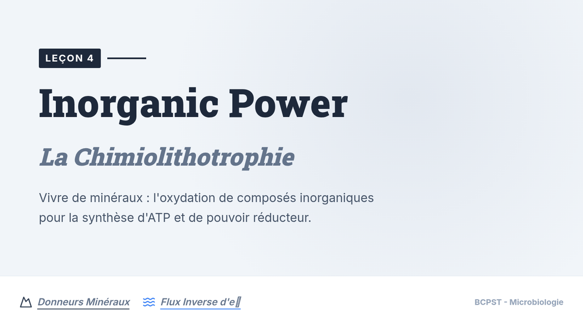 Étude des organismes utilisant des composés minéraux comme source d'énergie et de pouvoir réducteur, avec un focus sur les cycles biogéochimiques.