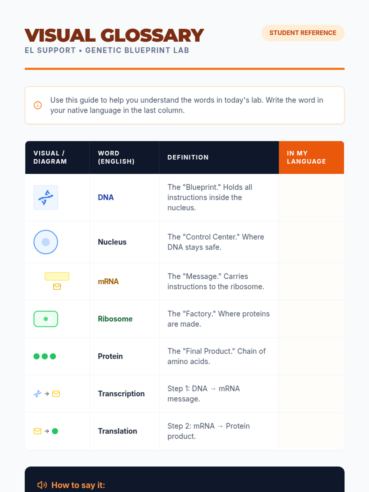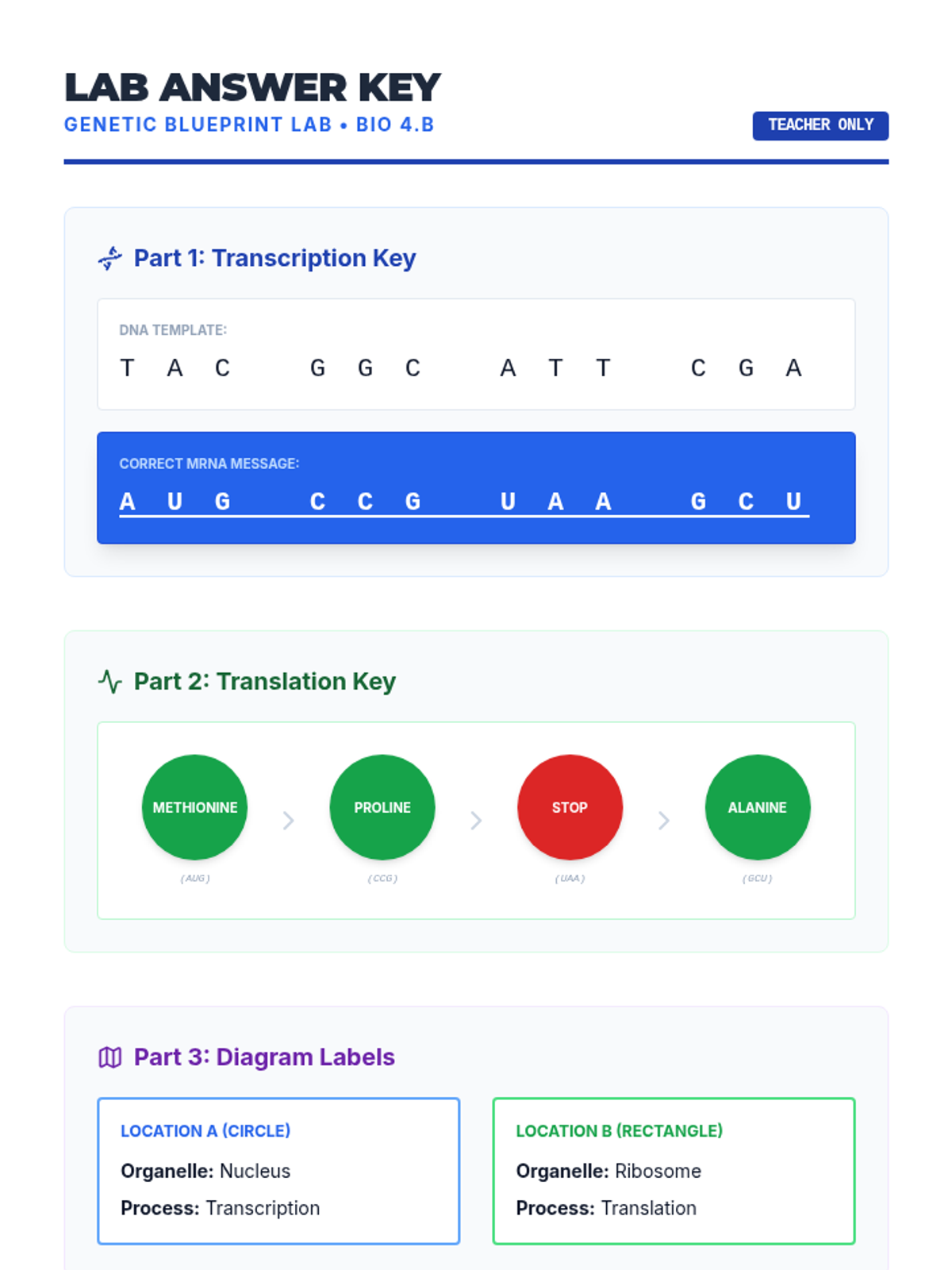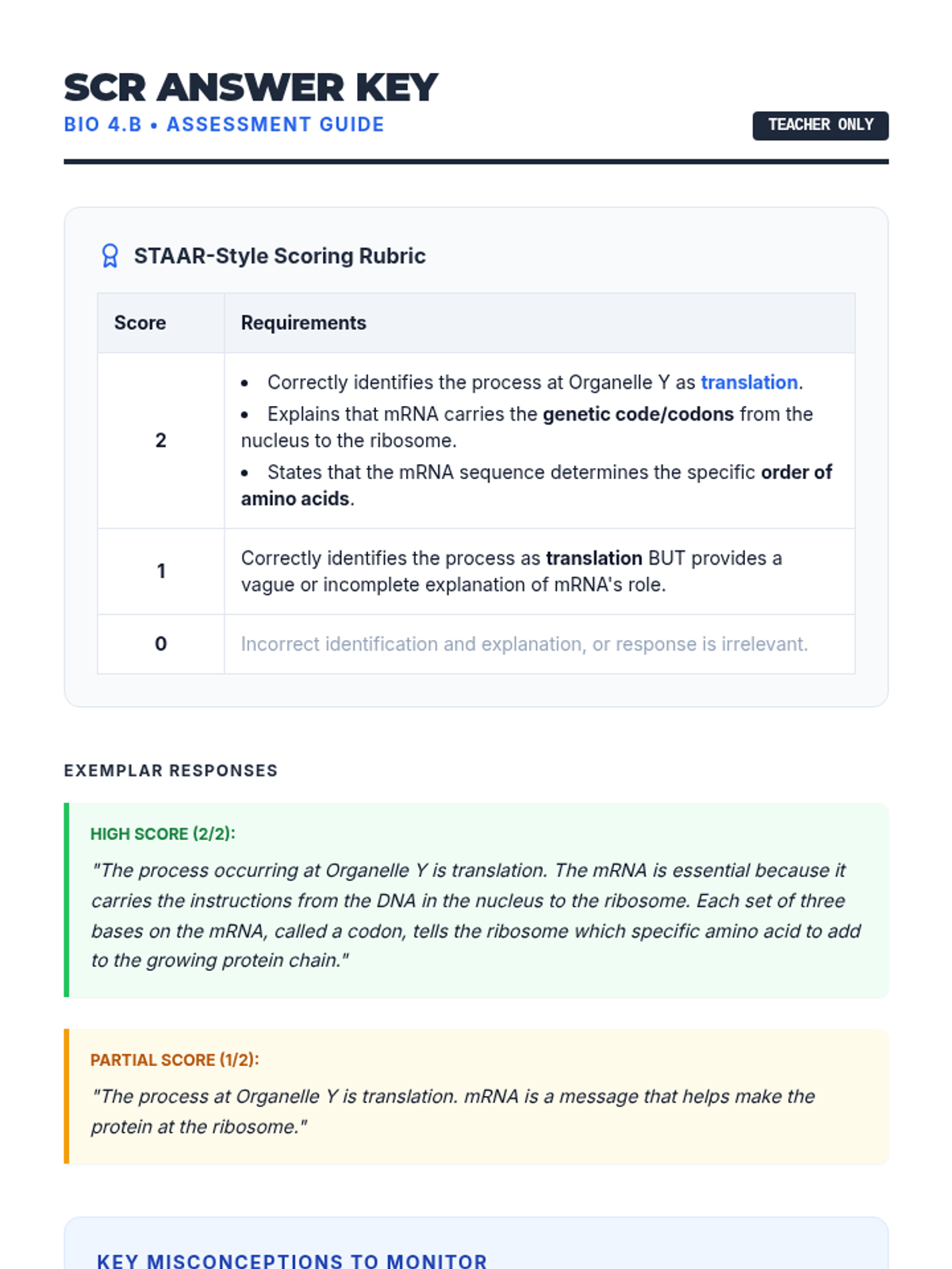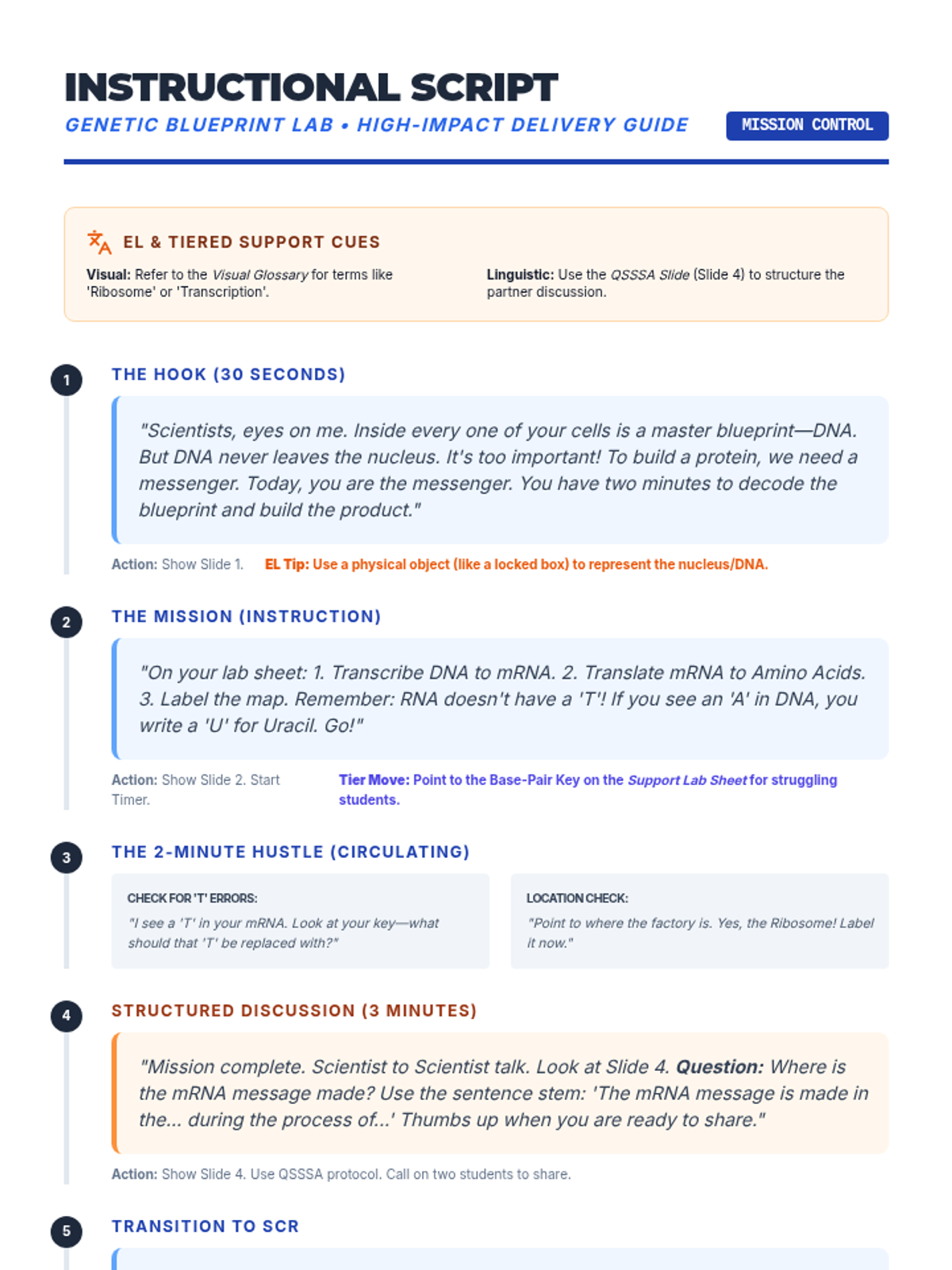A lightning-fast mini-lab where students decode genetic information using diagrams of transcription and translation, followed by a STAAR-style SCR assessment.