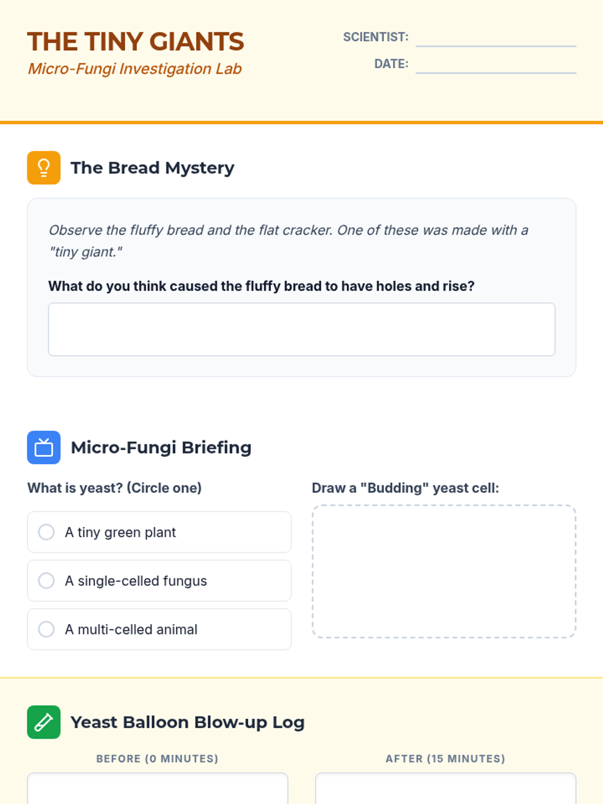 Students explore the microscopic world of yeast, conducting a hands-on experiment to witness carbon dioxide production and understanding fungal reproduction through budding.