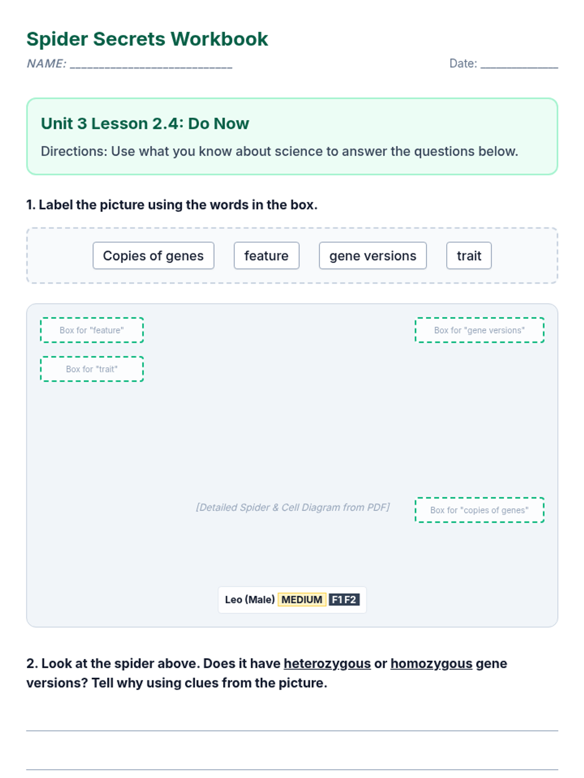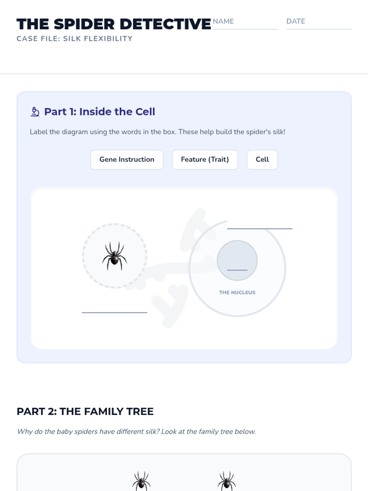 Students investigate why different spiders produce different types of silk by looking at traits, proteins, and genes. This lesson adapts complex genetic concepts for a 3rd-grade reading level.