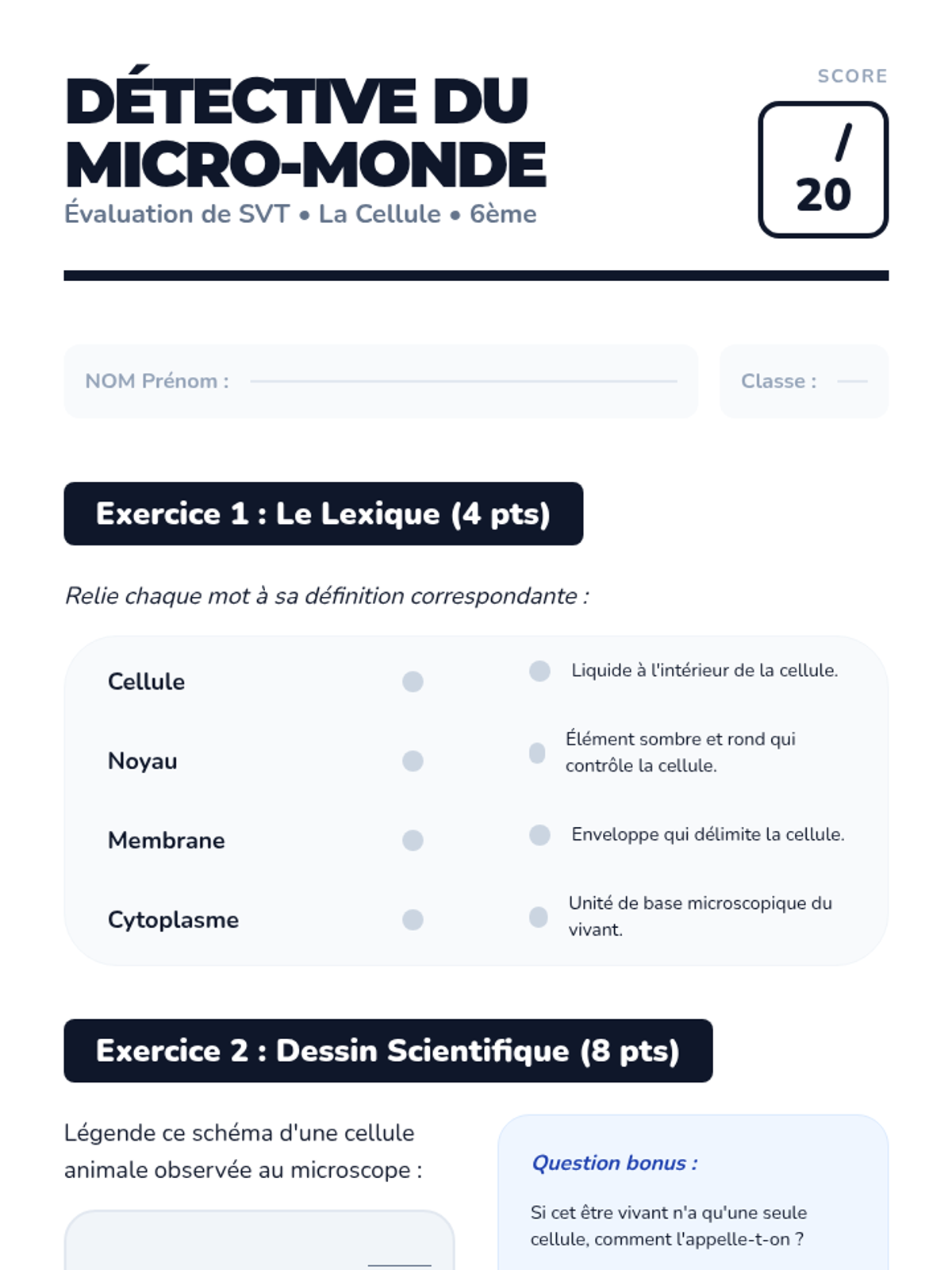 Synthèse de la notion de cellule et évaluation des acquis.