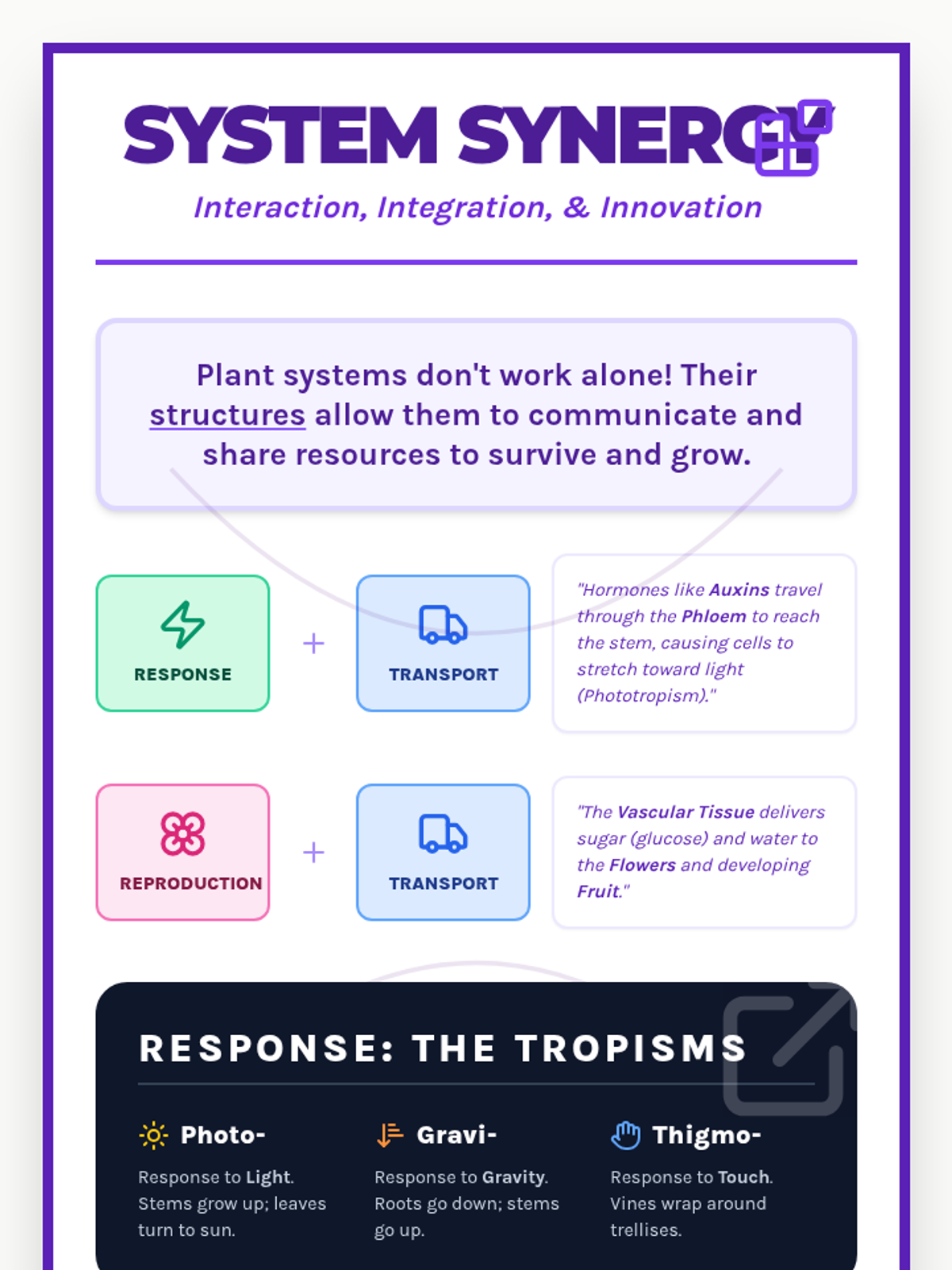 Students examine how plants respond to environmental stimuli through tropisms and hormonal signaling.