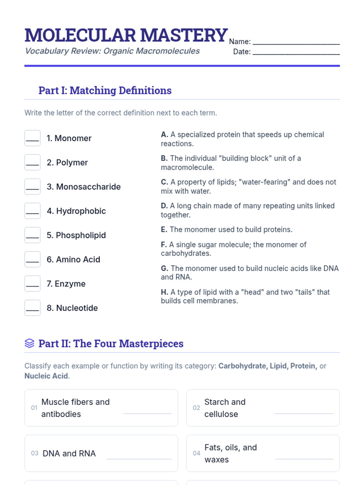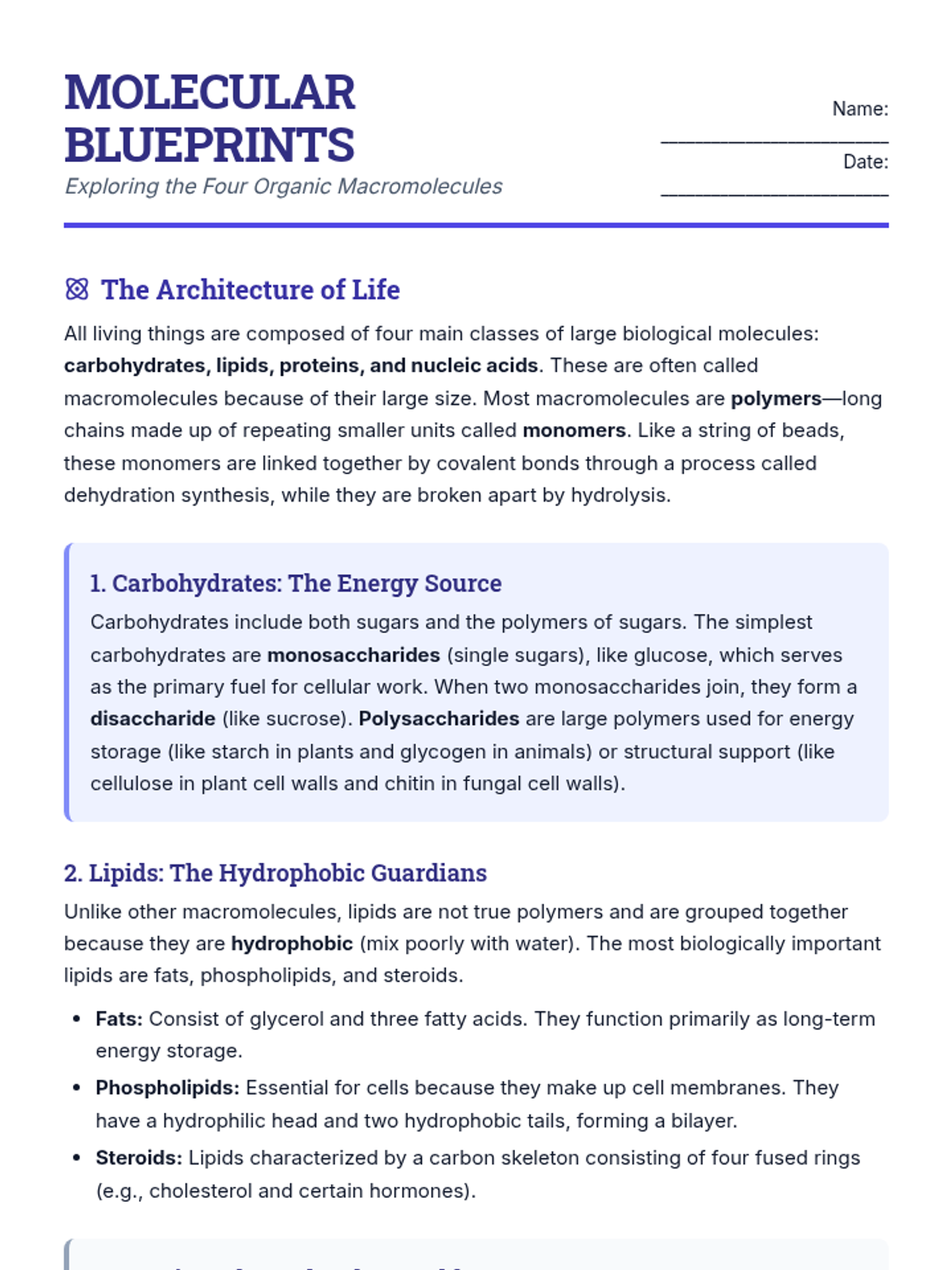 A comprehensive exploration of the four major classes of organic macromolecules: carbohydrates, lipids, proteins, and nucleic acids, focusing on their structural components and biological functions.