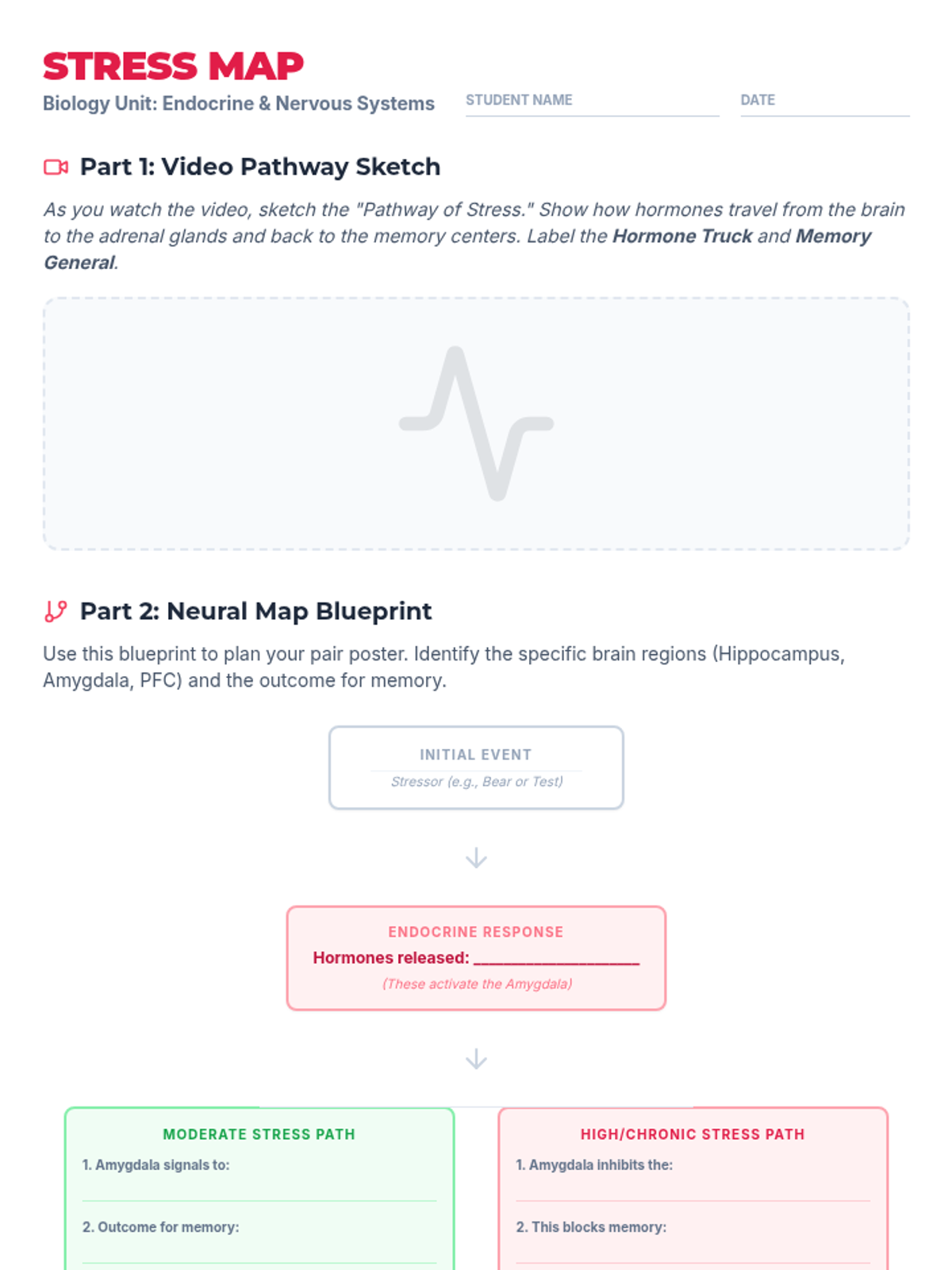 A comprehensive biology lesson for 9th-10th grade students exploring the biological feedback loops between the endocrine and nervous systems during stress, focusing on the role of corticosteroids, the amygdala, and the prefrontal cortex in memory.