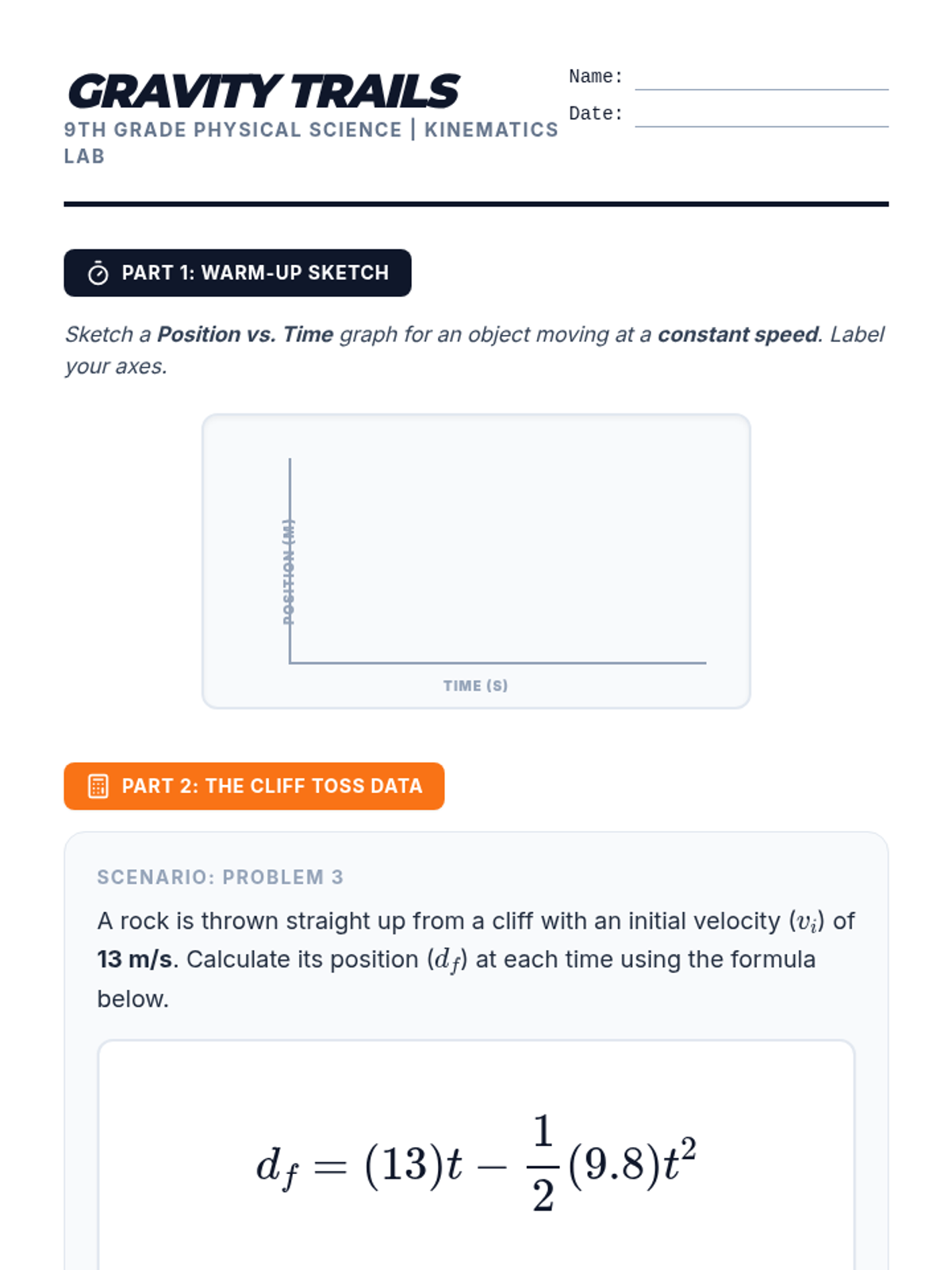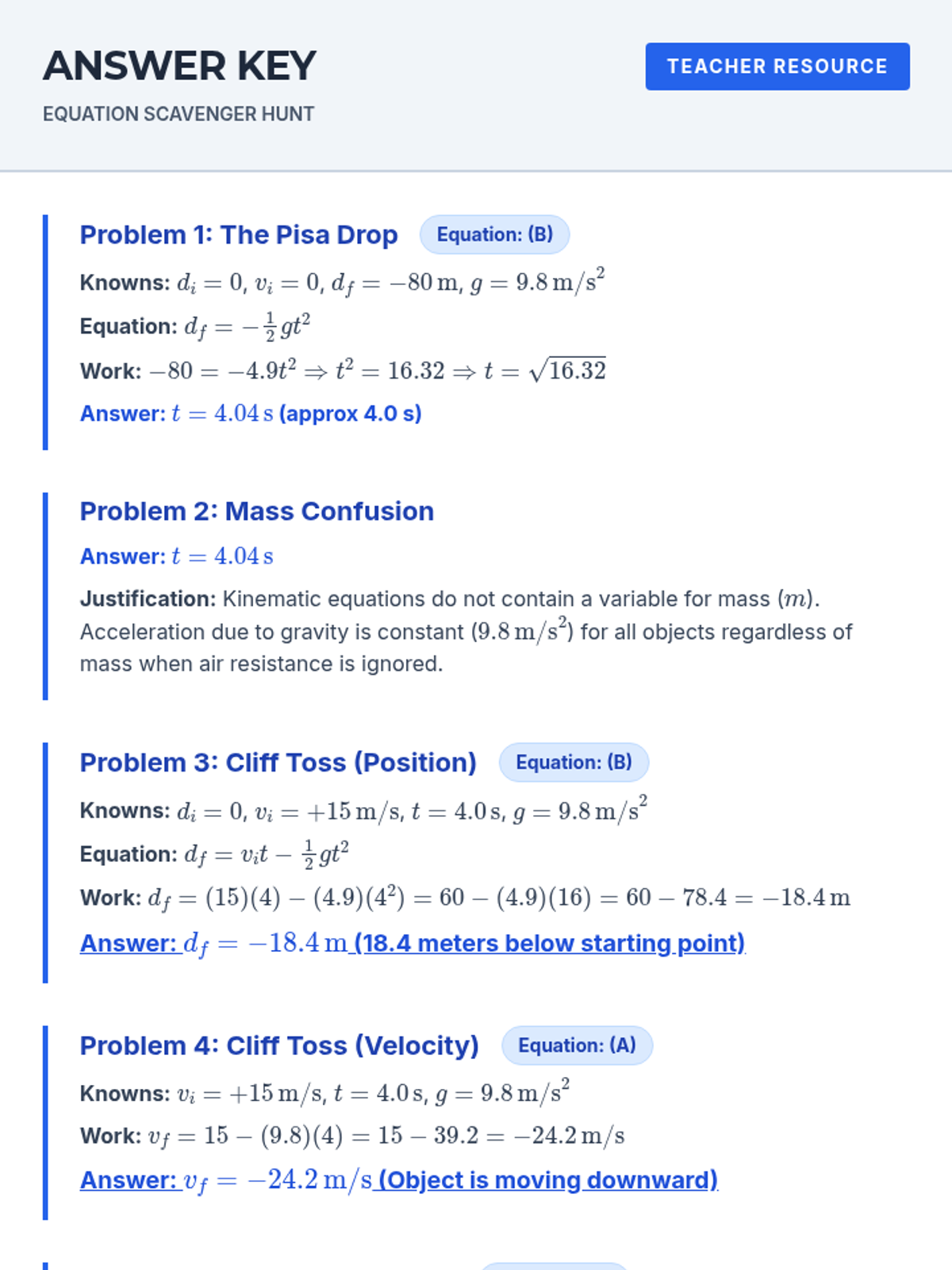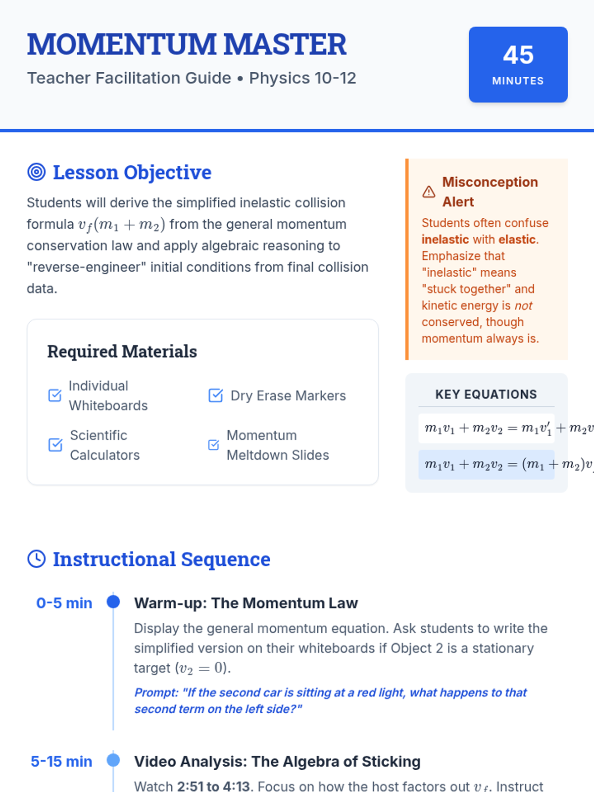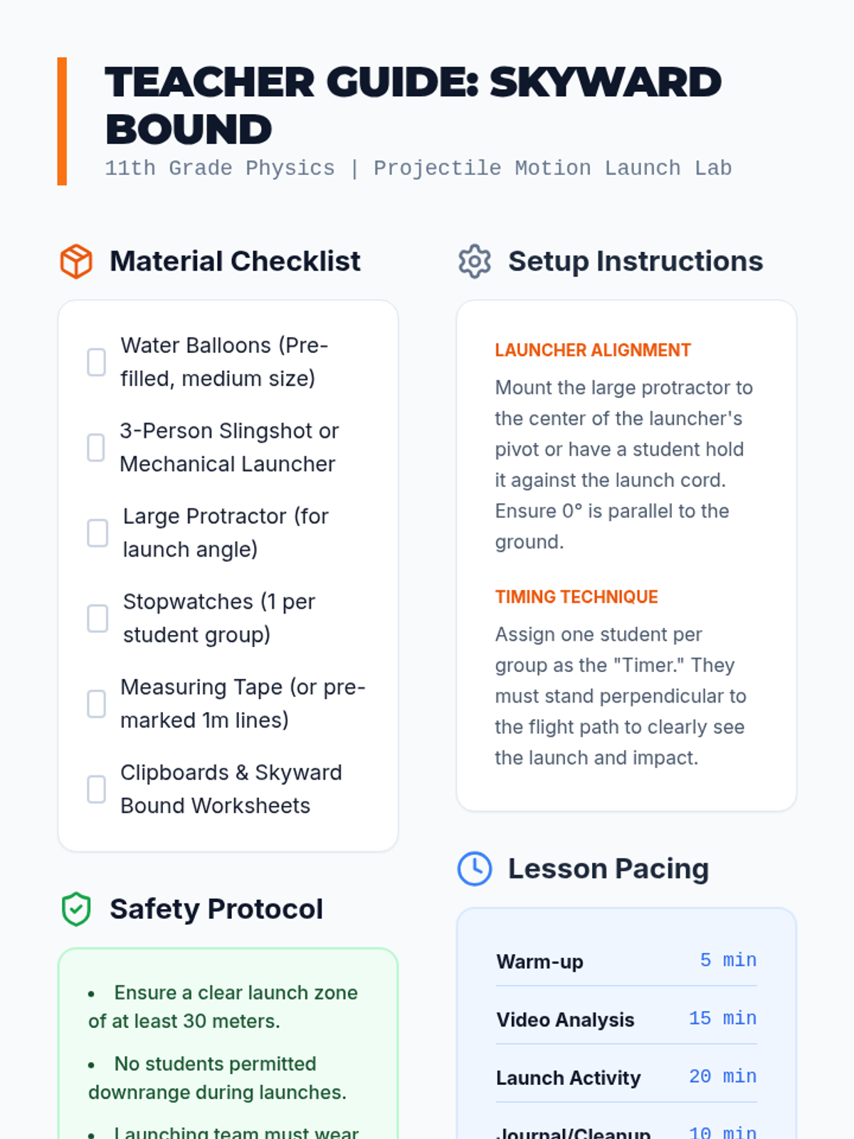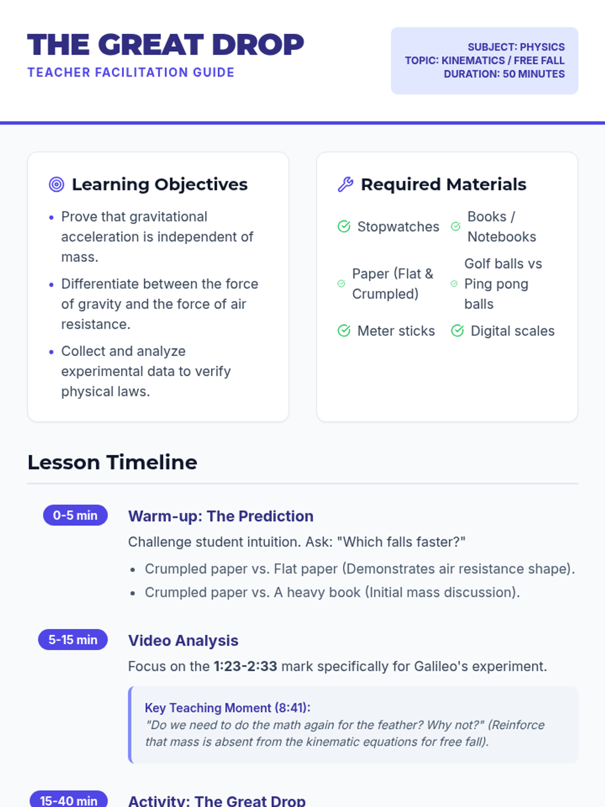 This lesson focuses on high-precision projectile motion calculations, challenging students to move beyond numerical substitution into symbolic derivation. Students will analyze potential rounding errors in textbook problems and derive a 'Master Formula' for time-of-flight using the quadratic formula.