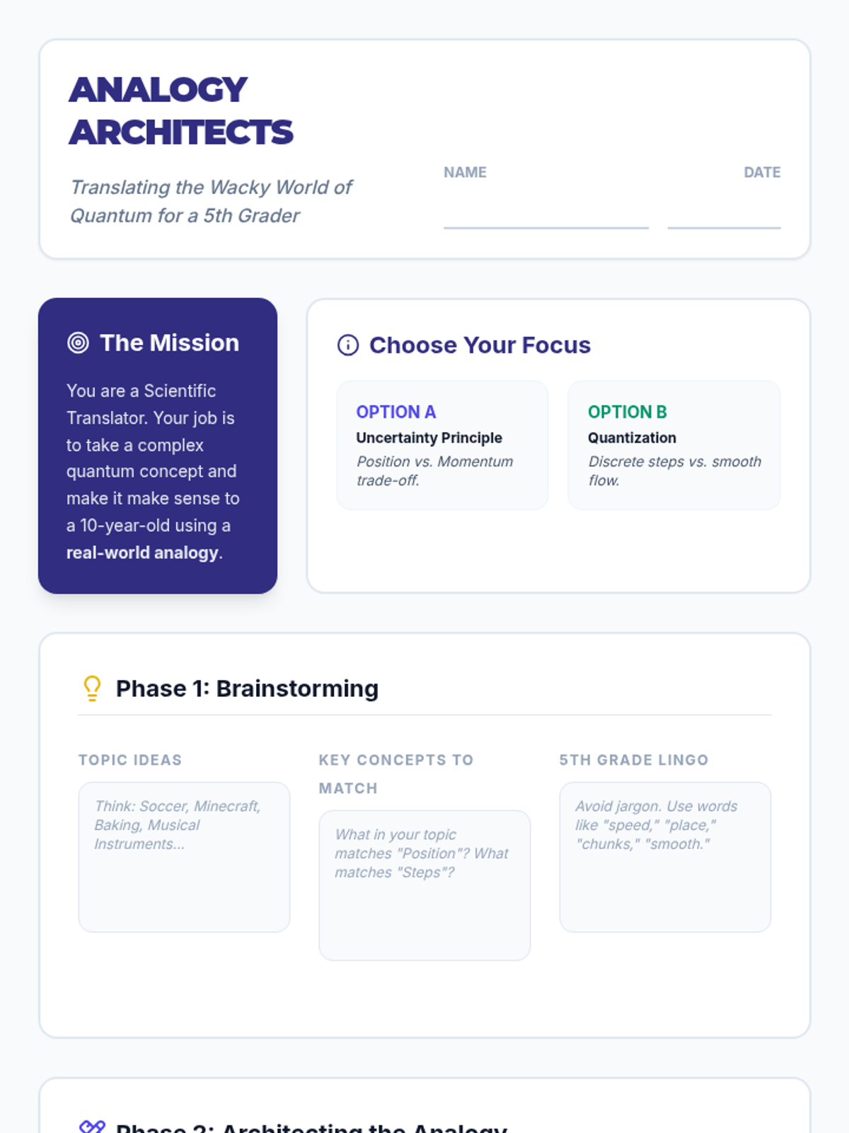 A high-energy lesson exploring the fundamental difference between continuous and discrete systems using quantum car analogies and creative graphing. Students will learn how energy is 'quantized' at the atomic scale and visualize what a quantized life might look like.
