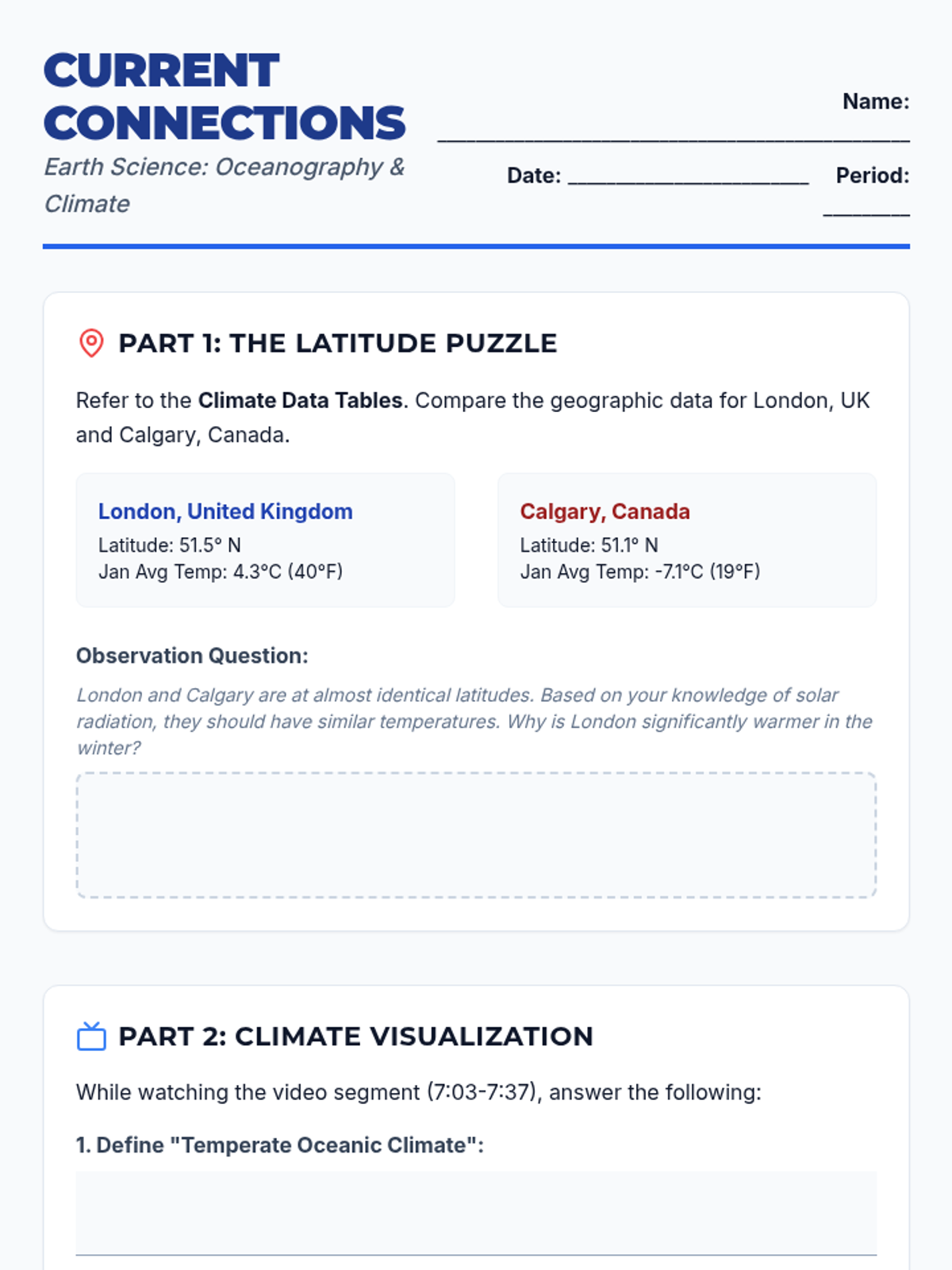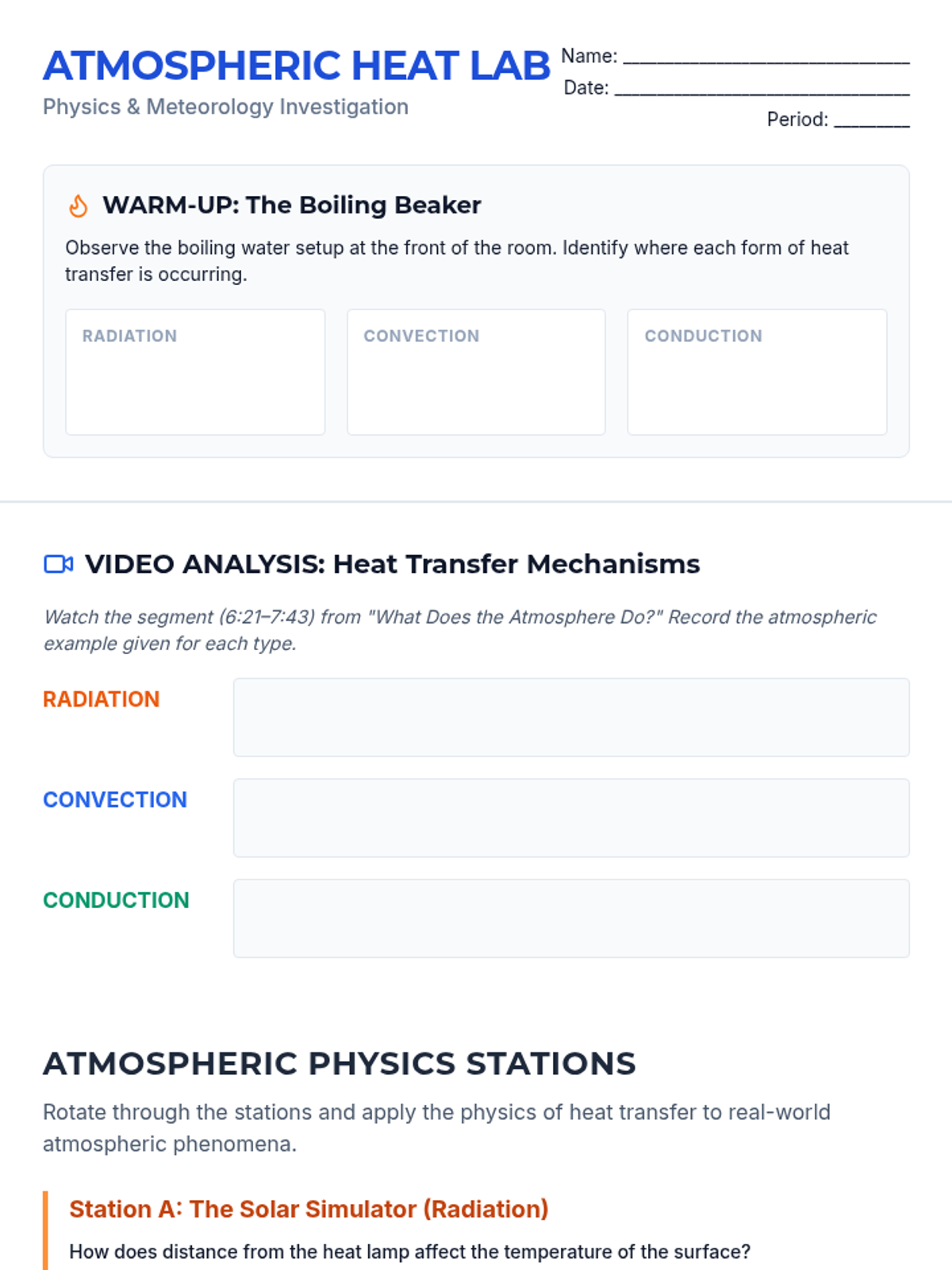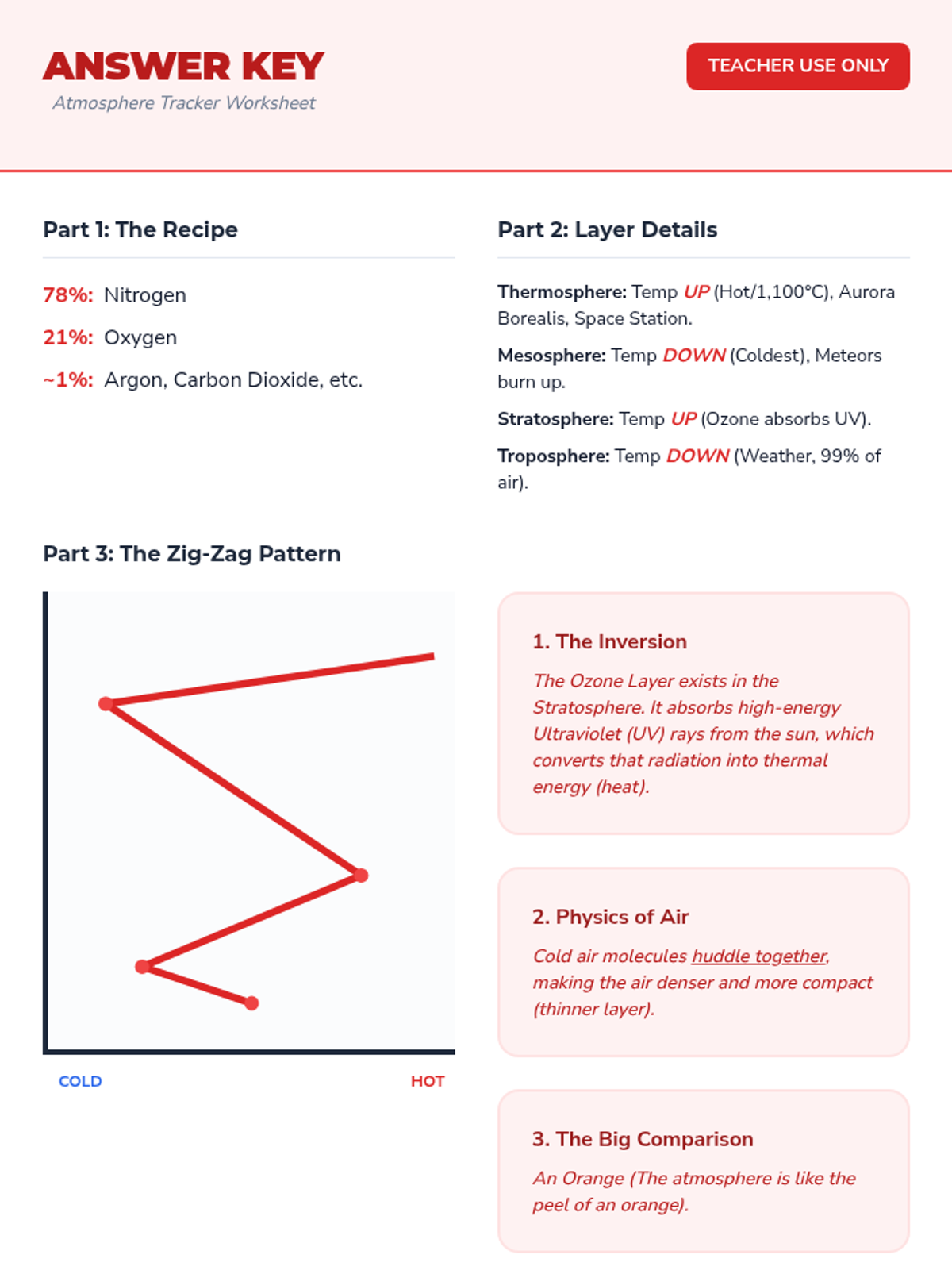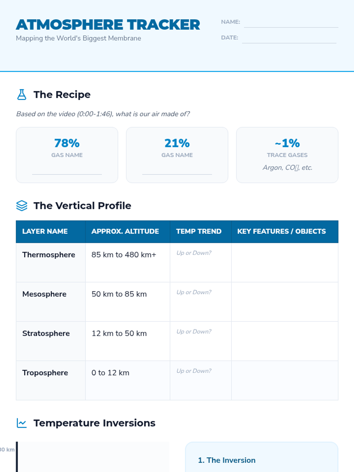 Students will explore the vertical structure of Earth's atmosphere, identifying the four primary layers and understanding how temperature fluctuates within each. The lesson includes a video-based graphic organizer and a hands-on scale modeling activity to visualize the relative thickness of these 'membranes' of air.