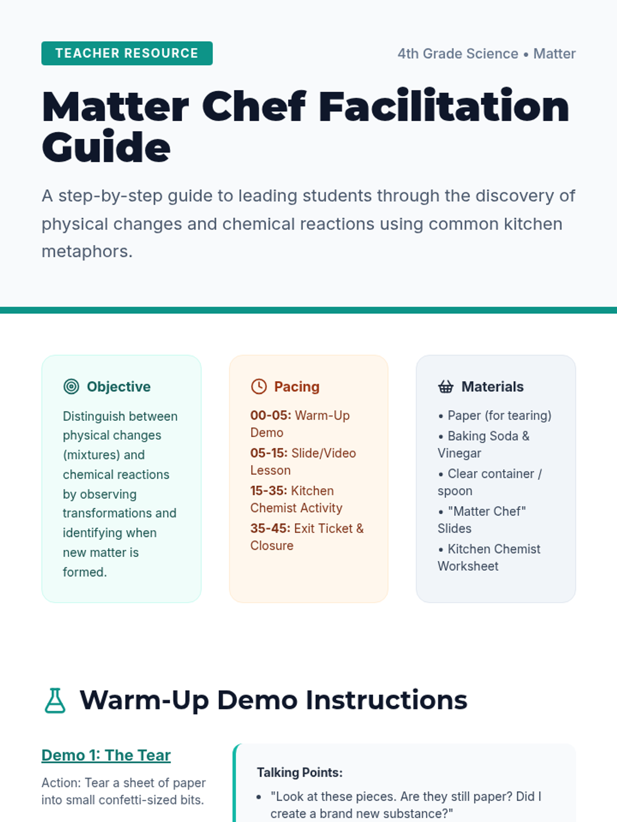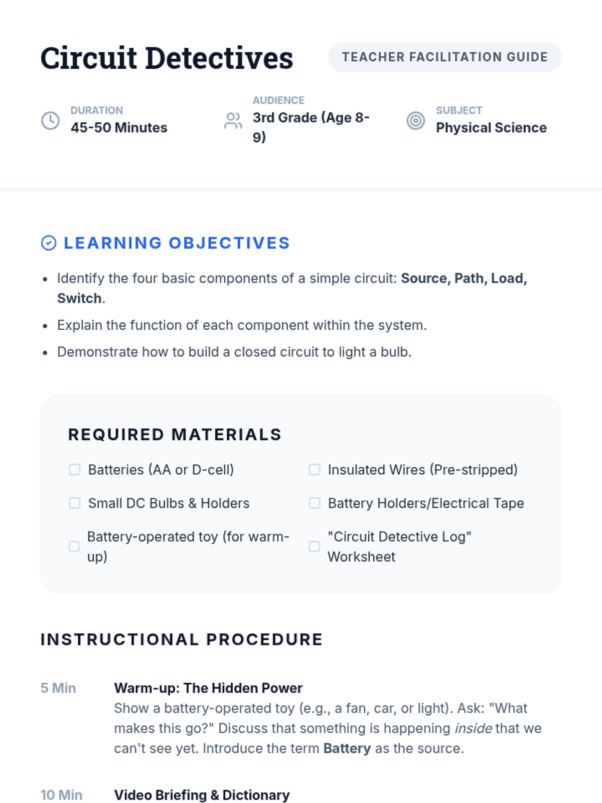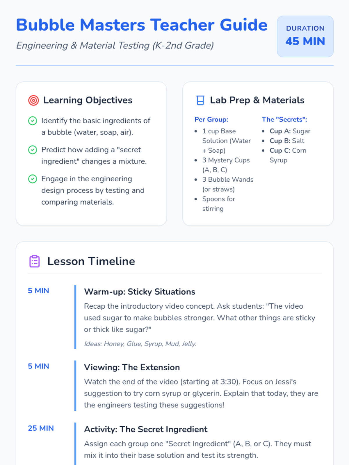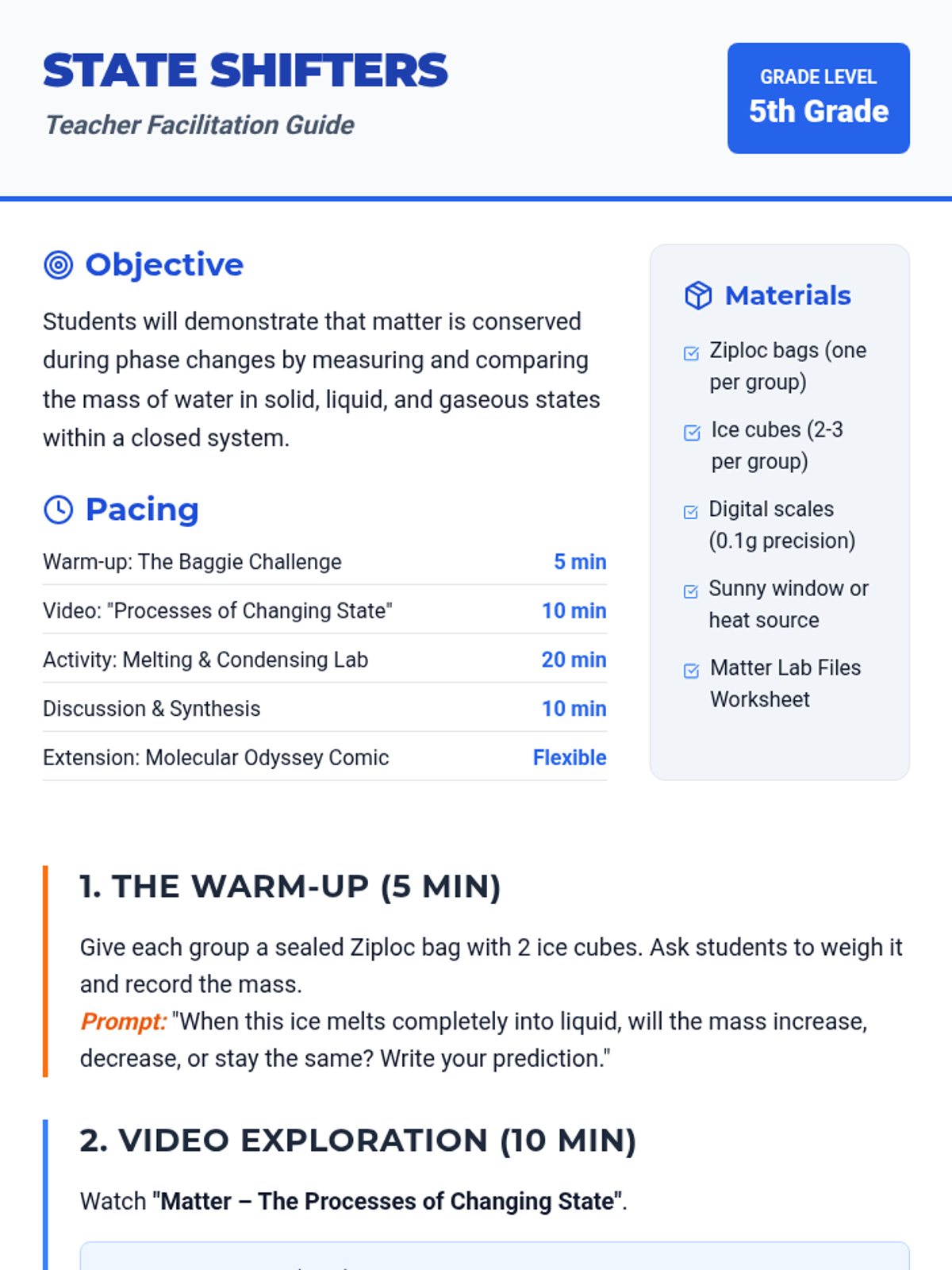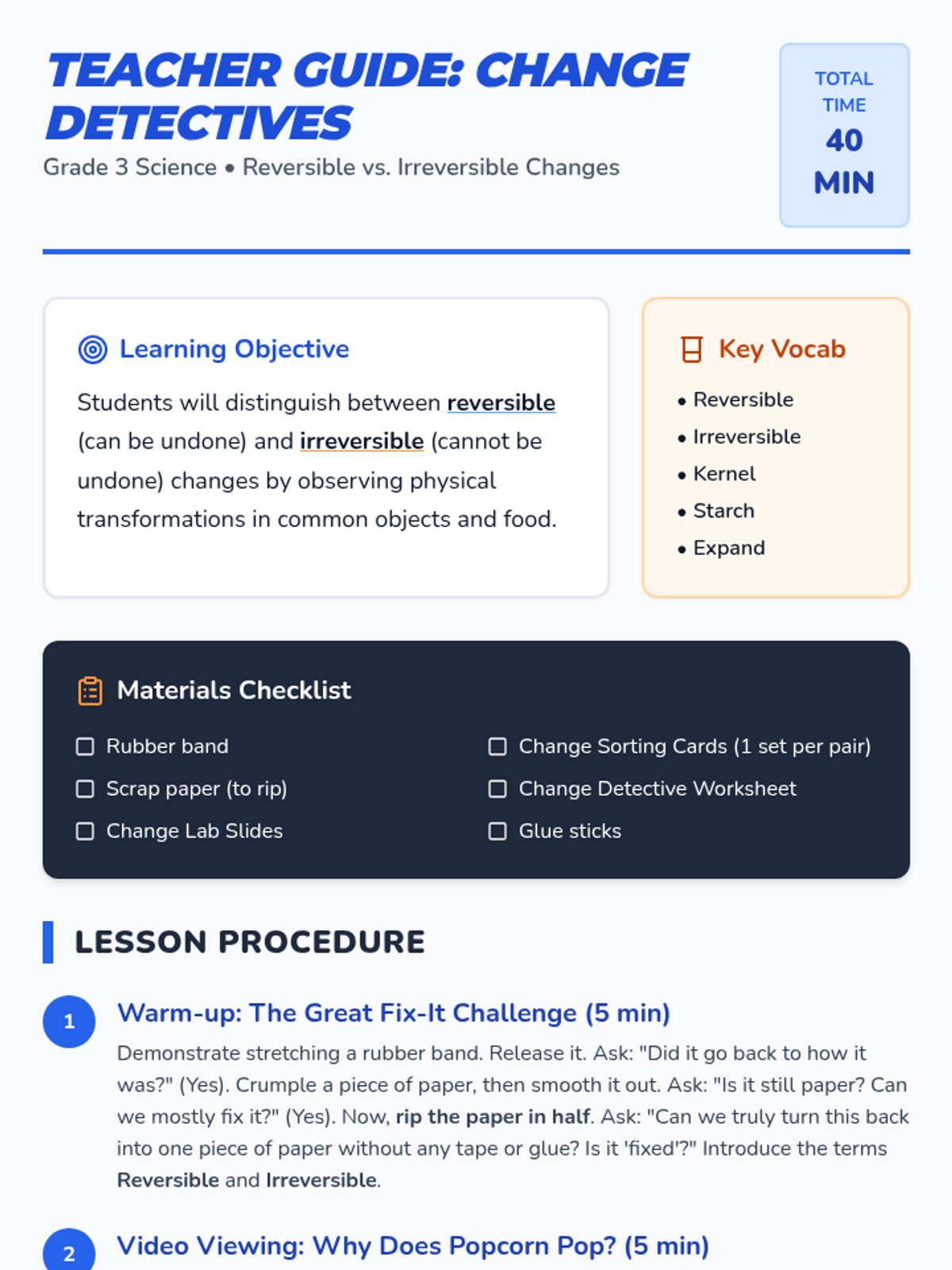 Students will act as "Property Detectives" to identify classroom objects based on their physical properties. They will learn to distinguish between observable and measurable properties and use scientific tools like rulers and scales to gather quantitative data.