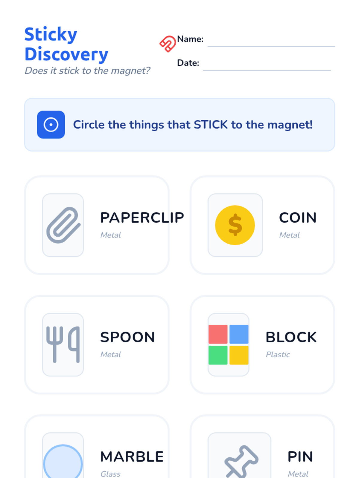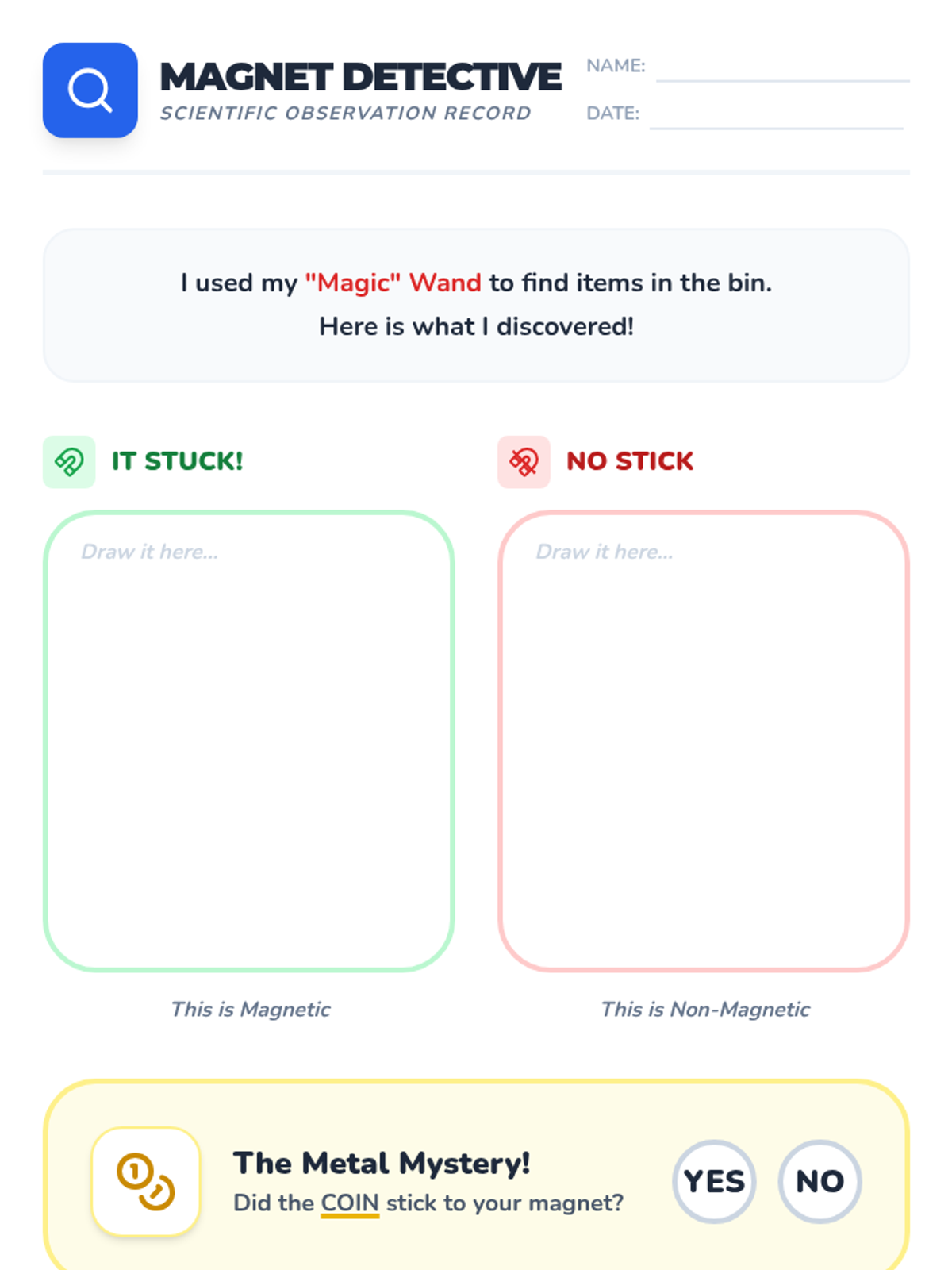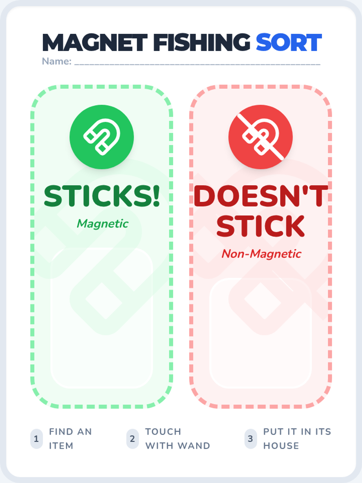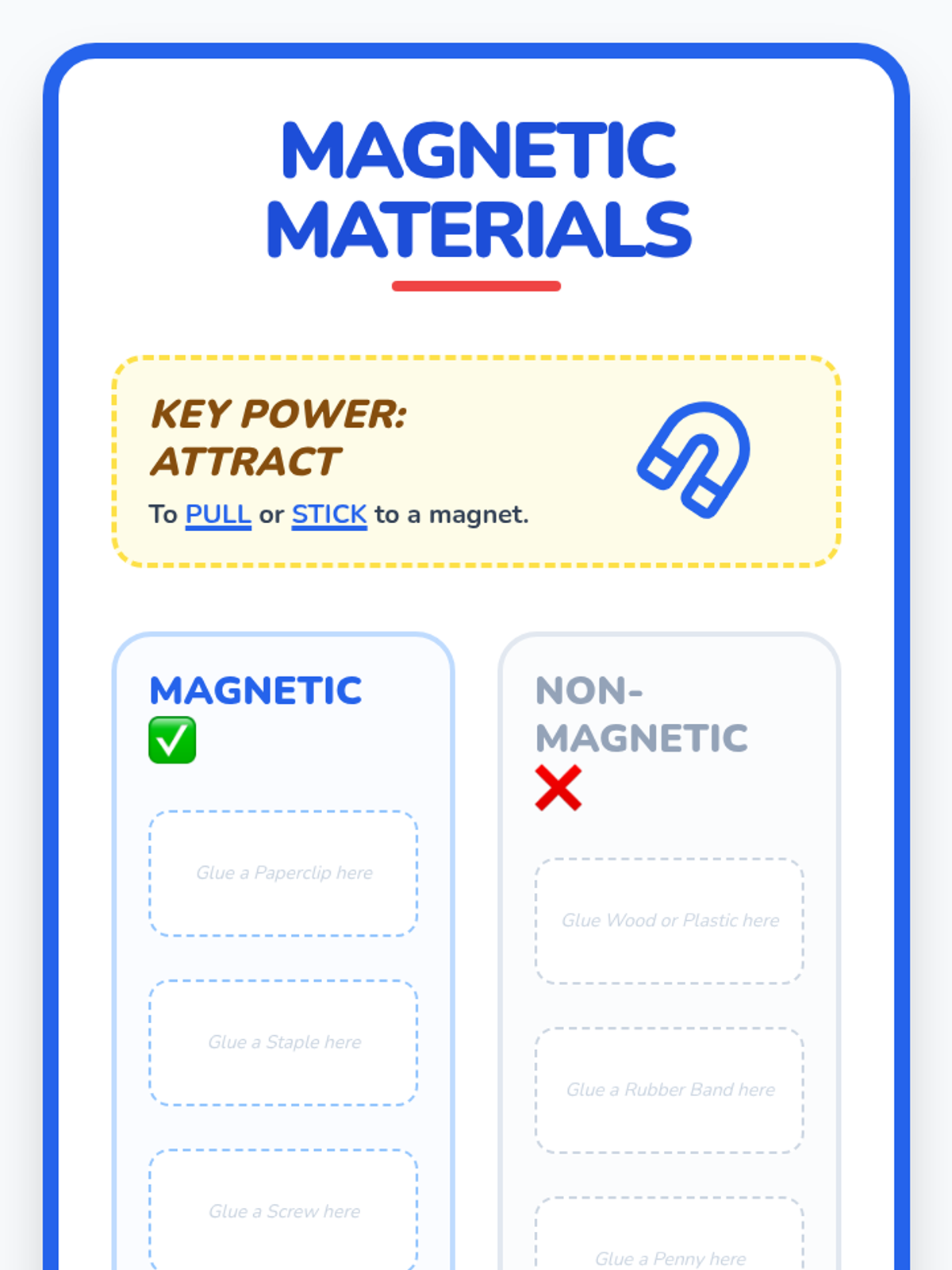 Students will explore the invisible force of magnetism through a hands-on 'Magnetic Painting' activity and a virtual sorting lab. They will learn to predict and test whether items are attracted to magnets while creating unique process art.