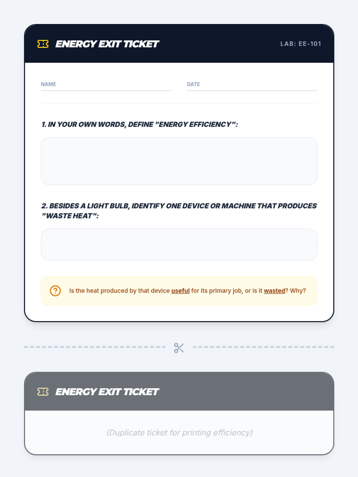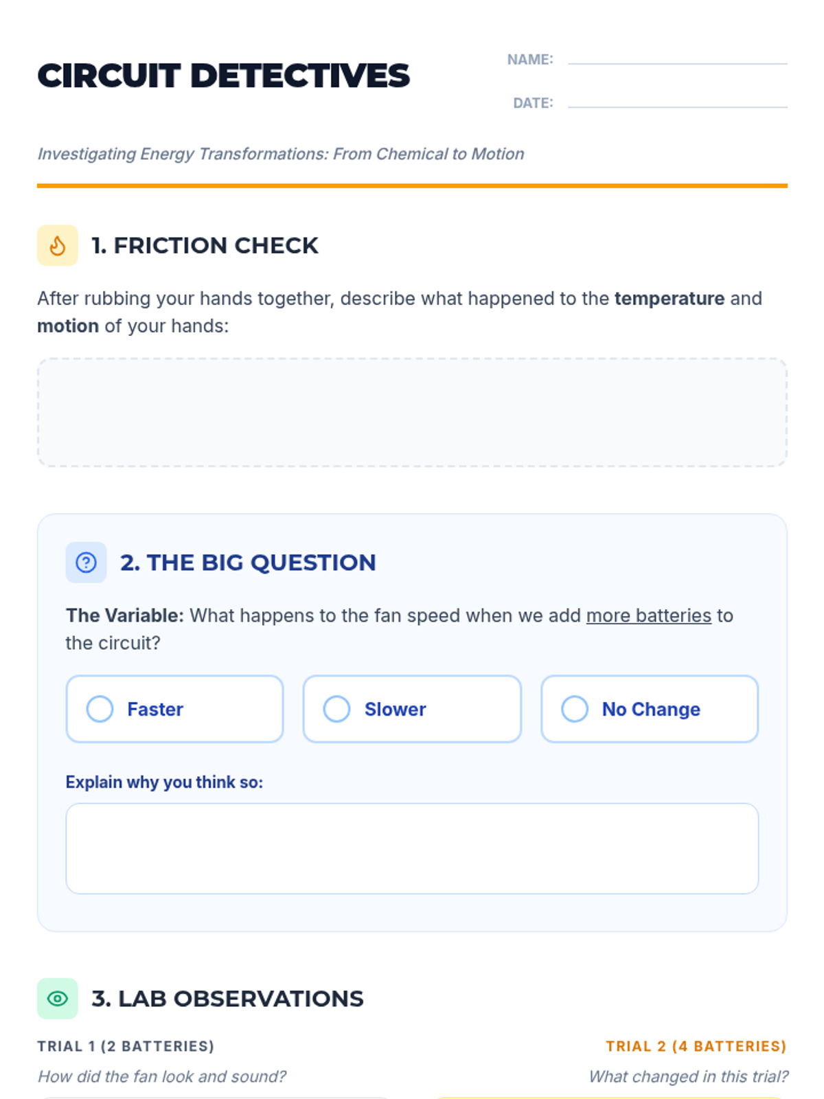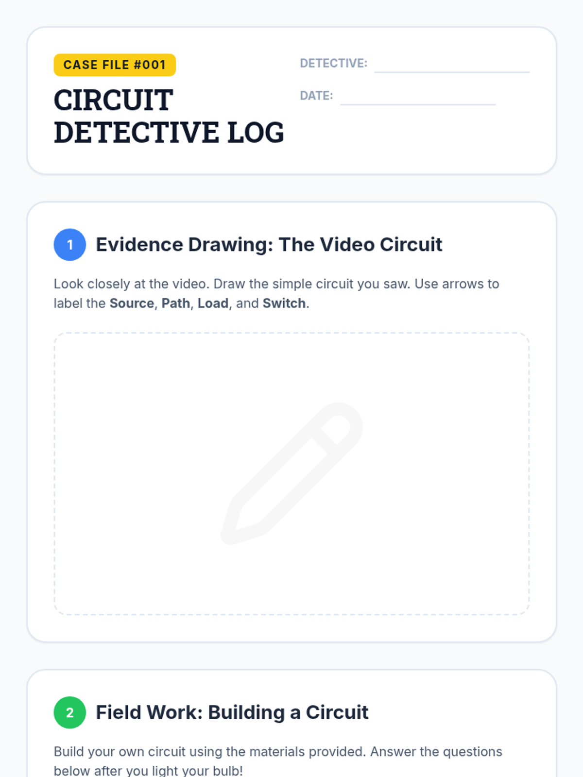 Students become 'Energy Detectives' to identify light, electrical, and movement energy in their immediate environment through a school-wide hunt.