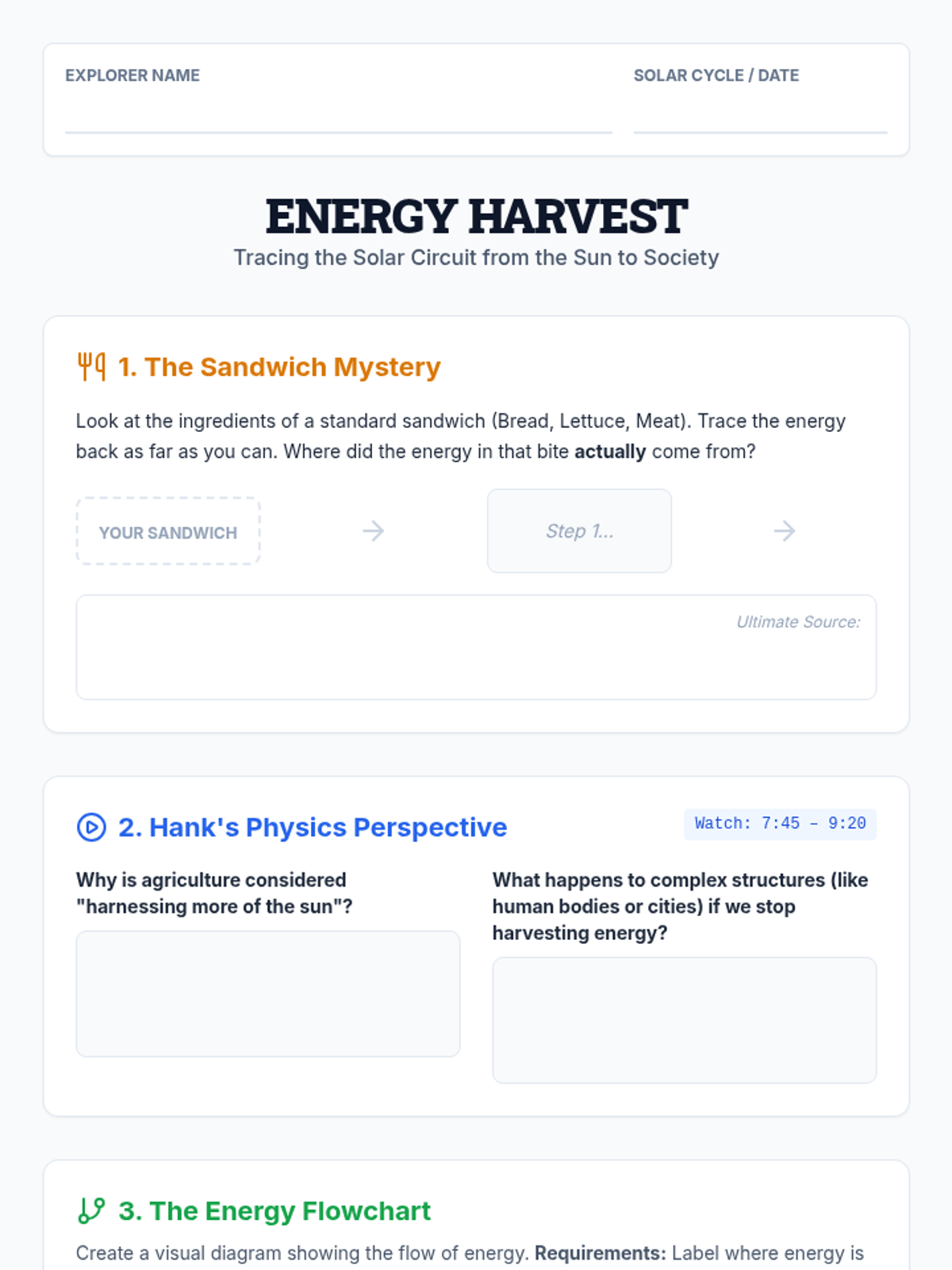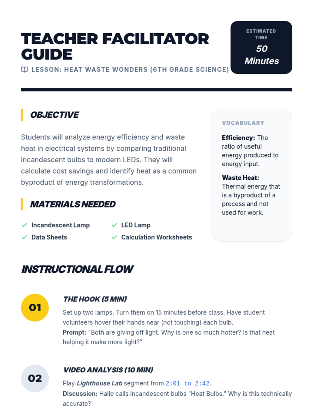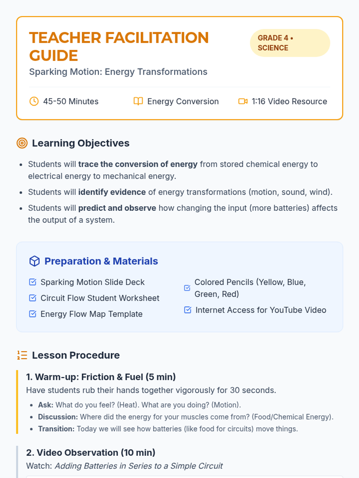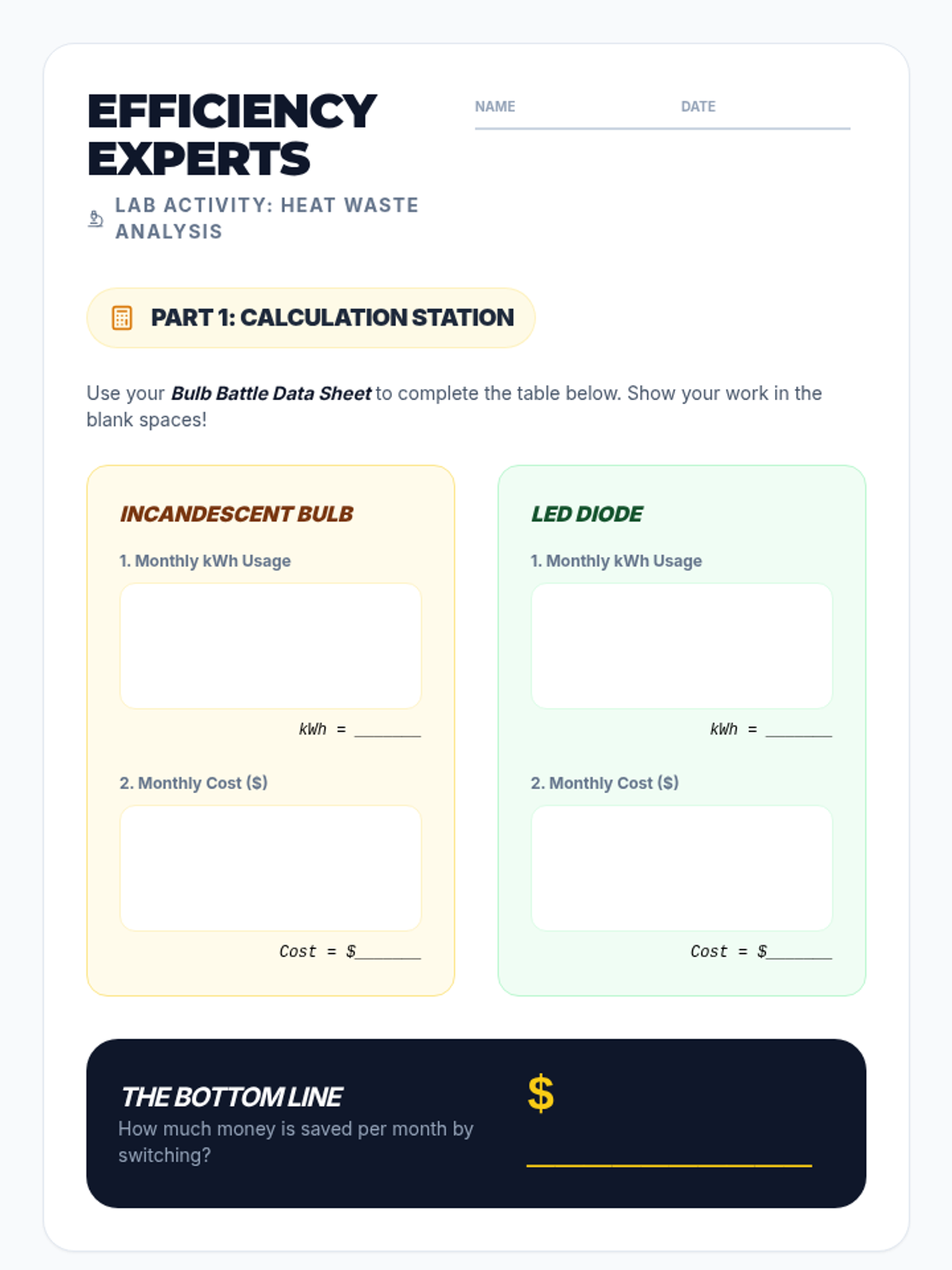 Students become 'Energy Detectives' to identify light, electrical, and movement energy in their immediate environment through a school-wide hunt.