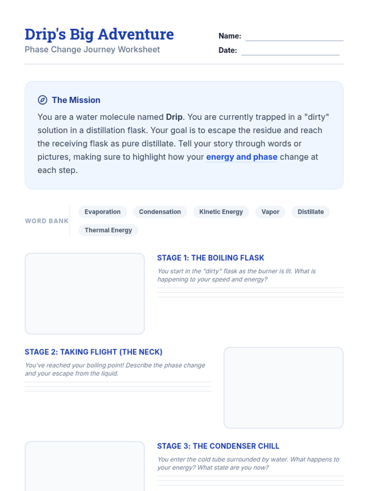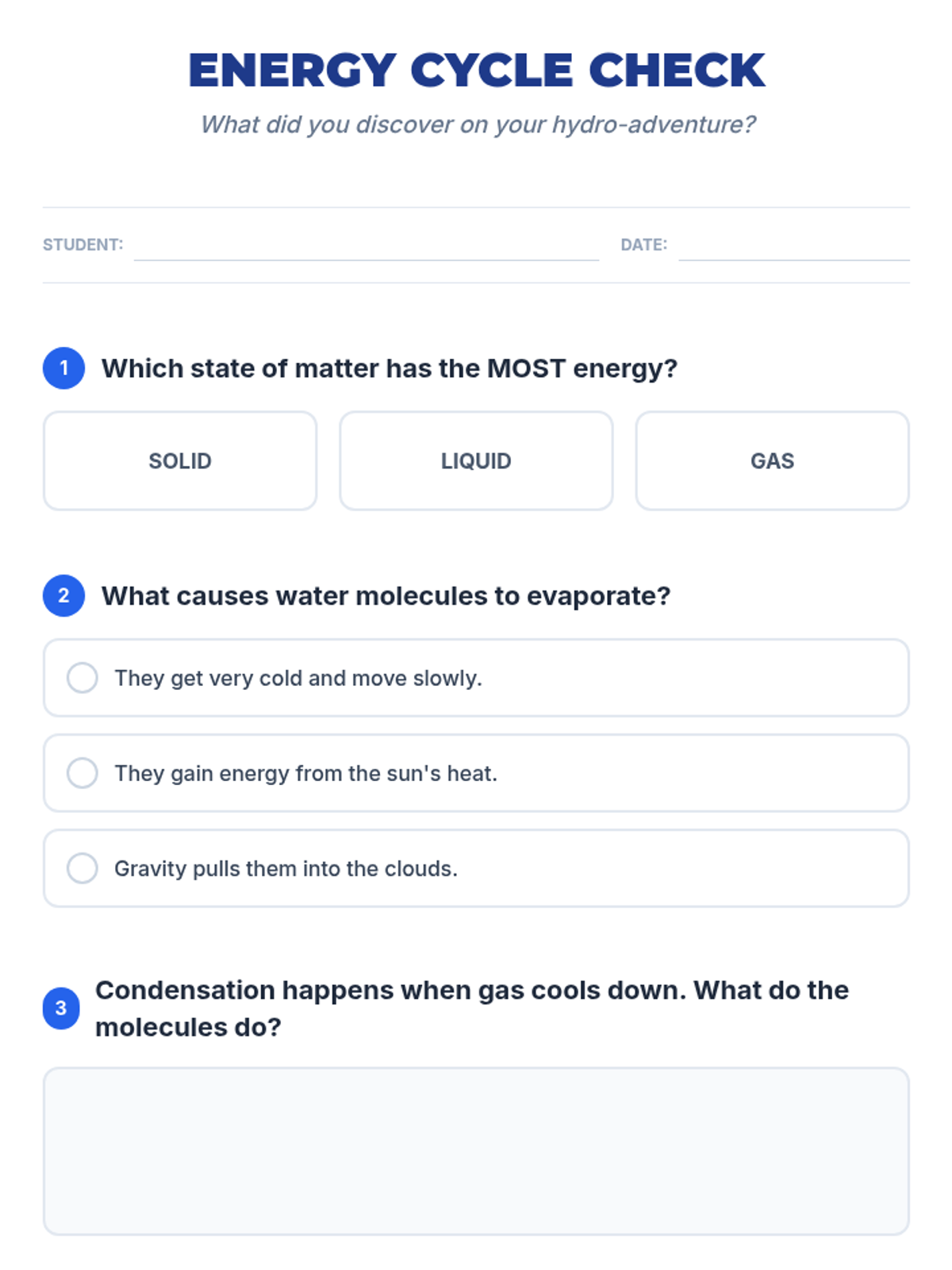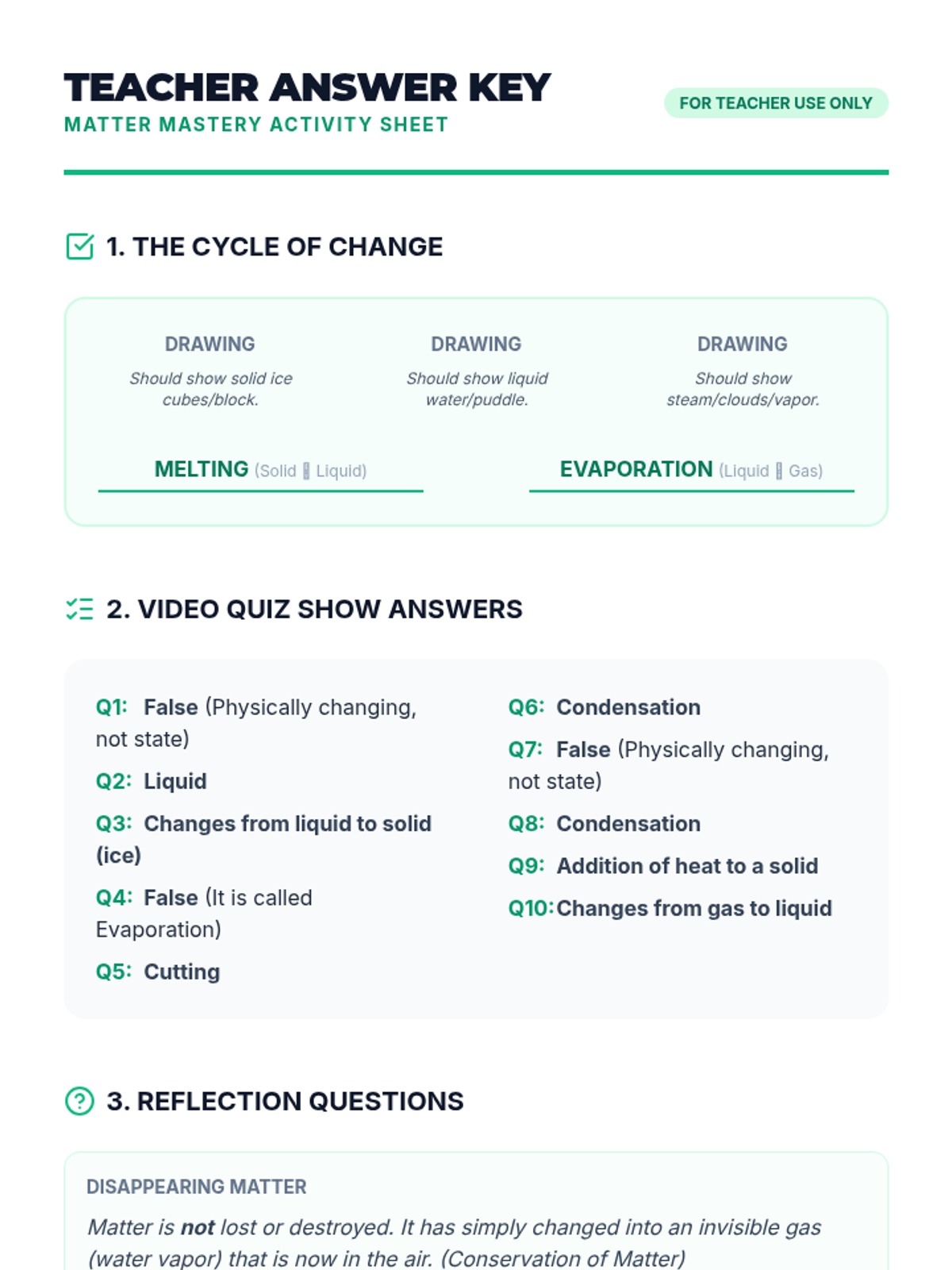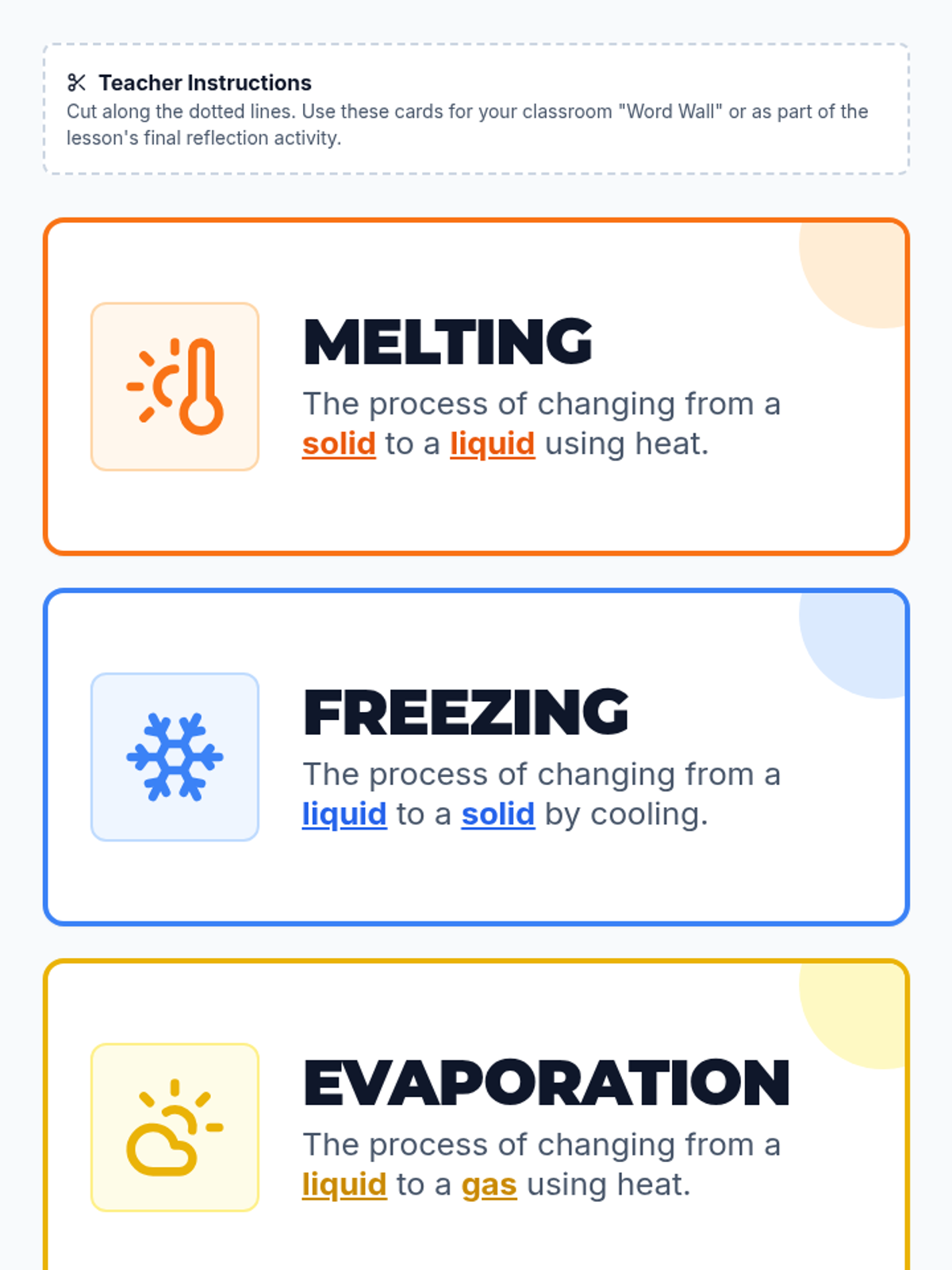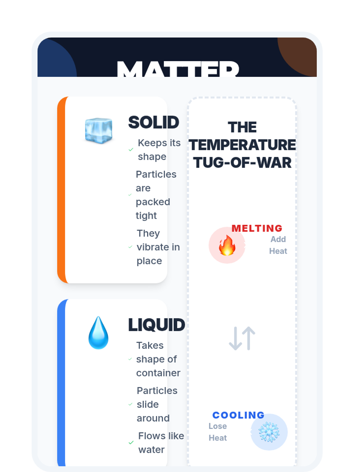 An interactive sorting activity where students categorize various objects into solids, liquids, and gases. This hands-on game uses visual cues to reinforce the fundamental properties of the states of matter.