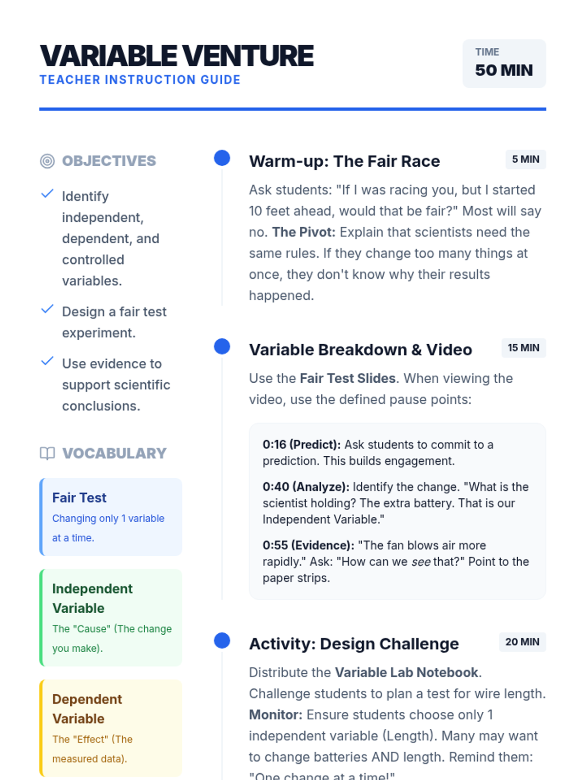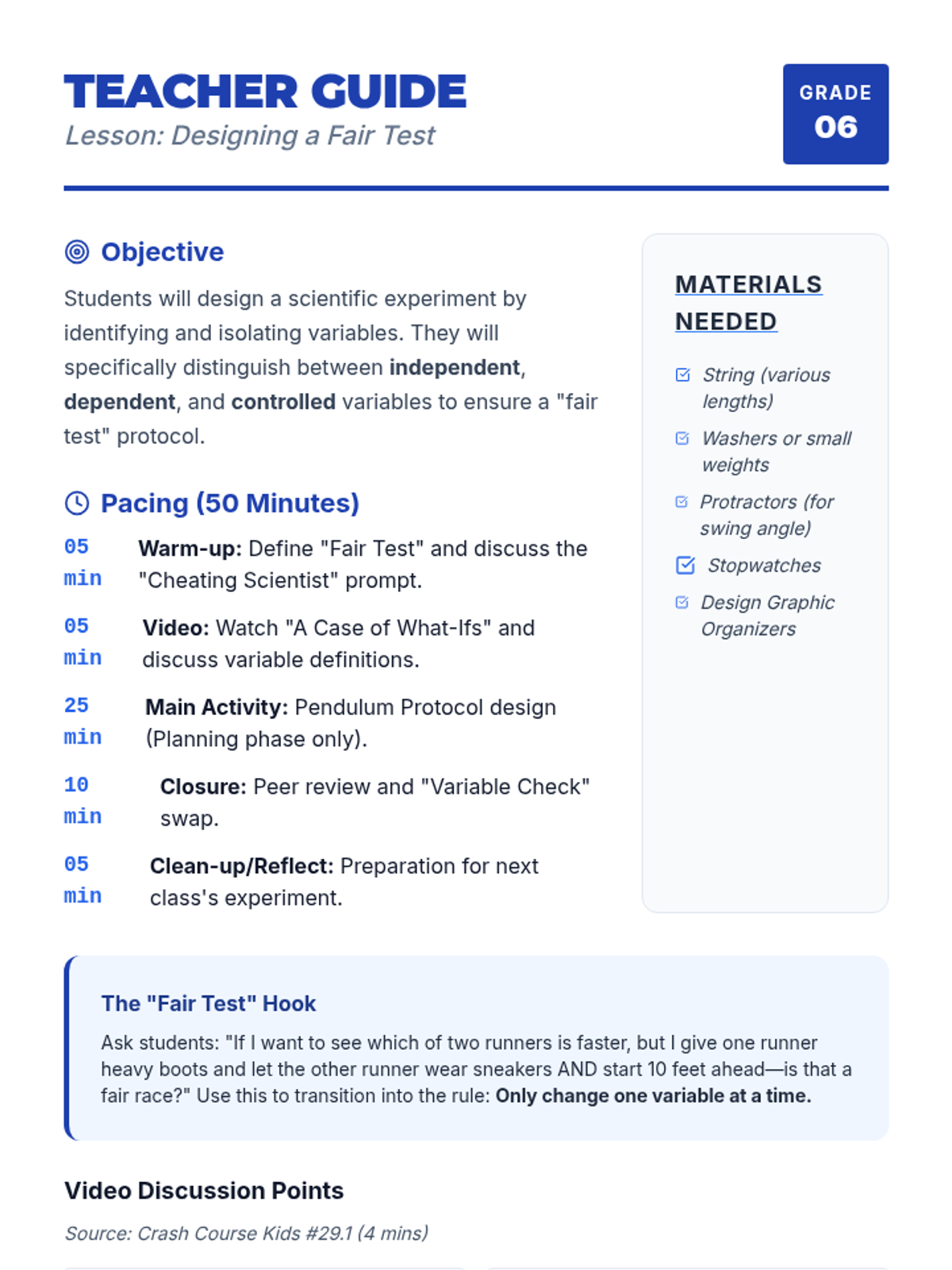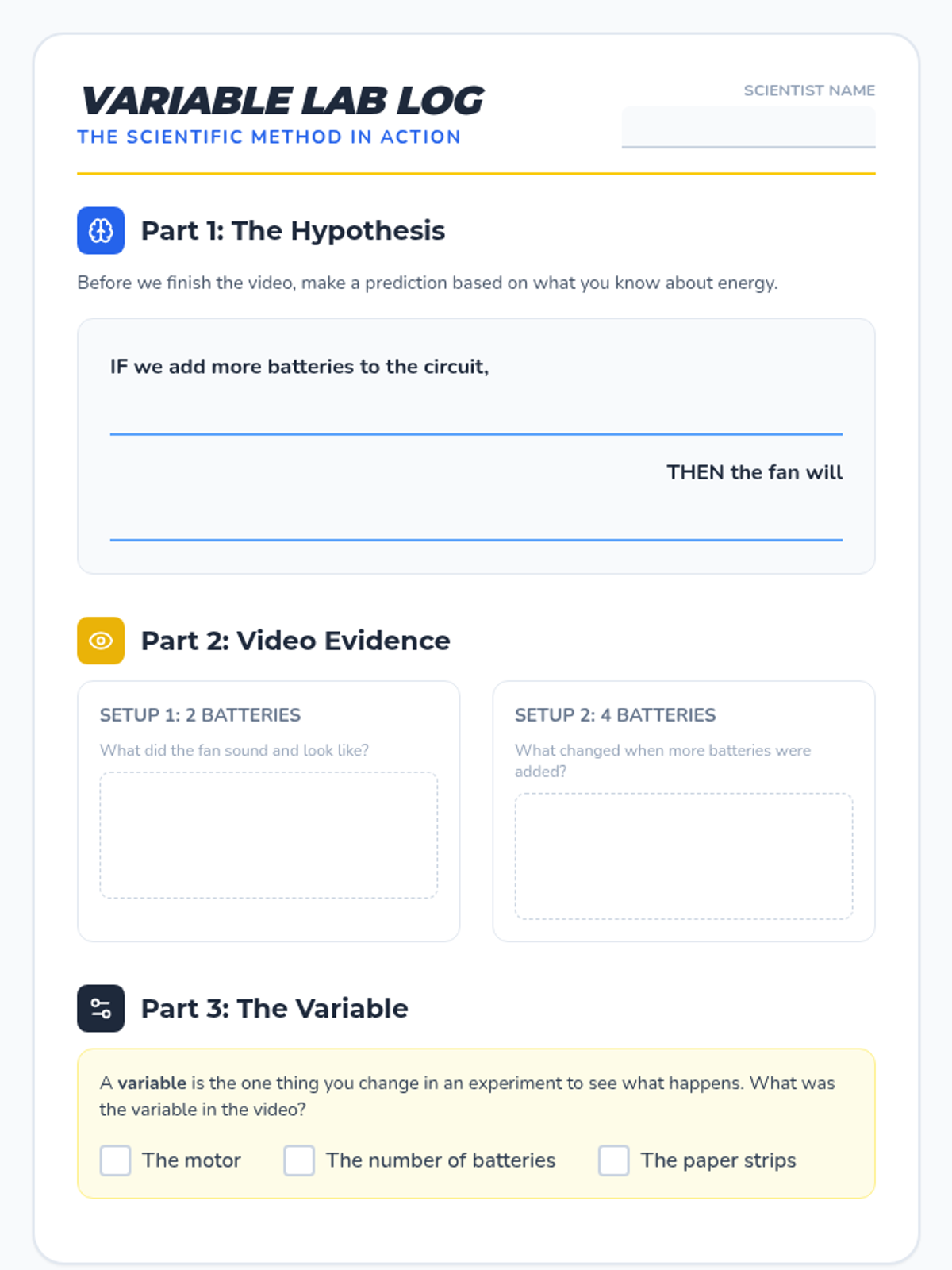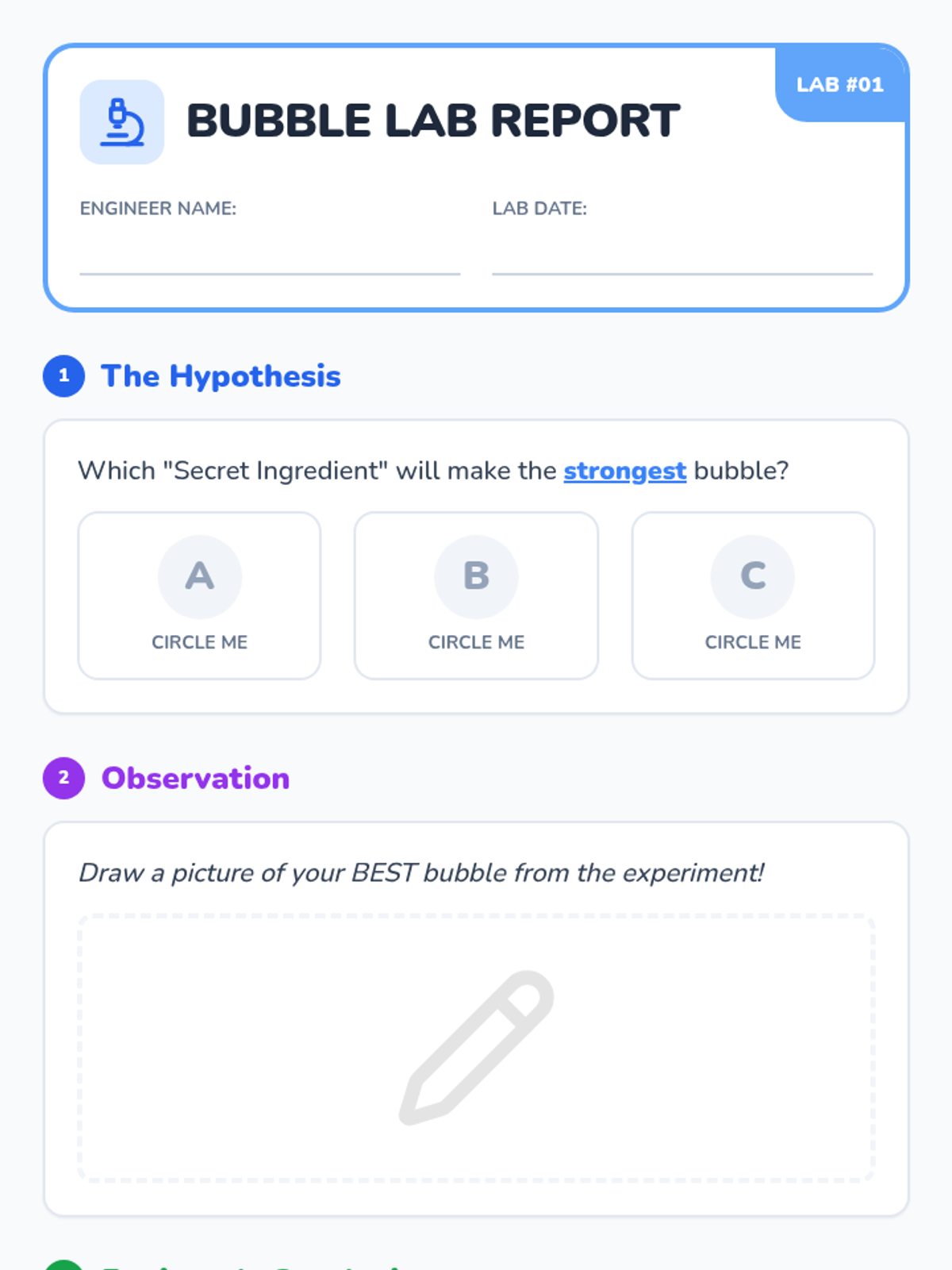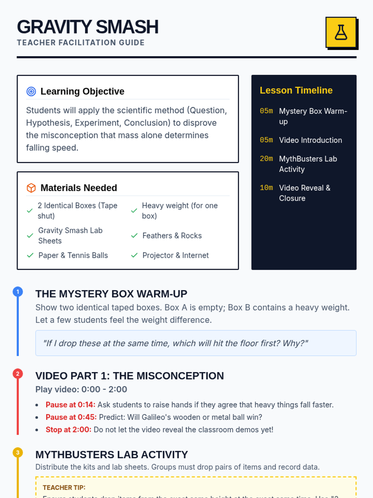 Students will learn the six steps of the scientific method through a historical video and a hands-on 'mystery box' challenge where they must identify hidden objects using non-invasive testing.