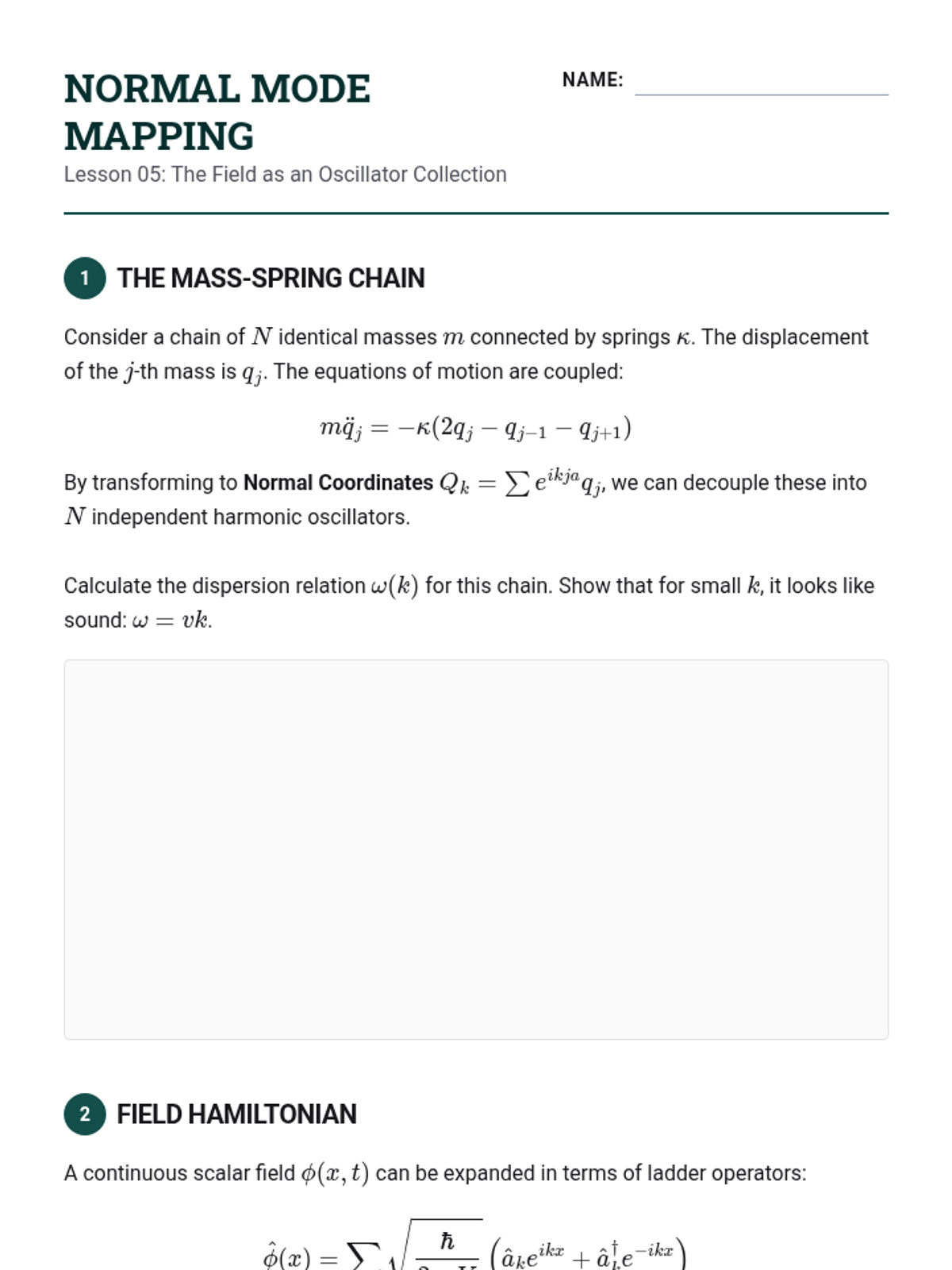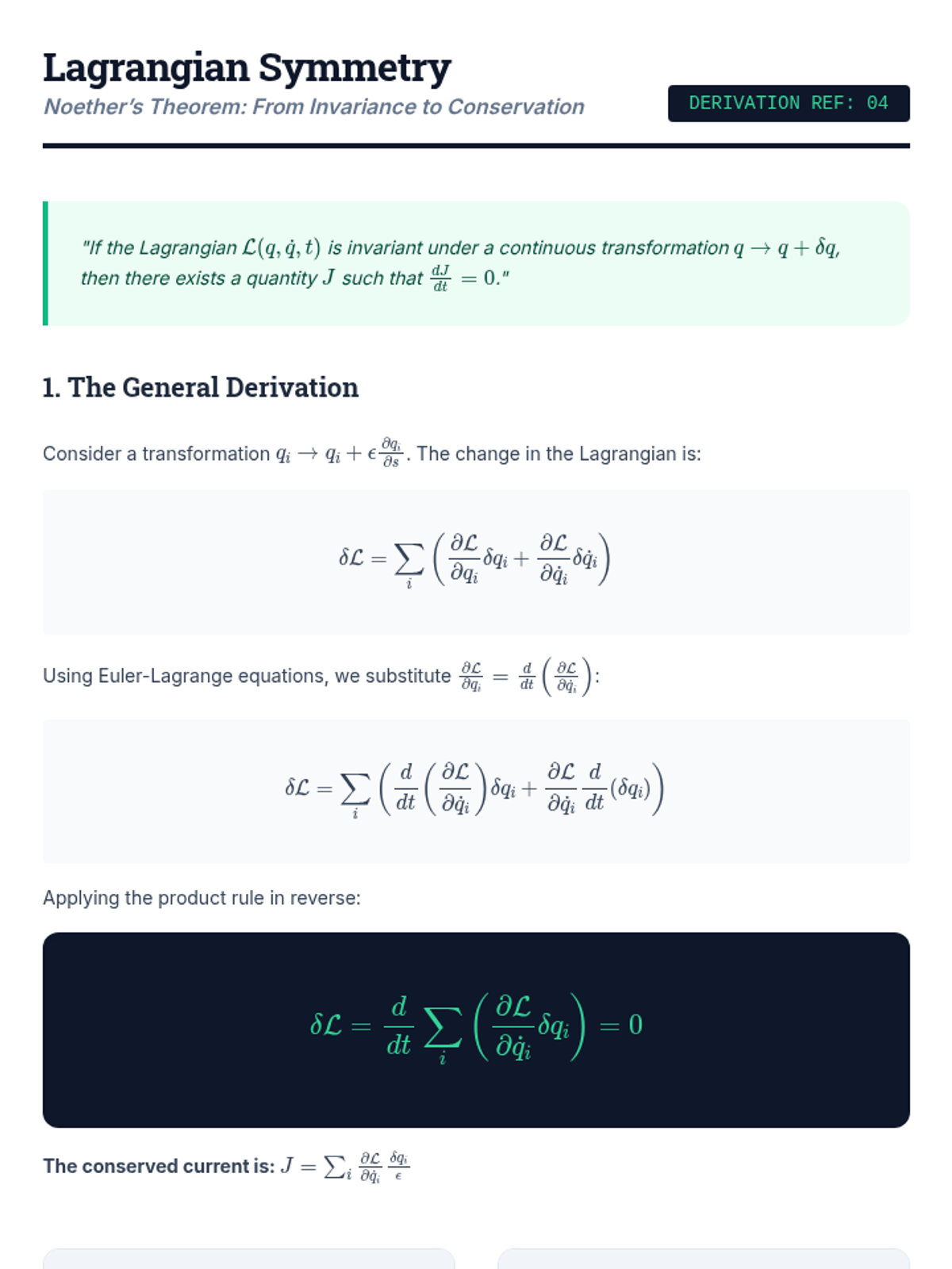 Moving to continuous geometry, students explore the link between spatial translation/rotation and momentum/angular momentum conservation using Lagrangian mechanics.