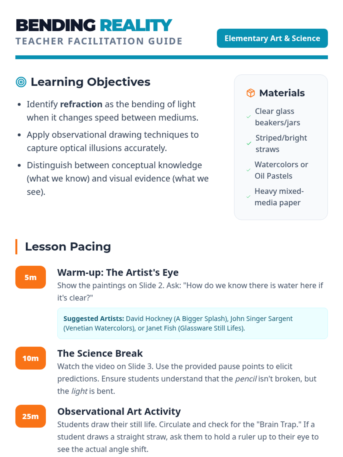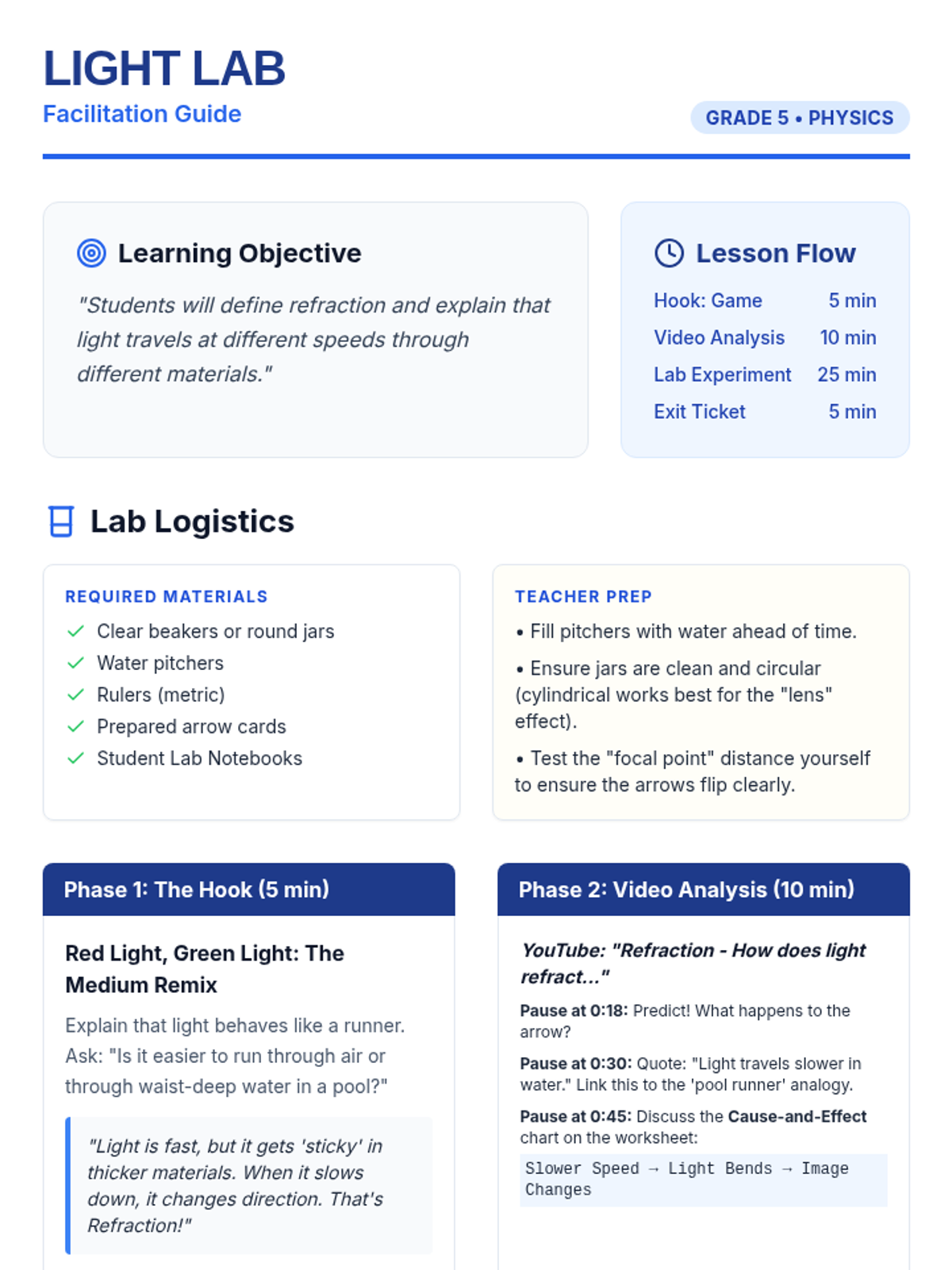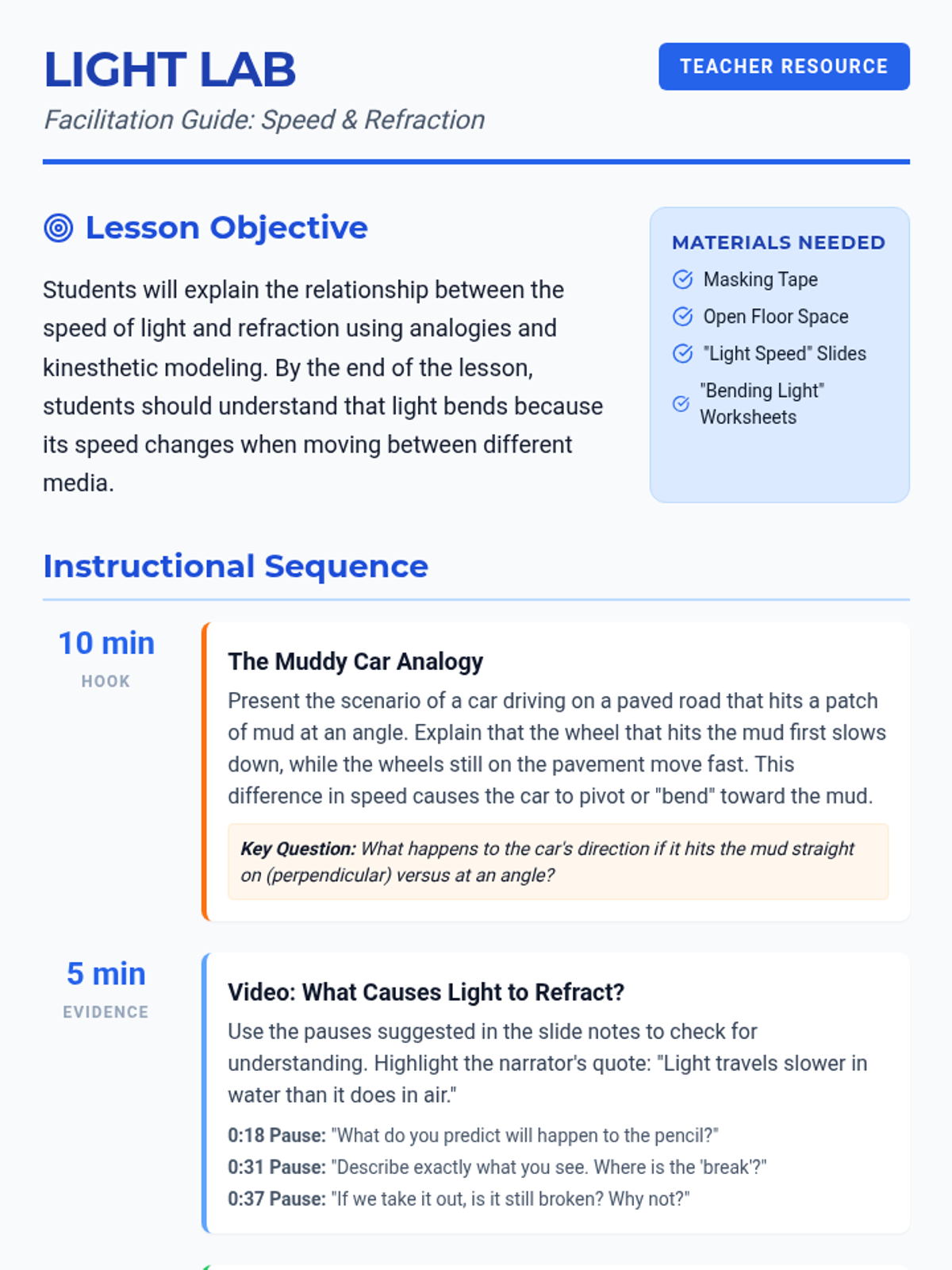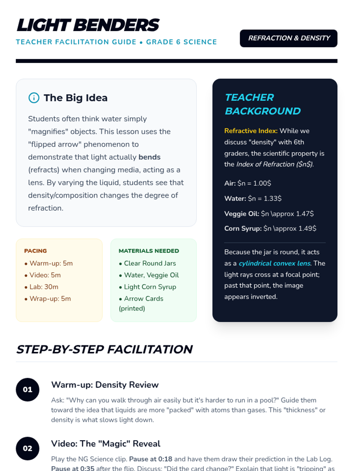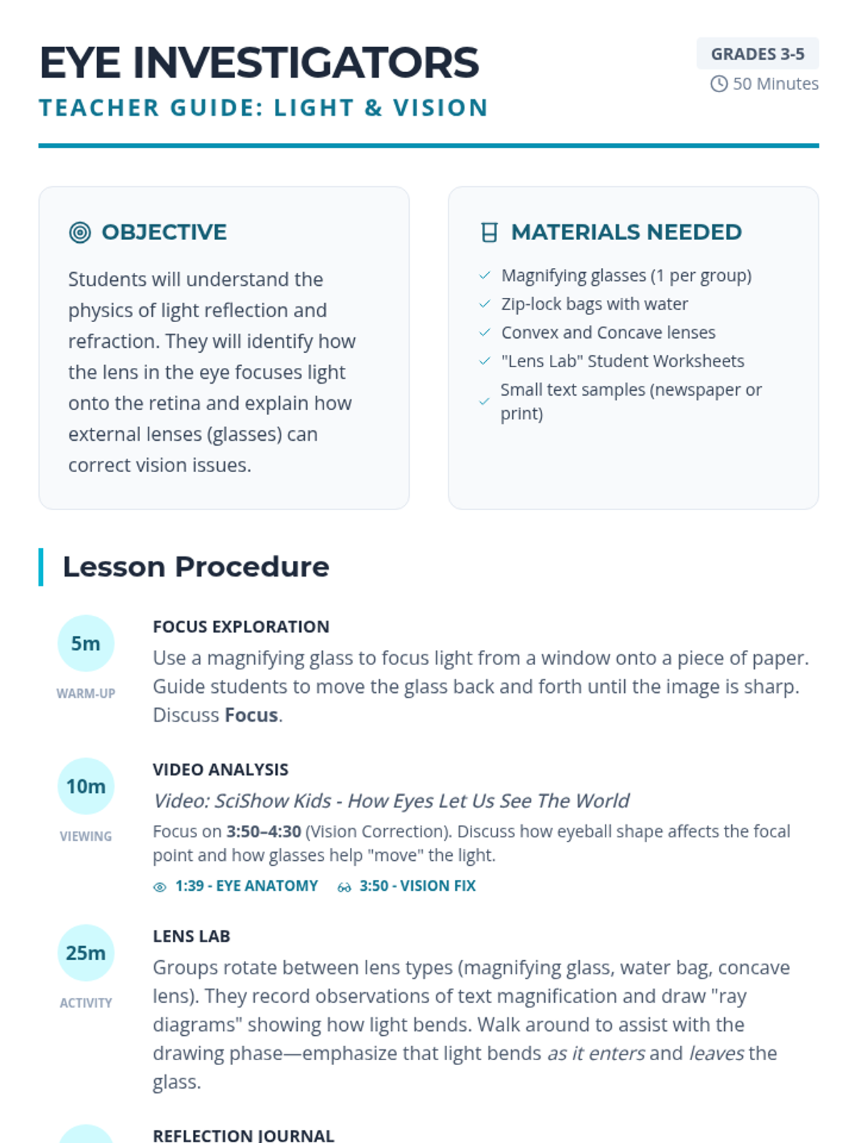 A 2nd-grade science and literacy lesson exploring how light interacts with different materials. Students use a 'Light Lab' video and visual evidence to define and apply the terms transparent, translucent, and opaque.