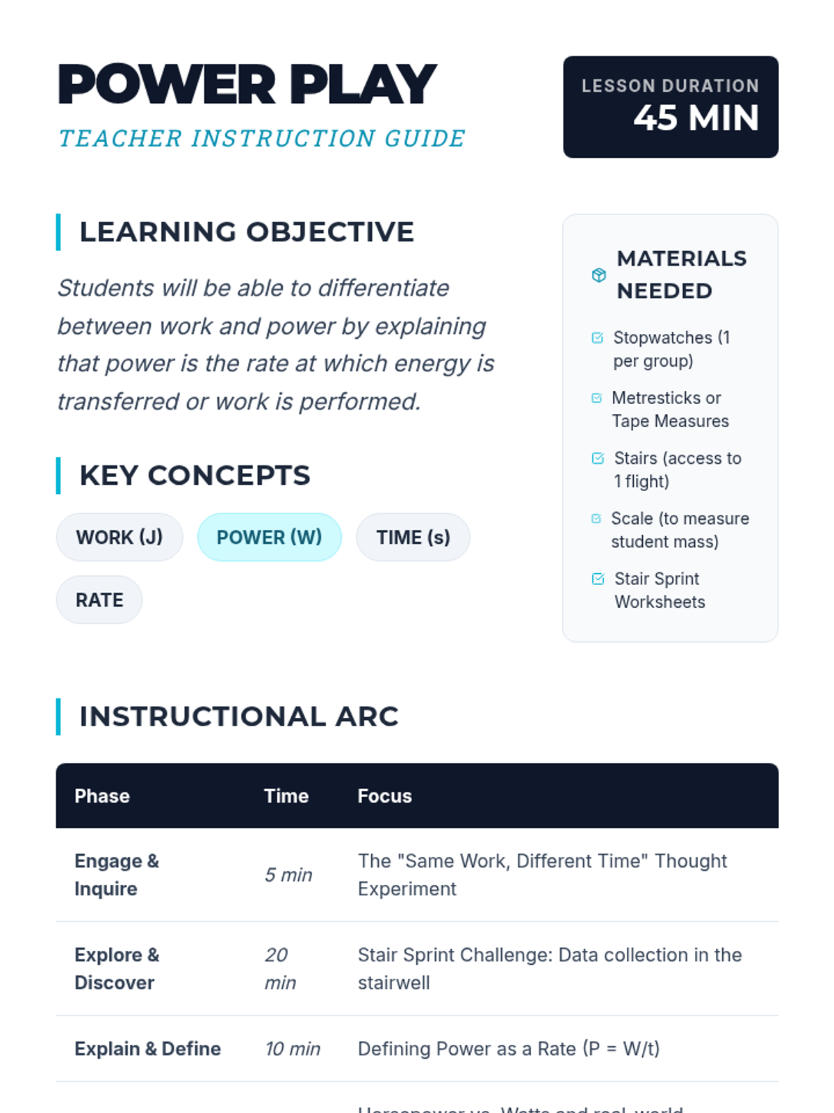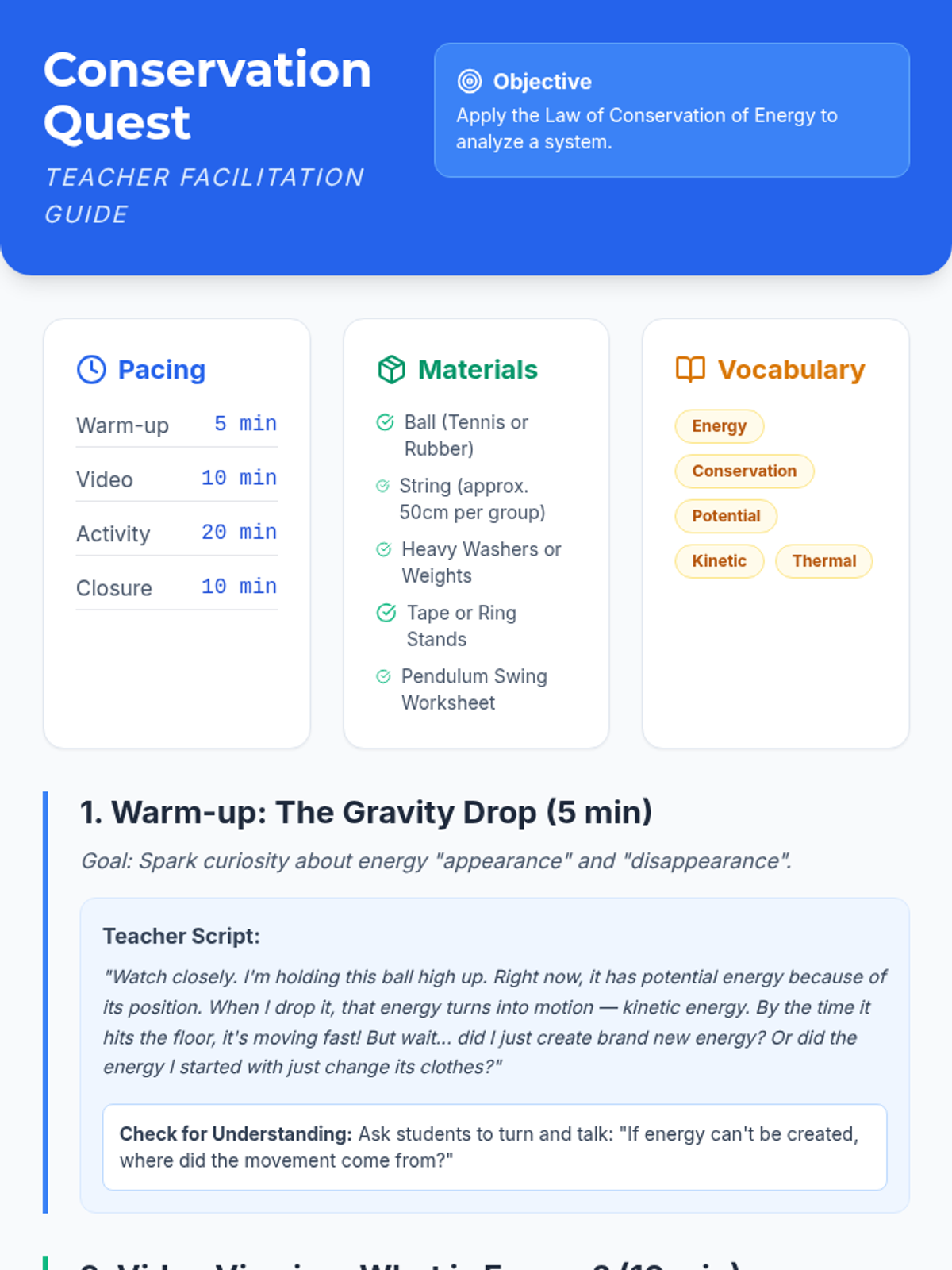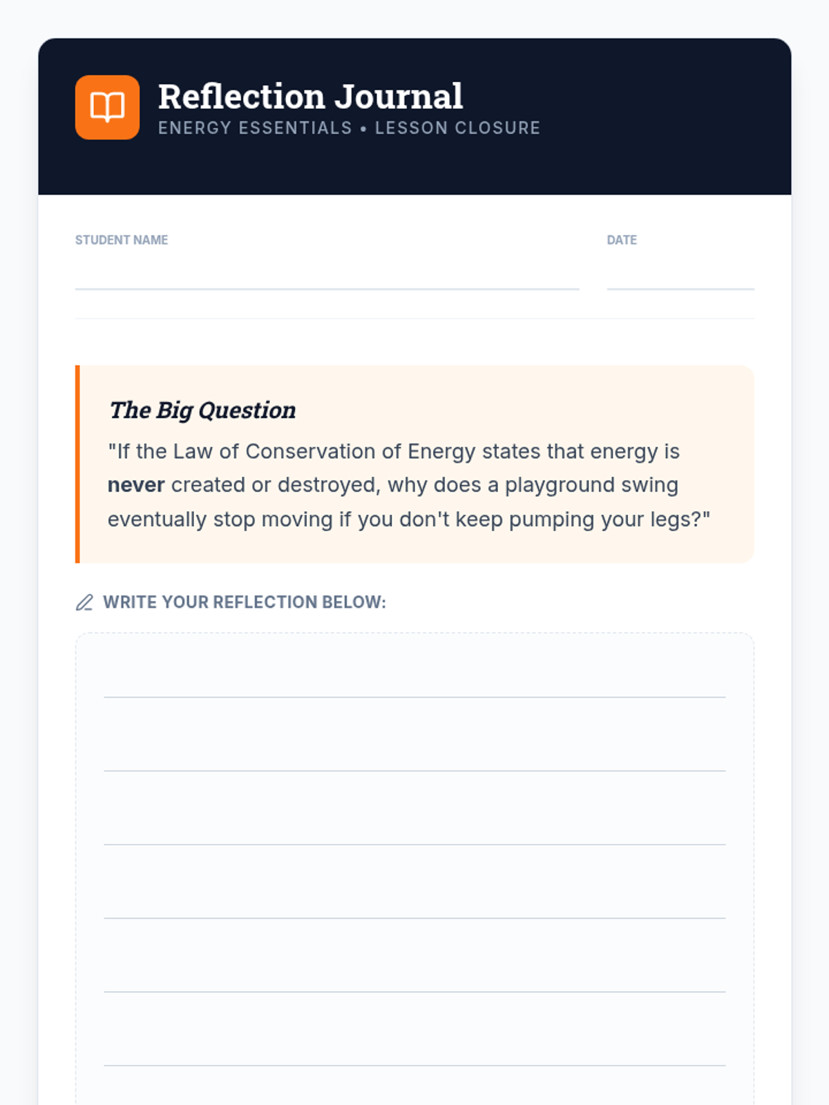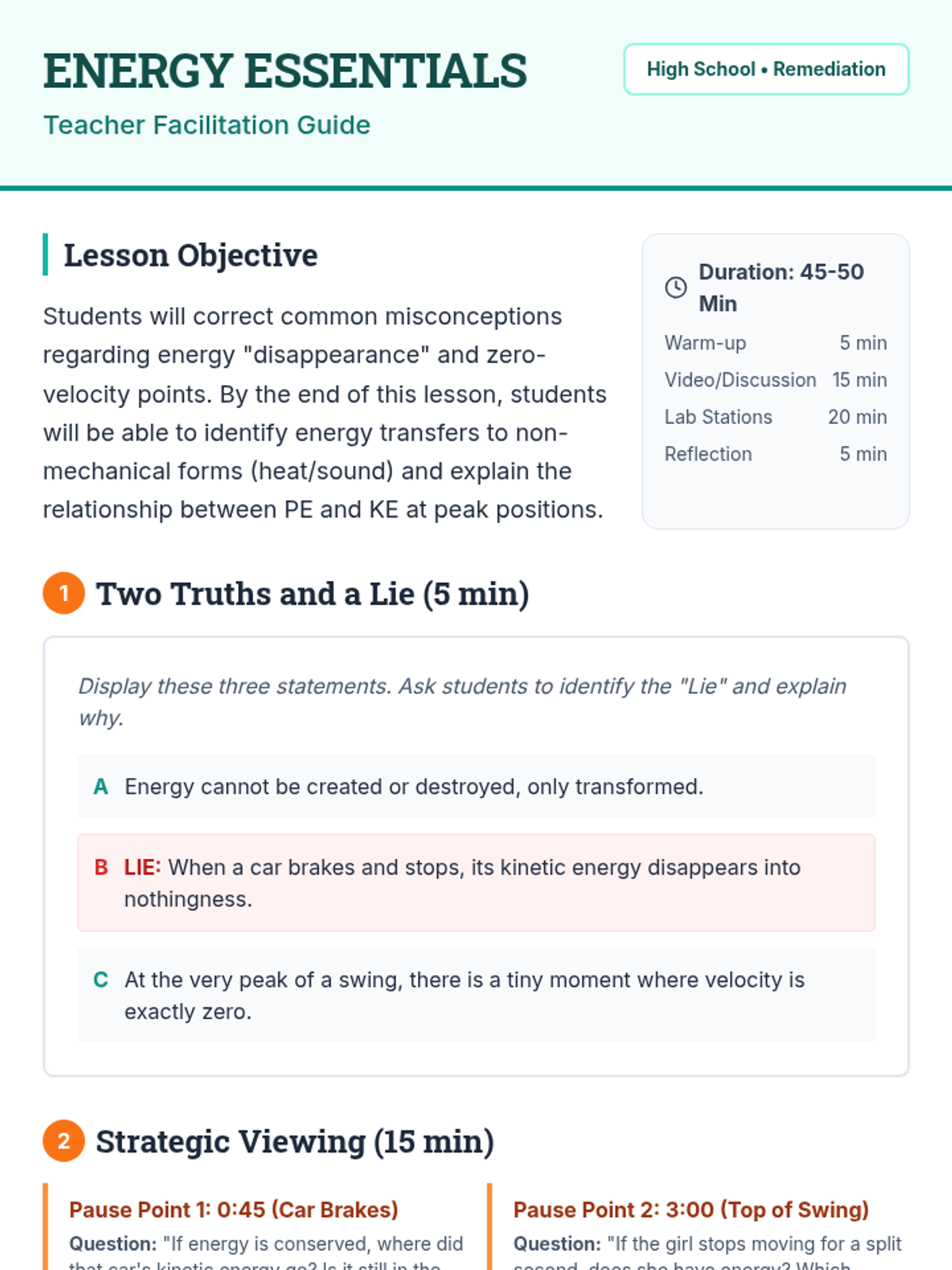 Students explore chemical energy through a hands-on 'Classroom Volcano' experiment, learning that energy is the ability to do work and cause change. The lesson features a video demonstration and a reflective lab report.