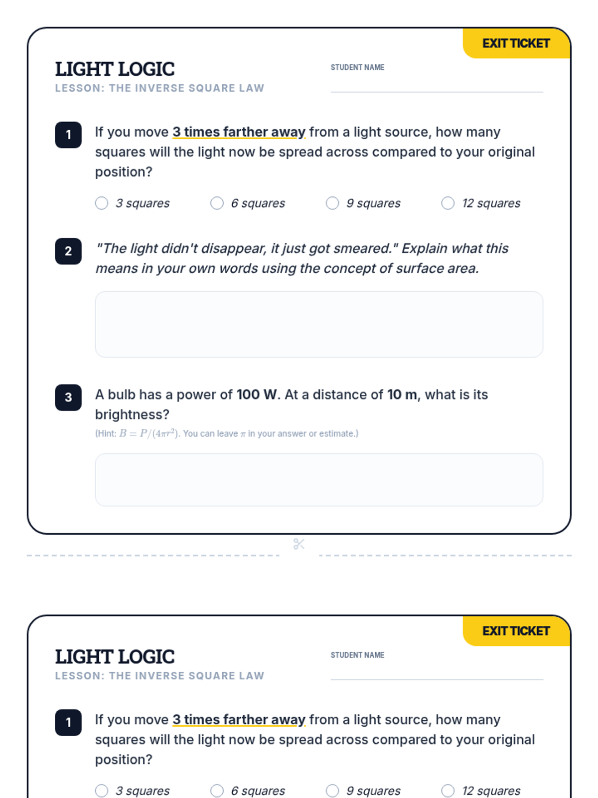 A 10th-grade physics lesson where students use smartphone light sensors to verify the inverse square law and explore the geometric spreading of light.