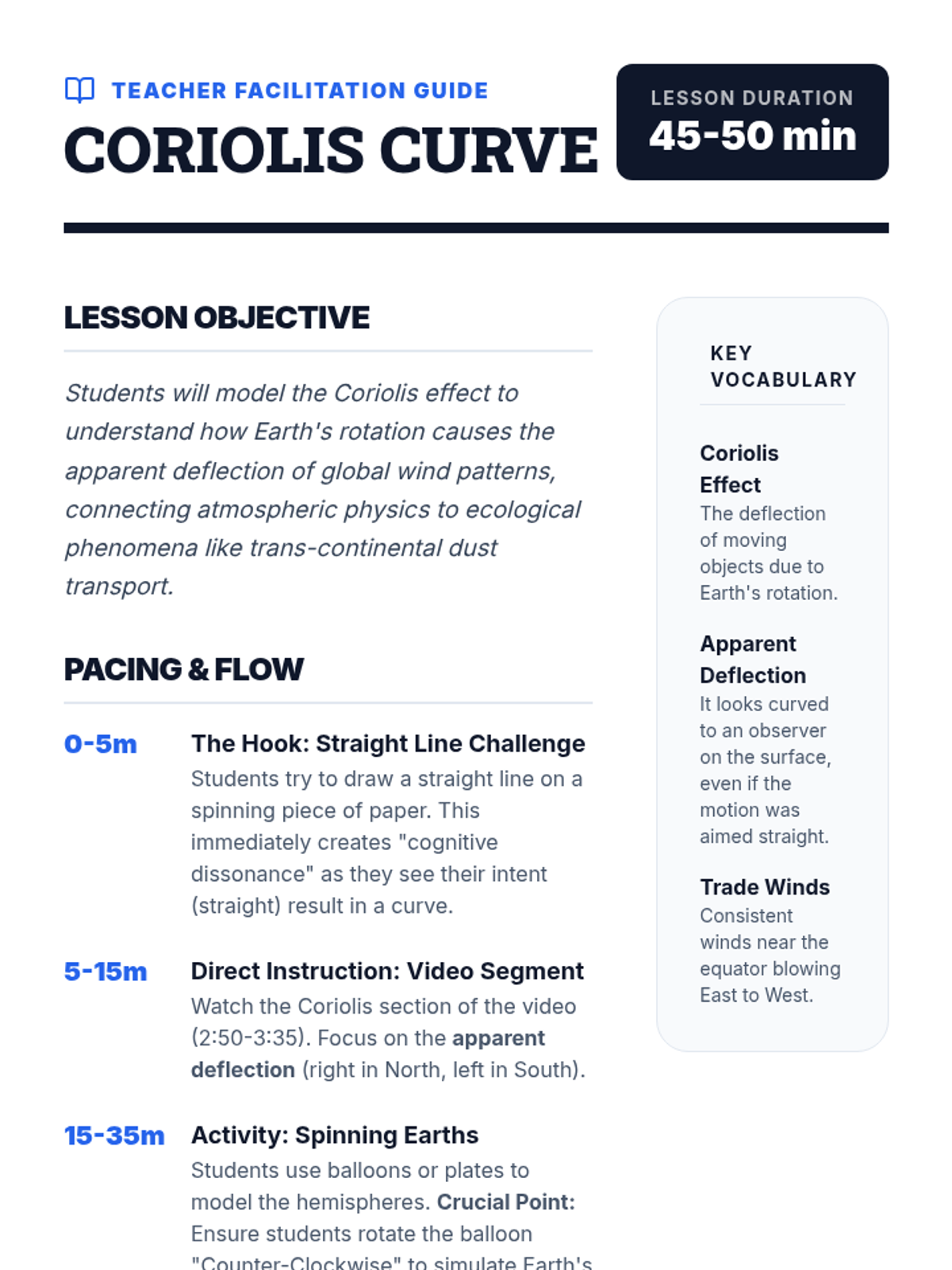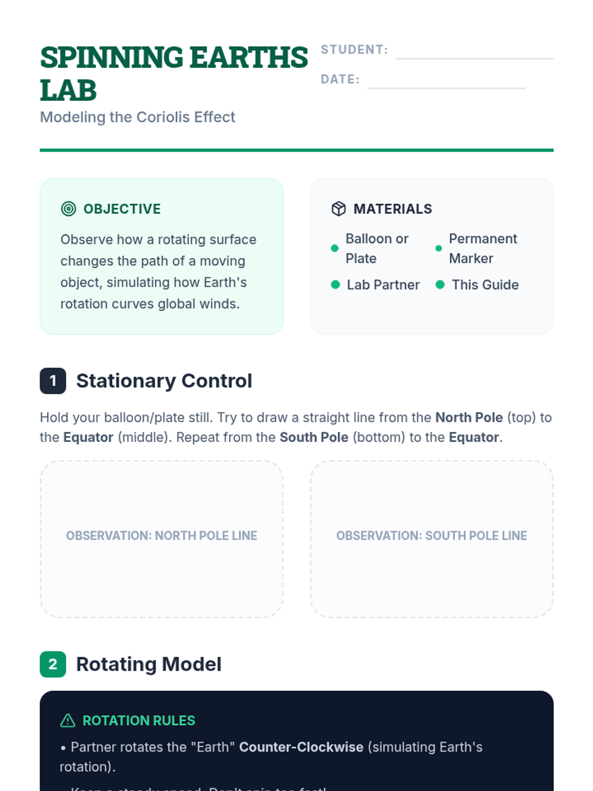 A comprehensive lesson for high school students to analyze the relationship between global pressure belts and prevailing winds using the 3-cell atmospheric model and the Coriolis effect.