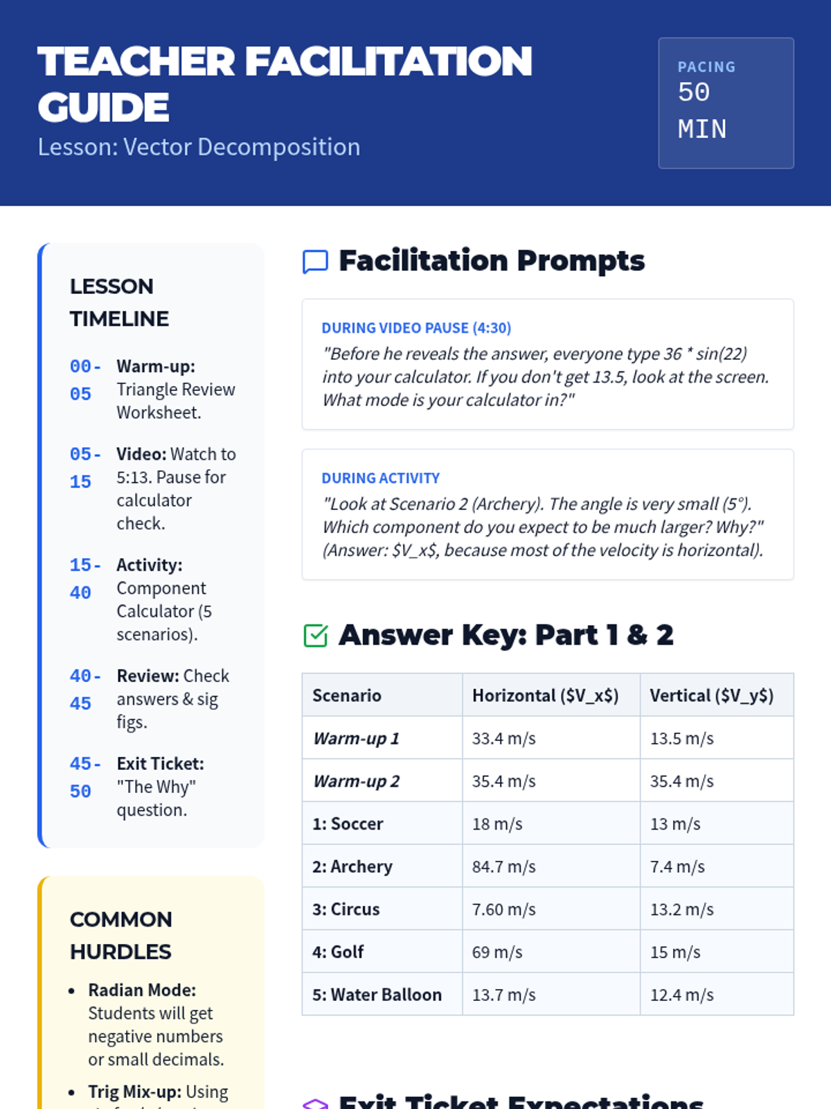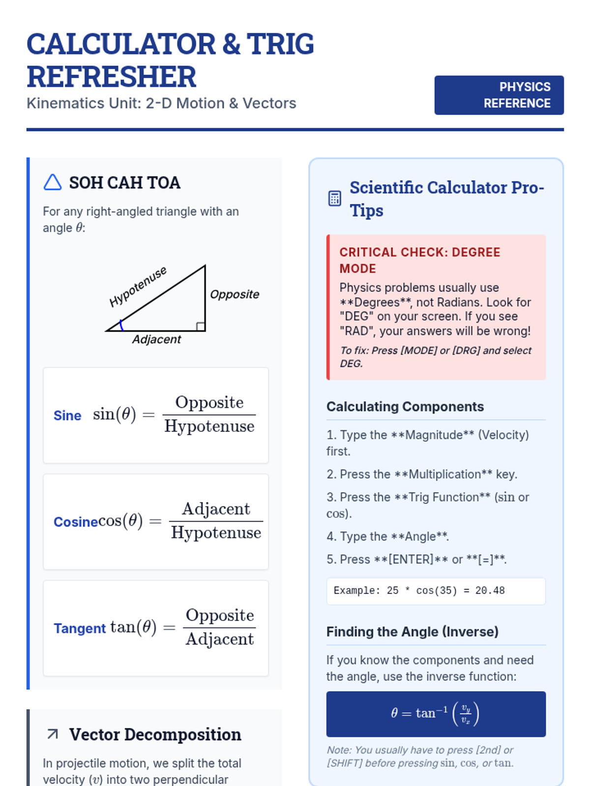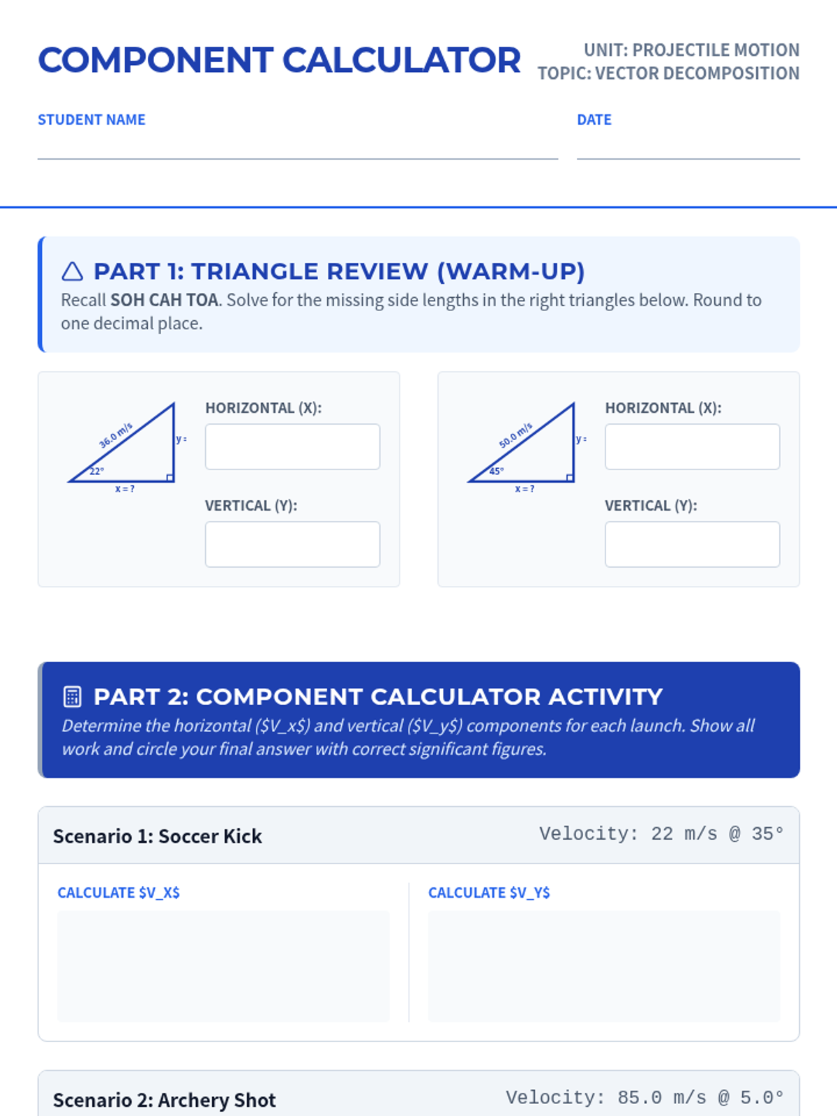 Students will master the foundational skill of projectile motion: decomposing initial velocity vectors into horizontal and vertical components using trigonometry.