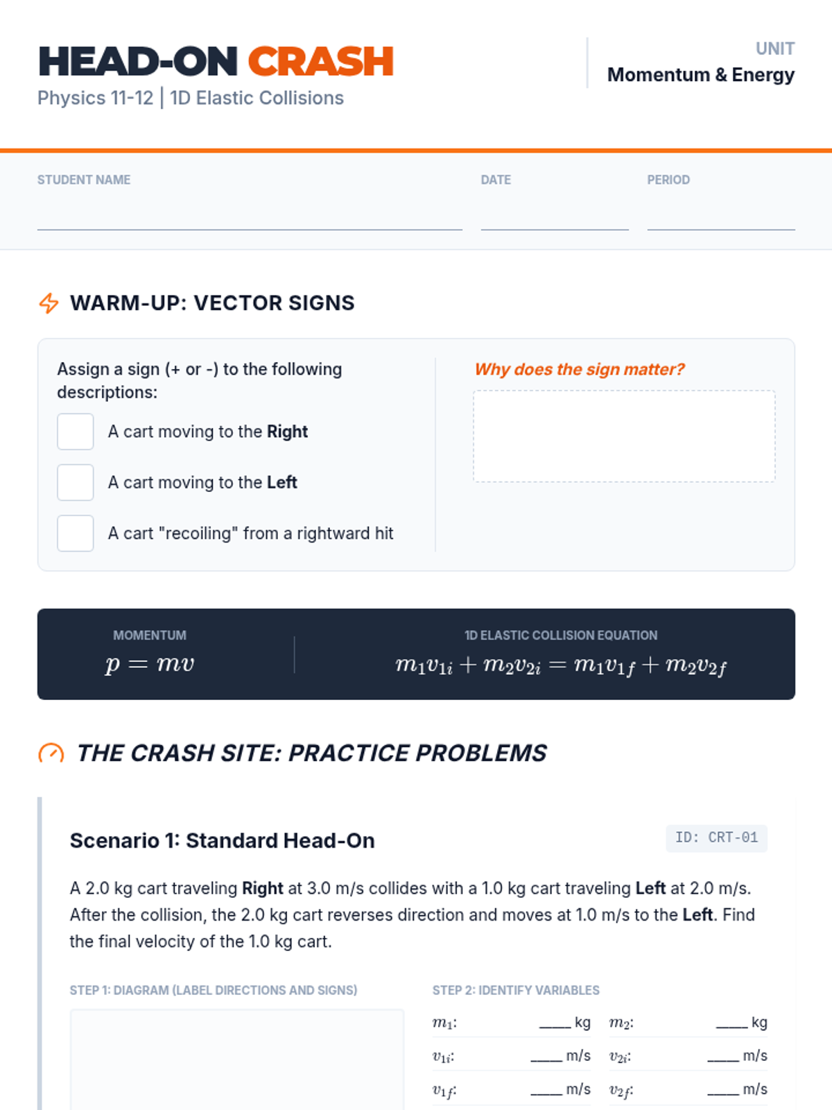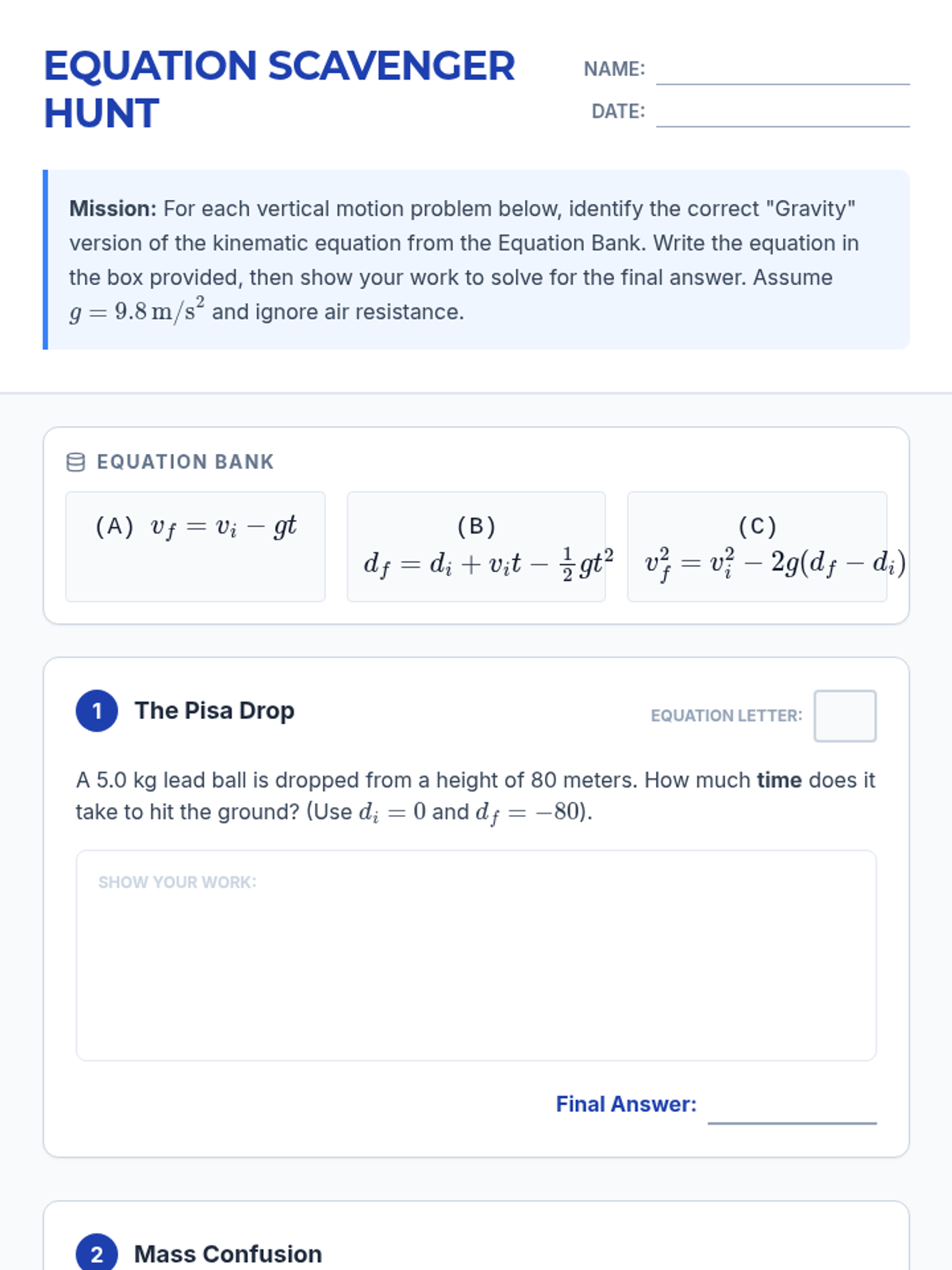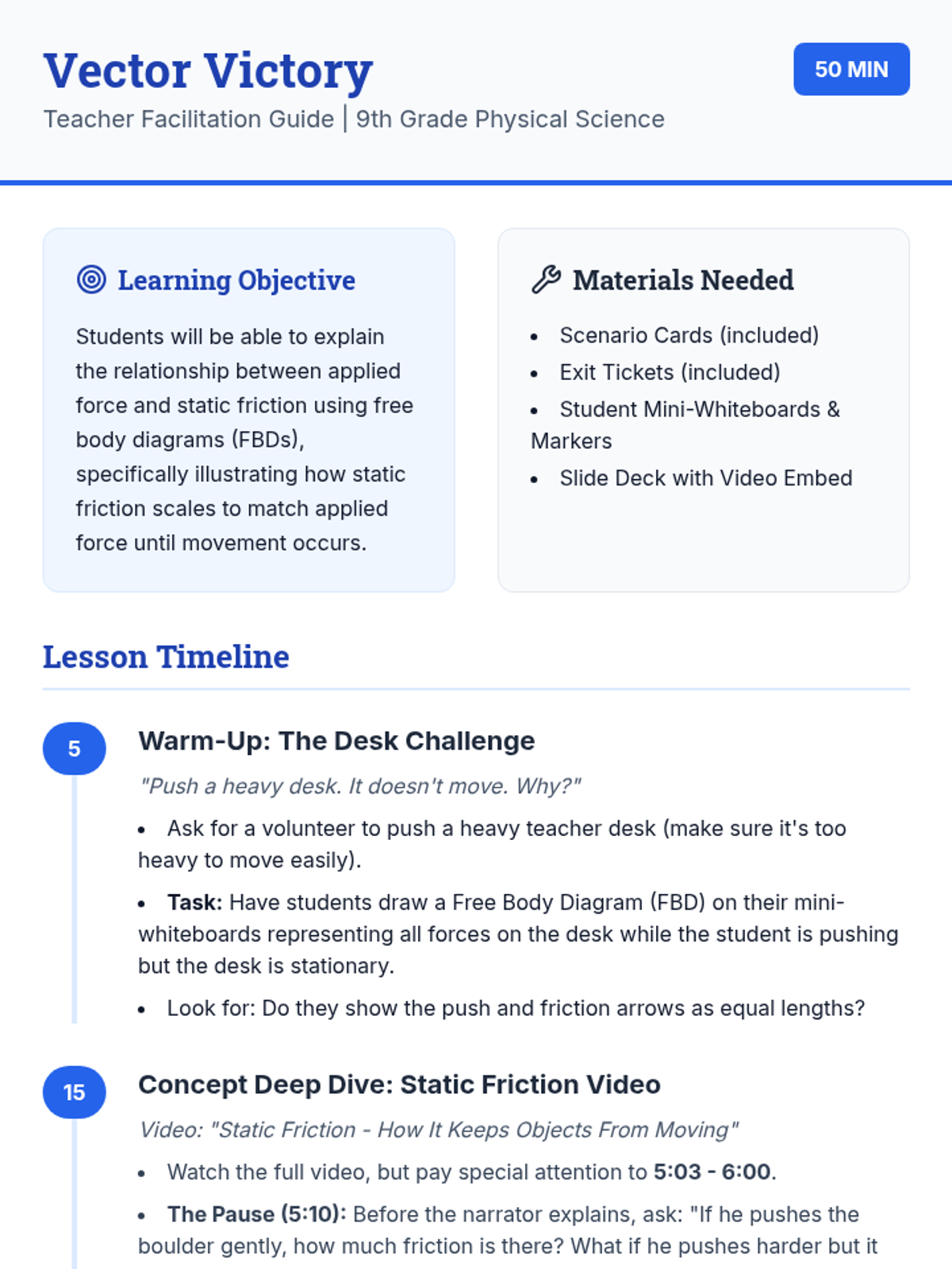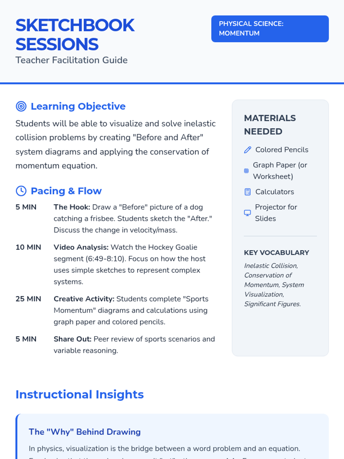 A high-energy lesson focused on mastering the 5-step problem-solving strategy for projectile motion through a collaborative 'Problem Pass' activity and video-based modeling. Students move from a jigsaw warm-up to a peer-critique practice session, ensuring mastery of sketches, components, and kinematic equations.