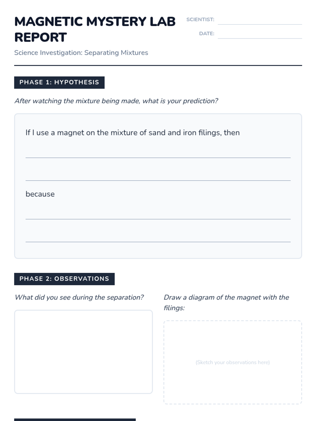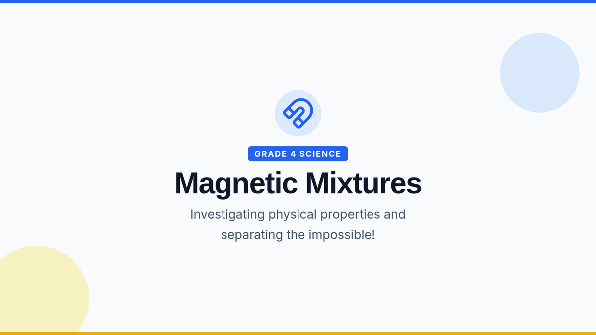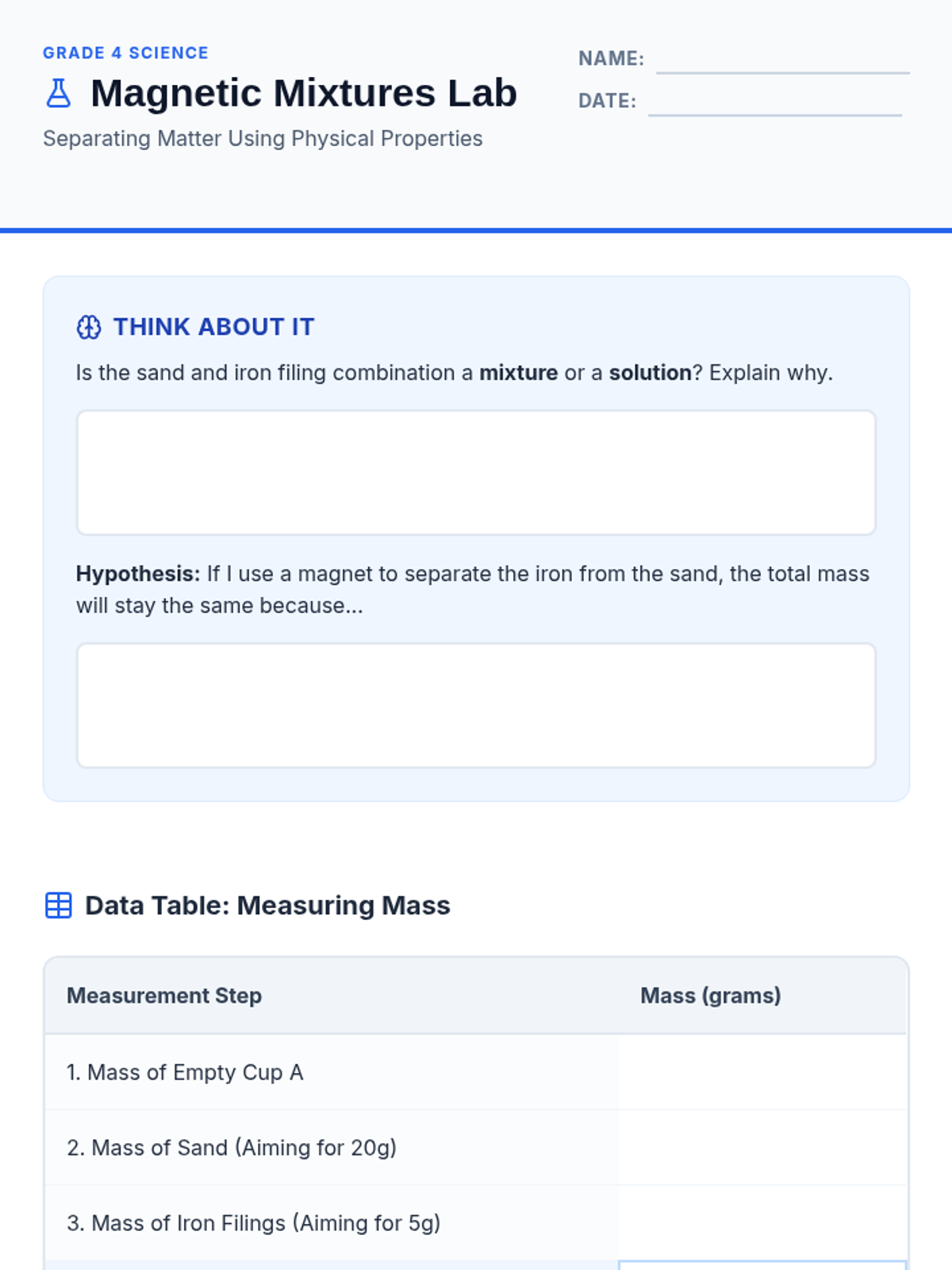 A hands-on inquiry lesson where students use the scientific method to observe how magnets separate mixtures, exploring magnetic fields and physical properties.