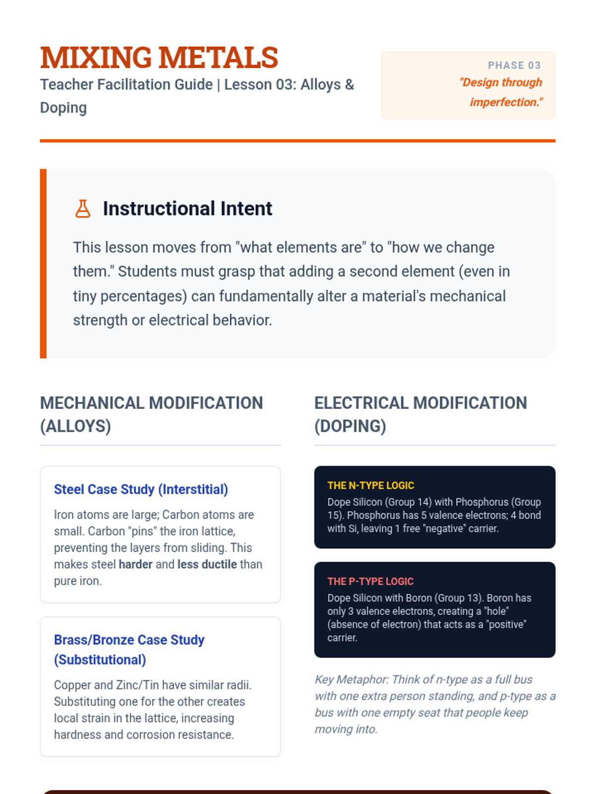A study of how alloys and doping modify material properties, featuring steel and p/n-type semiconductors.