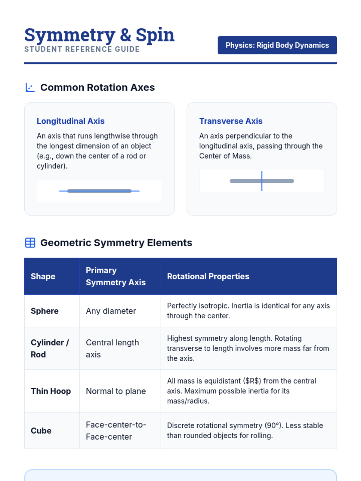 Students identify and analyze axes of rotation for 3D solids, exploring how symmetry influences rotational stability and the complexity of motion.