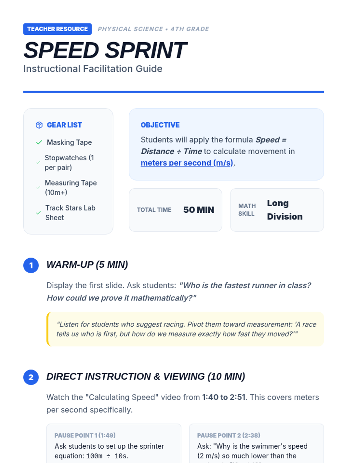A PE and Science integrated lesson where students investigate how momentum and launch angle affect jumping distance, based on the physics concepts of speed and trajectory.