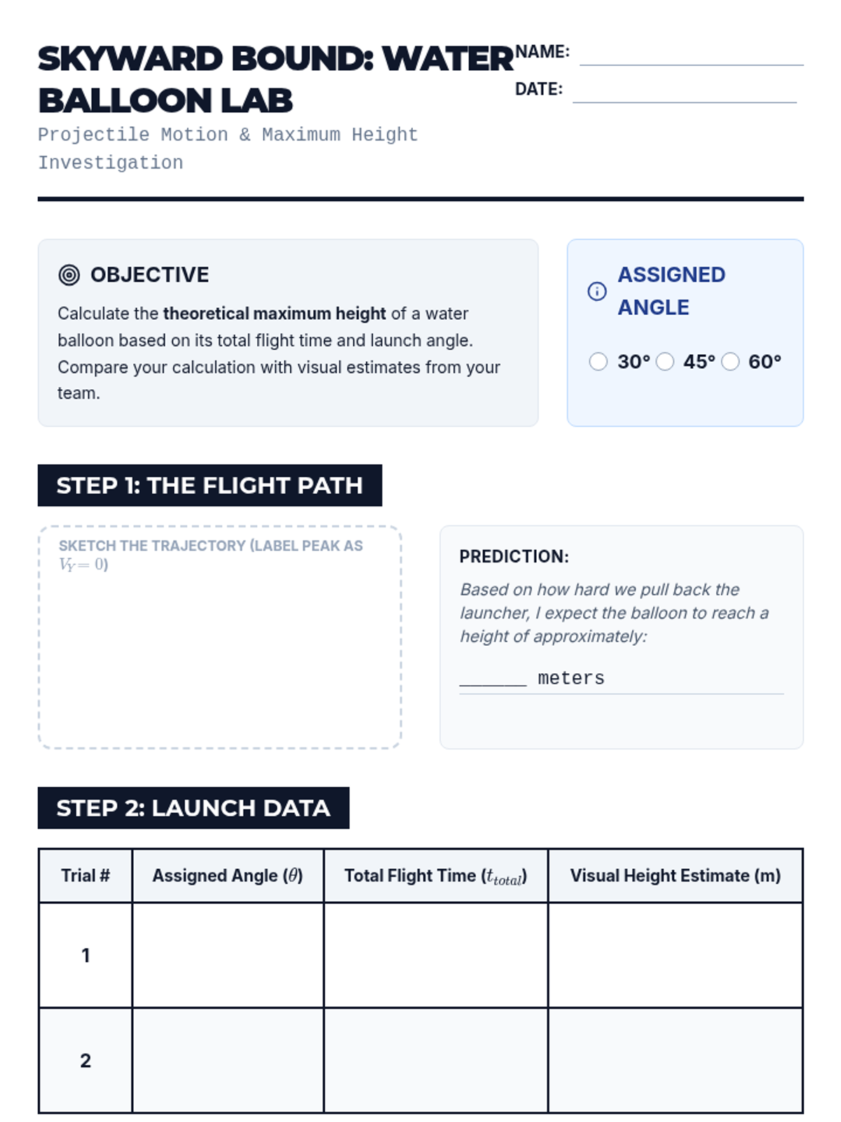 Students investigate the physics of projectiles by calculating maximum height. This lesson uses video analysis of fireworks and dumplings to anchor the concept that vertical velocity is zero at the peak, followed by a hands-on water balloon launch activity.