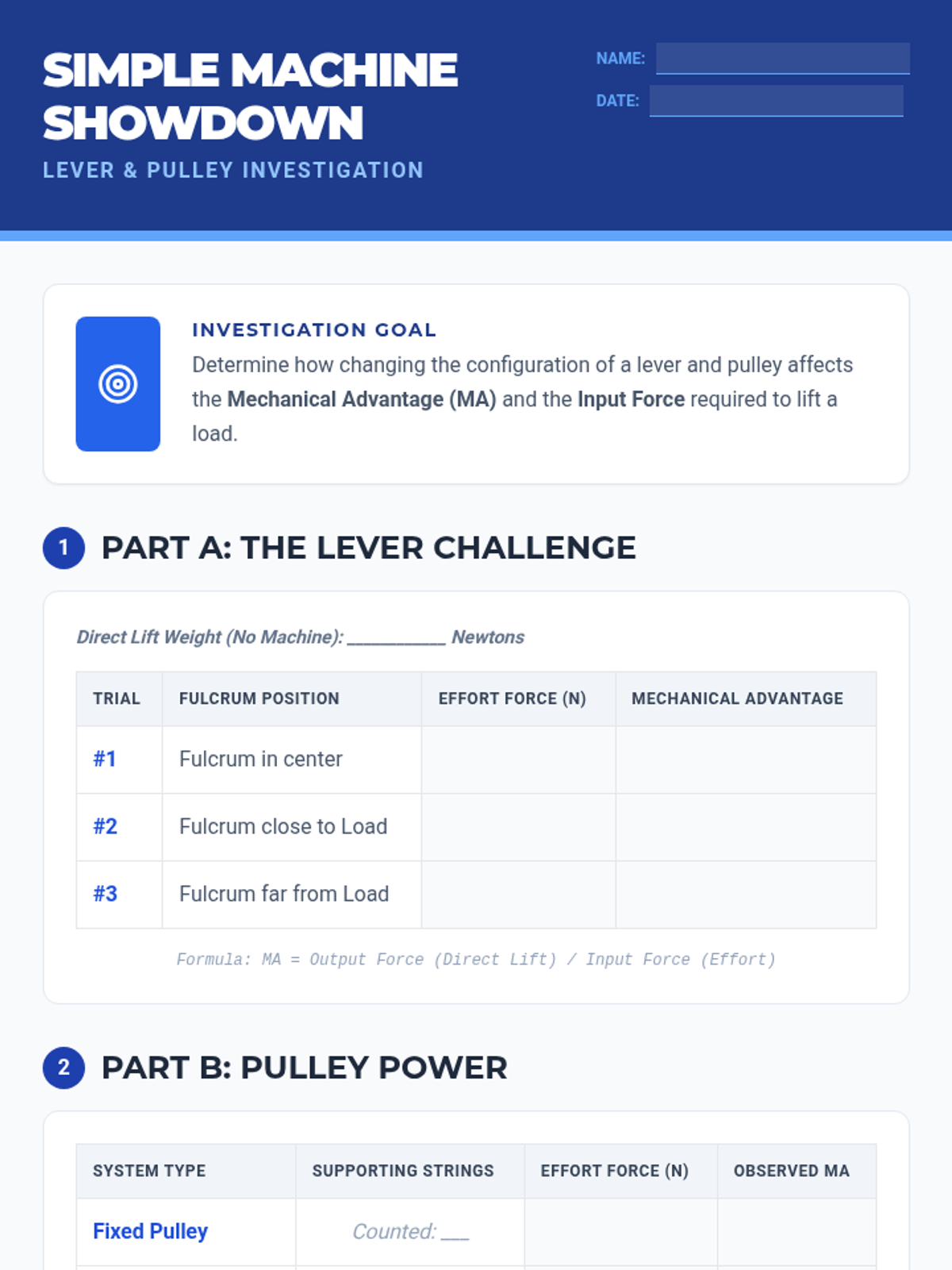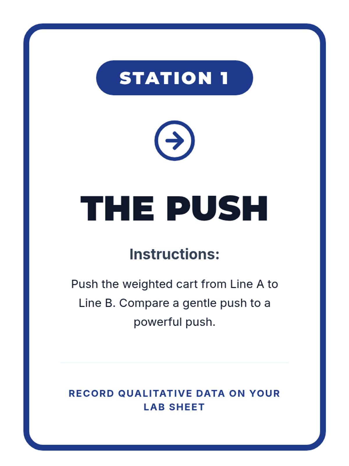 A hands-on investigation into balanced and unbalanced forces, magnetism, and friction, using a Maglev train as a real-world connection. Students rotate through three stations to measure and observe how different forces affect motion.