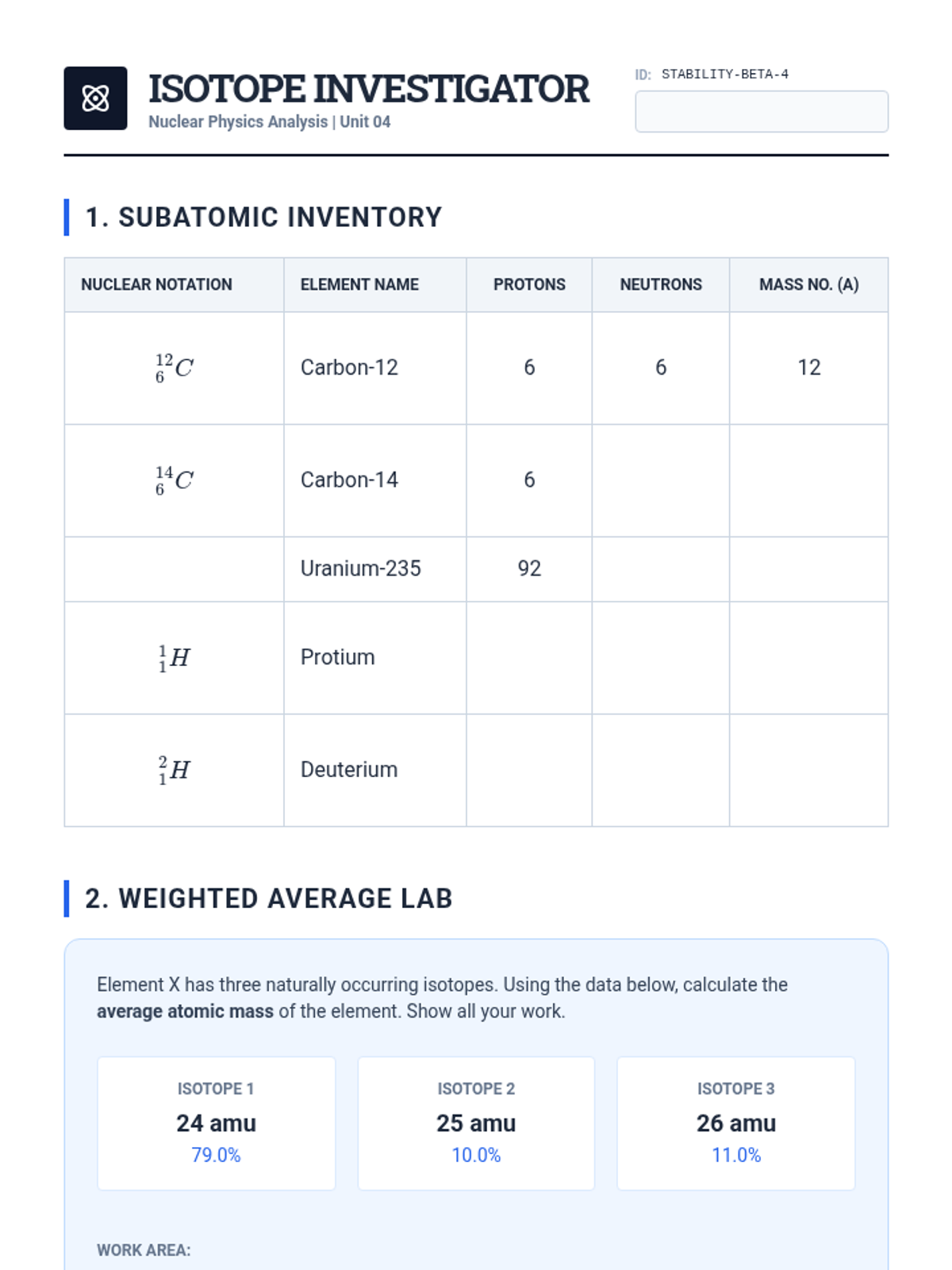 Students investigate isotopes to understand how atoms of the same element can have different masses due to neutron variation. This clarifies the concept of average atomic mass.
