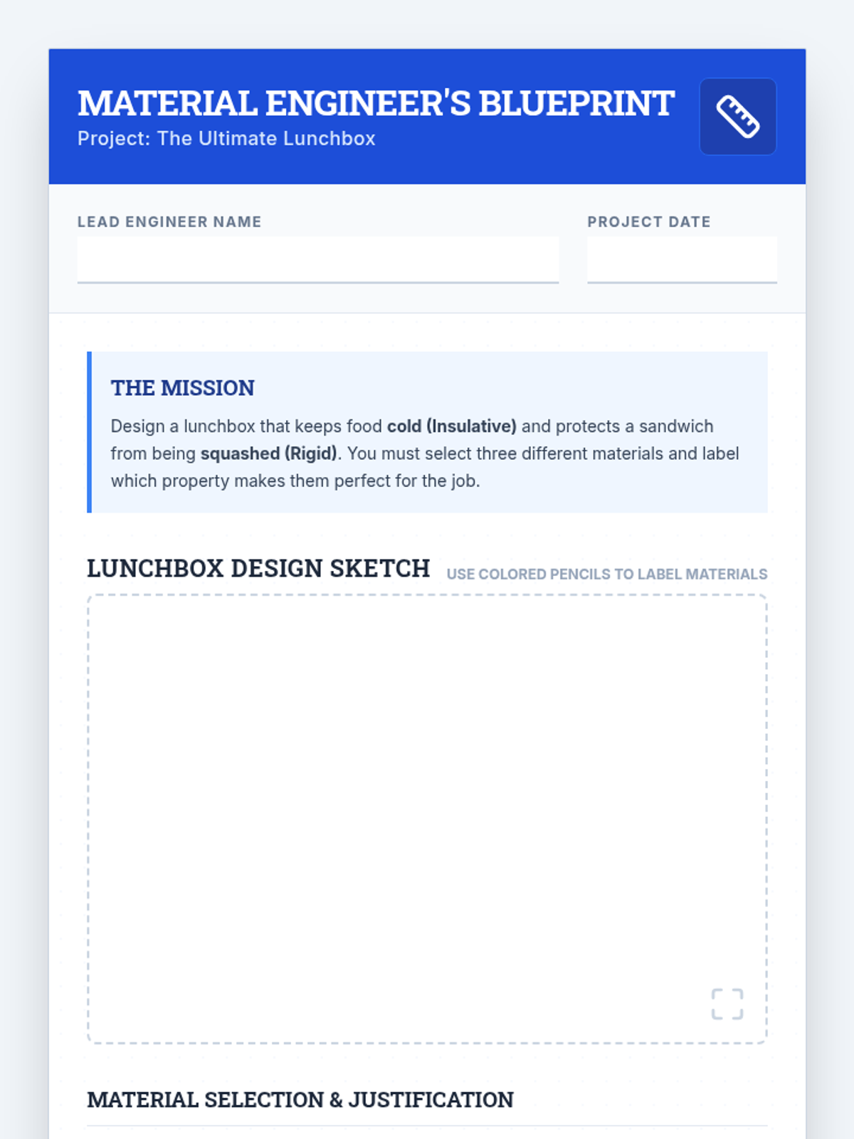 Students explore how the physical properties of substances inform engineering decisions by designing a lunchbox that balances insulation, rigidity, and weight.