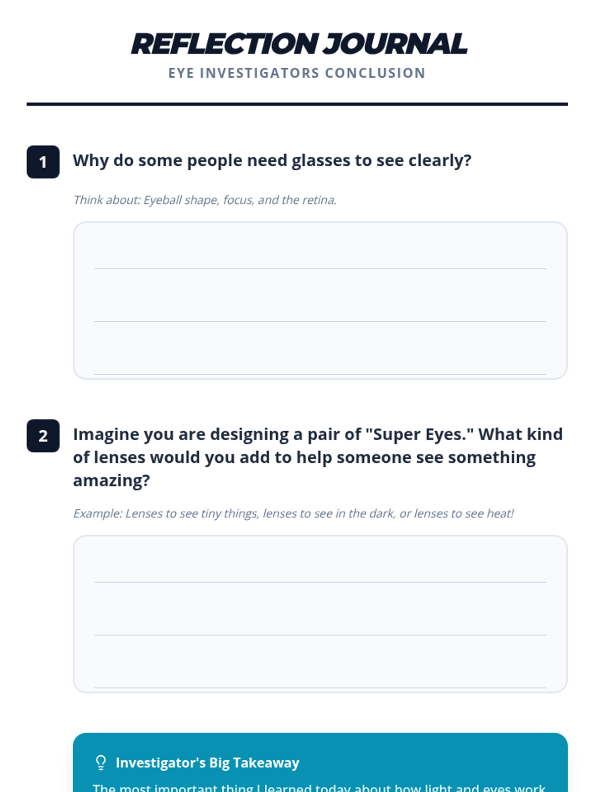 Students investigate the properties of reflectivity and transparency by testing various materials with flashlights, culminating in an understanding of how matter interacts with light.