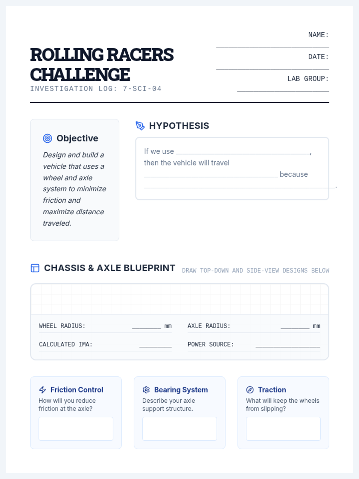 Students predict and test the rolling speeds of different geometric solids in a competitive lab environment, validating their theoretical models of rotational inertia.