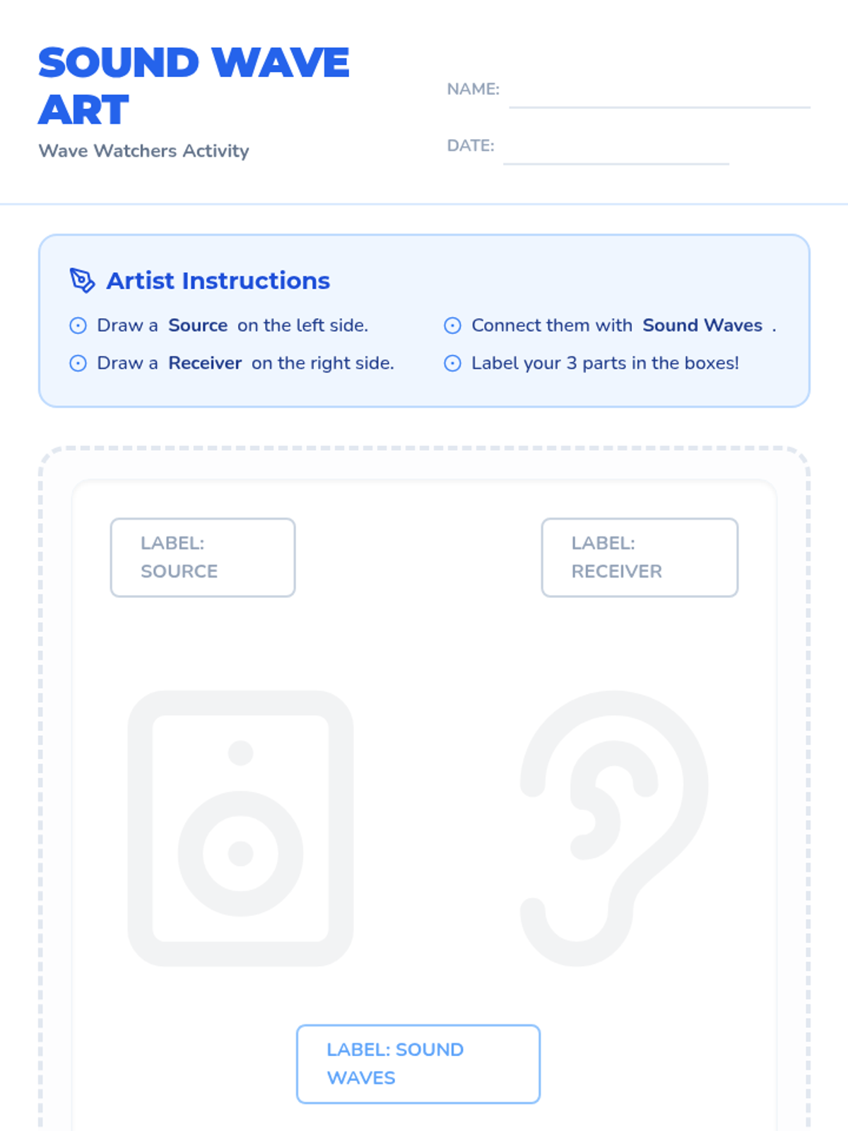 A visual science lesson for 2nd graders to understand how sound travels through air using the metaphor of water ripples and an animation-focused video. Students will create their own sound wave art to demonstrate their understanding of sources, waves, and receivers.