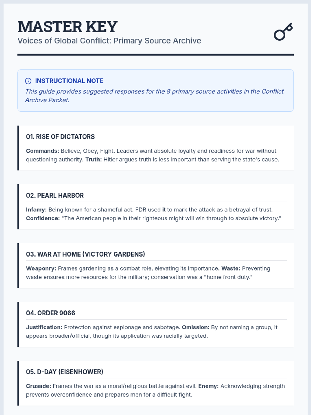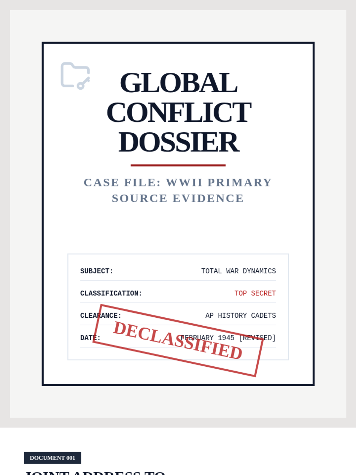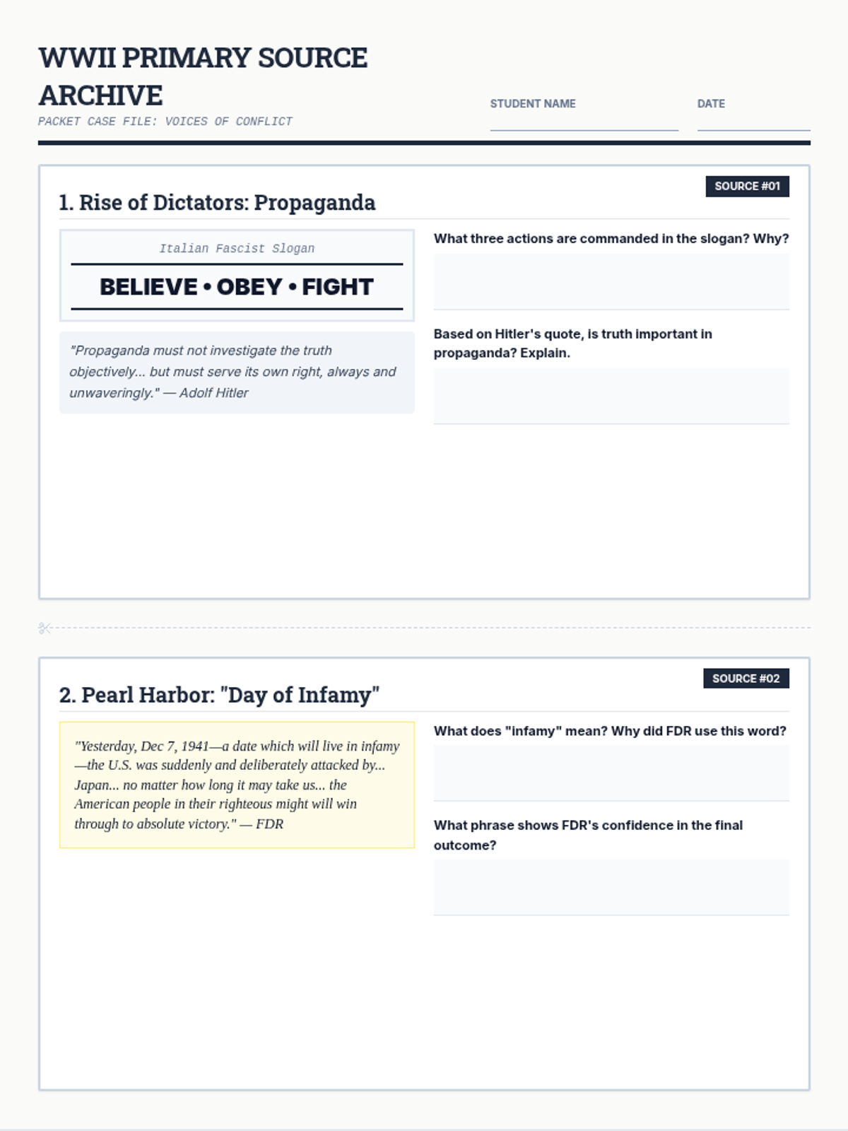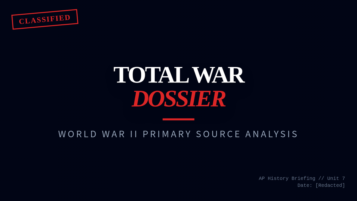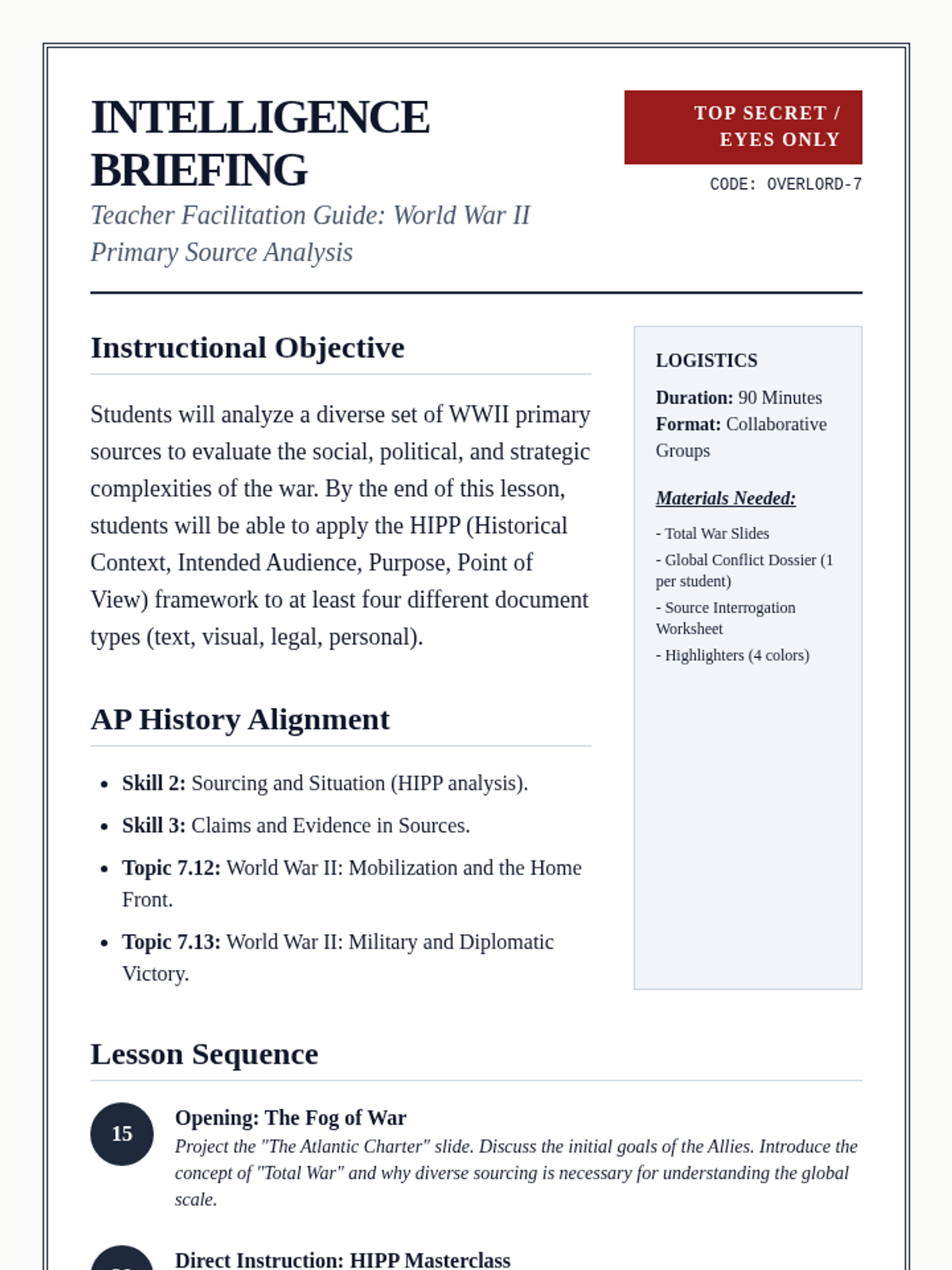 An intensive primary source analysis lesson for AP History students focusing on the diverse perspectives and global scale of WWII using the HIPP analysis framework.