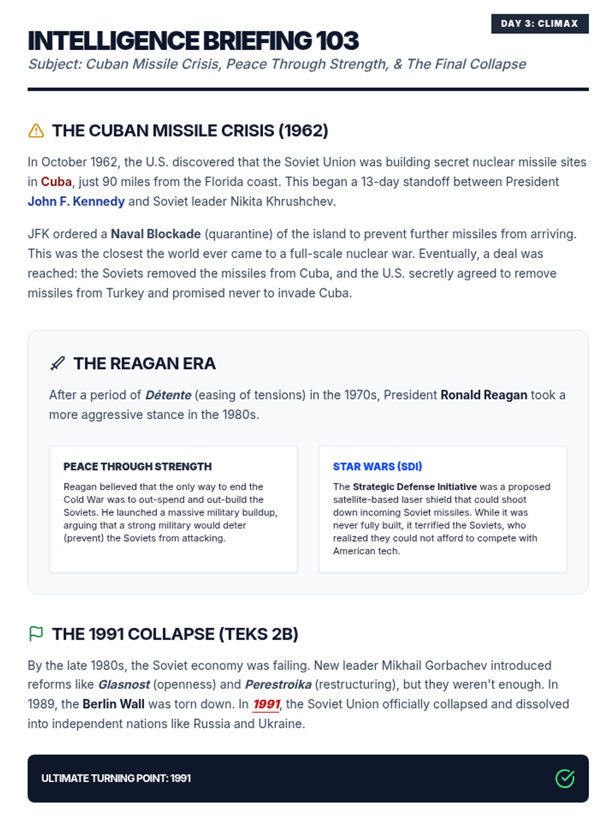 This lesson focuses on the critical role of active listening in historical diplomacy and oral history. Students investigate the Cuban Missile Crisis as a case study in effective listening and practice historical interviewing techniques.