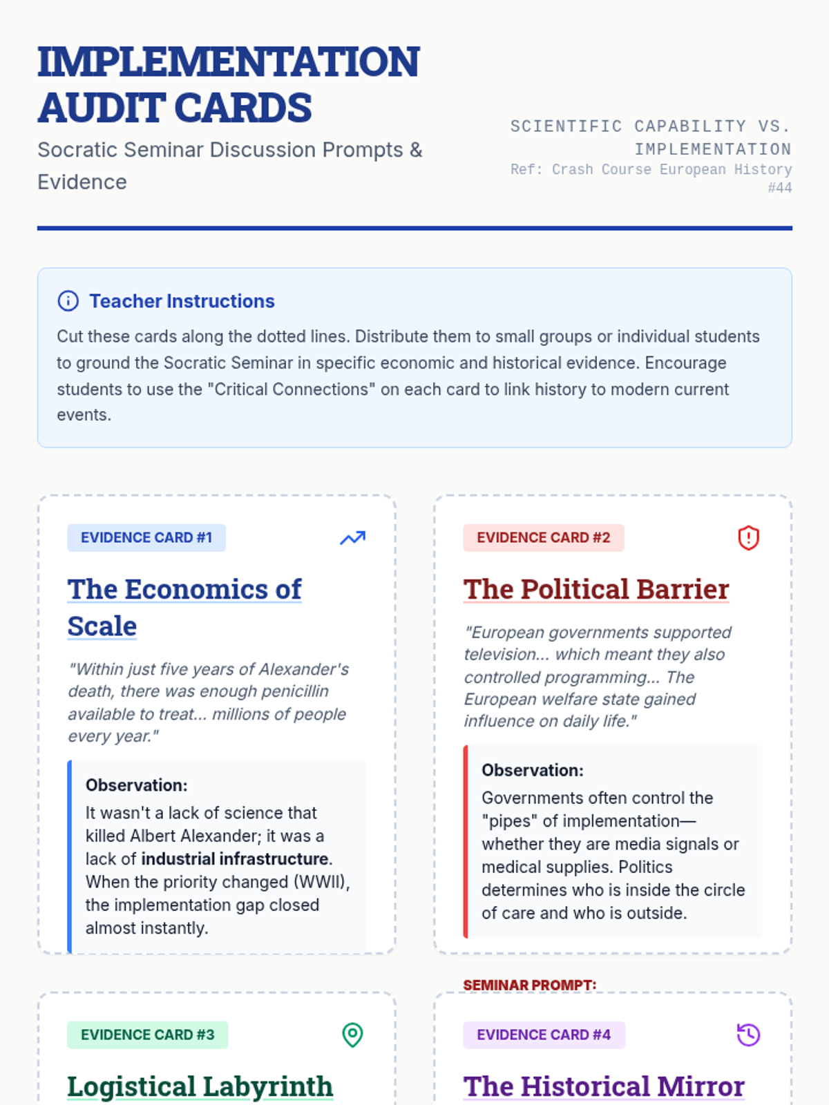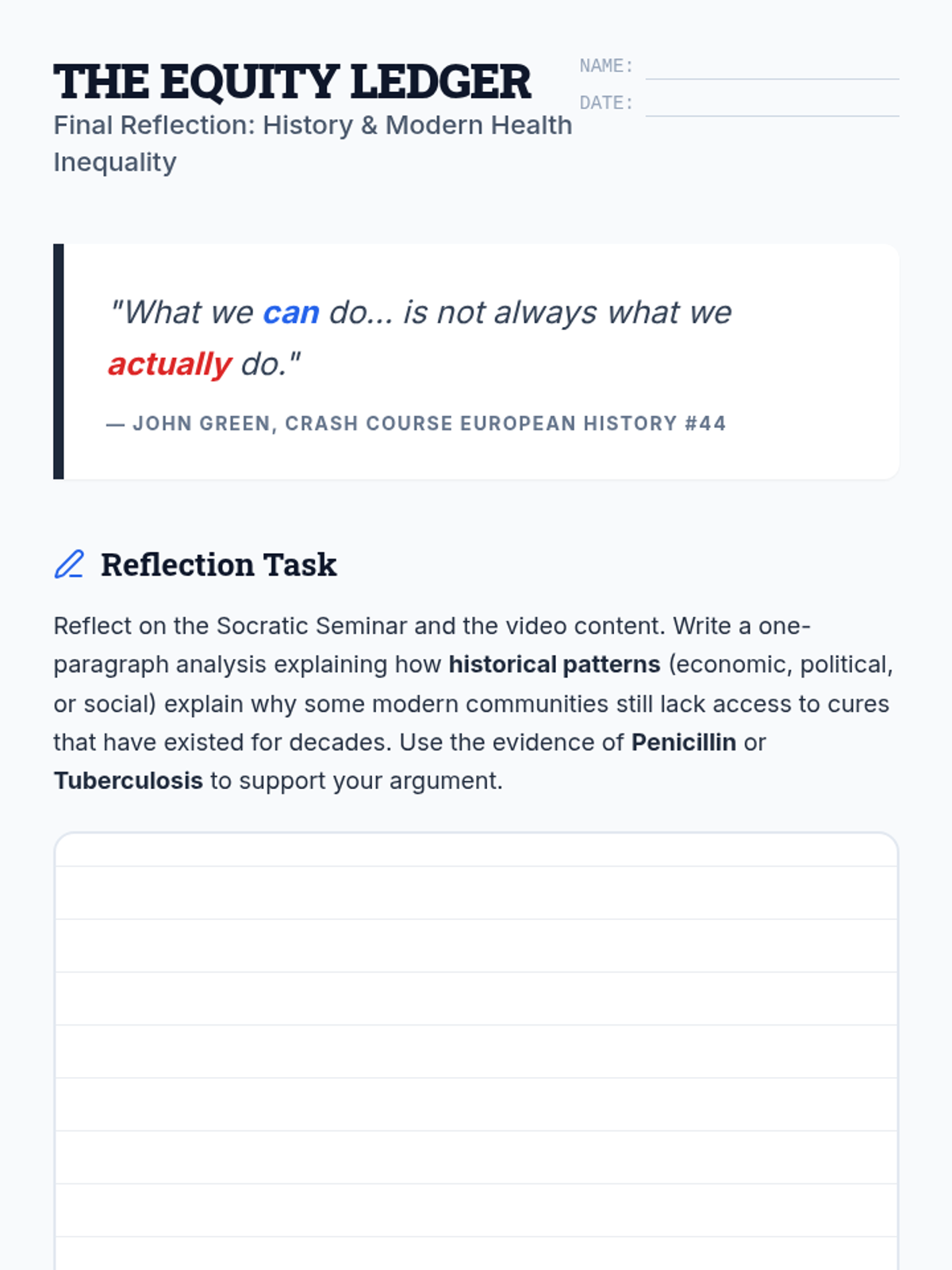 This lesson explores the gap between scientific discovery and its global implementation, focusing on the history of penicillin and modern tuberculosis statistics to analyze economic and political barriers to health equity.