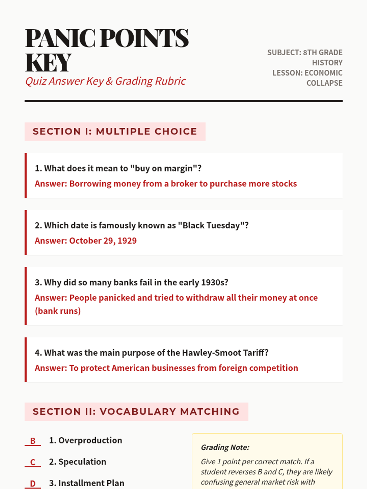 This lesson explores the causes and immediate impacts of the 1929 Stock Market Crash, helping students understand how the 'Roaring Twenties' ended in financial catastrophe.