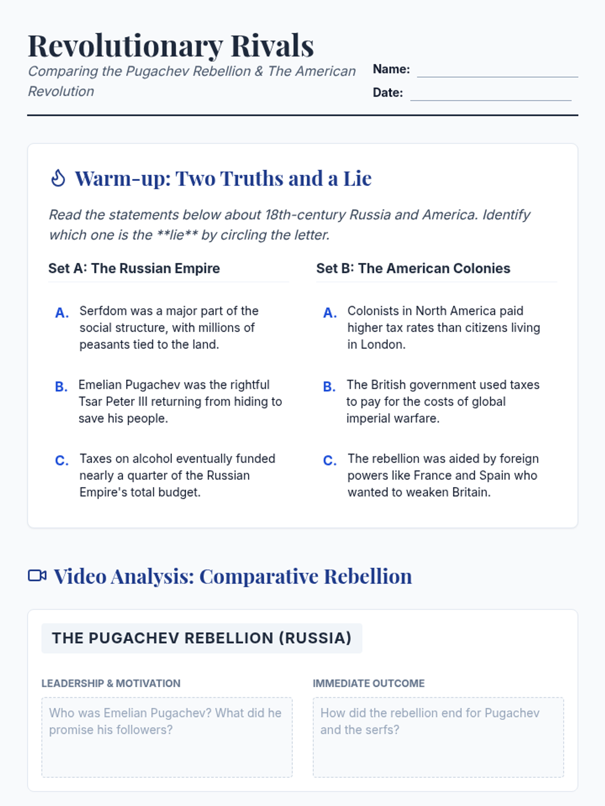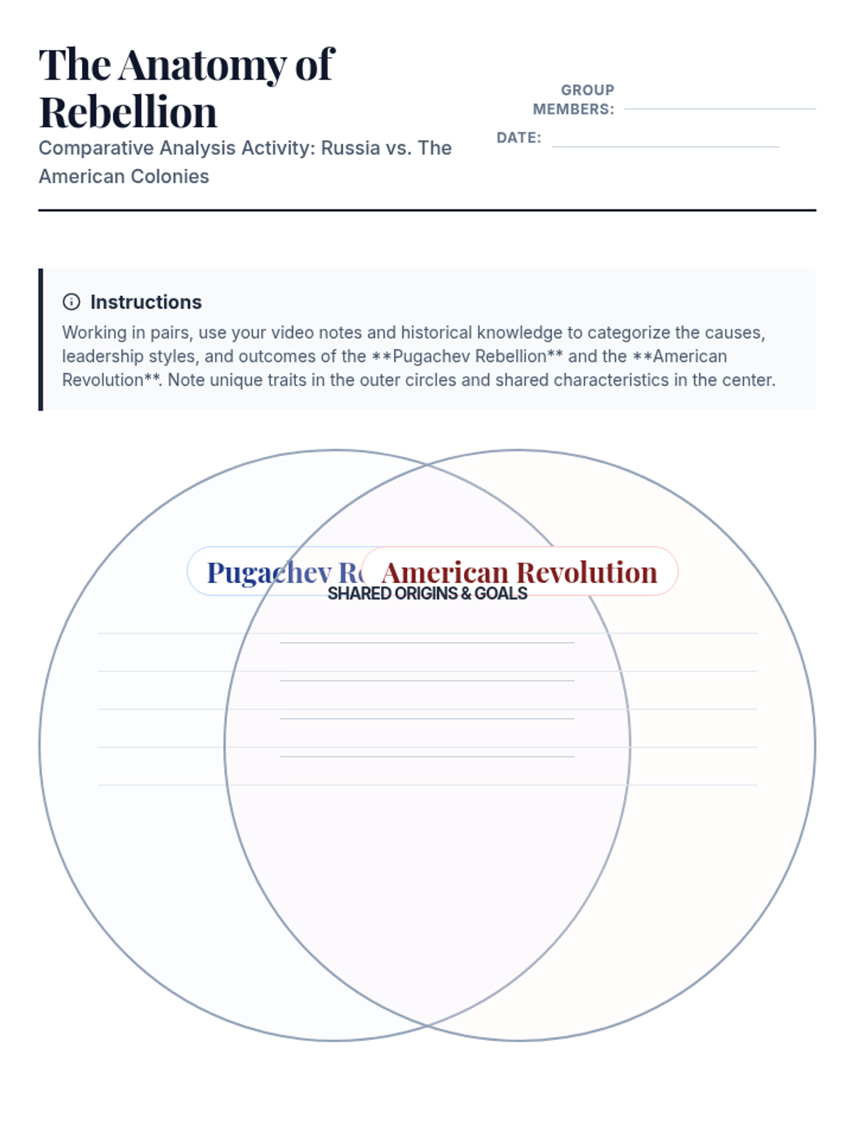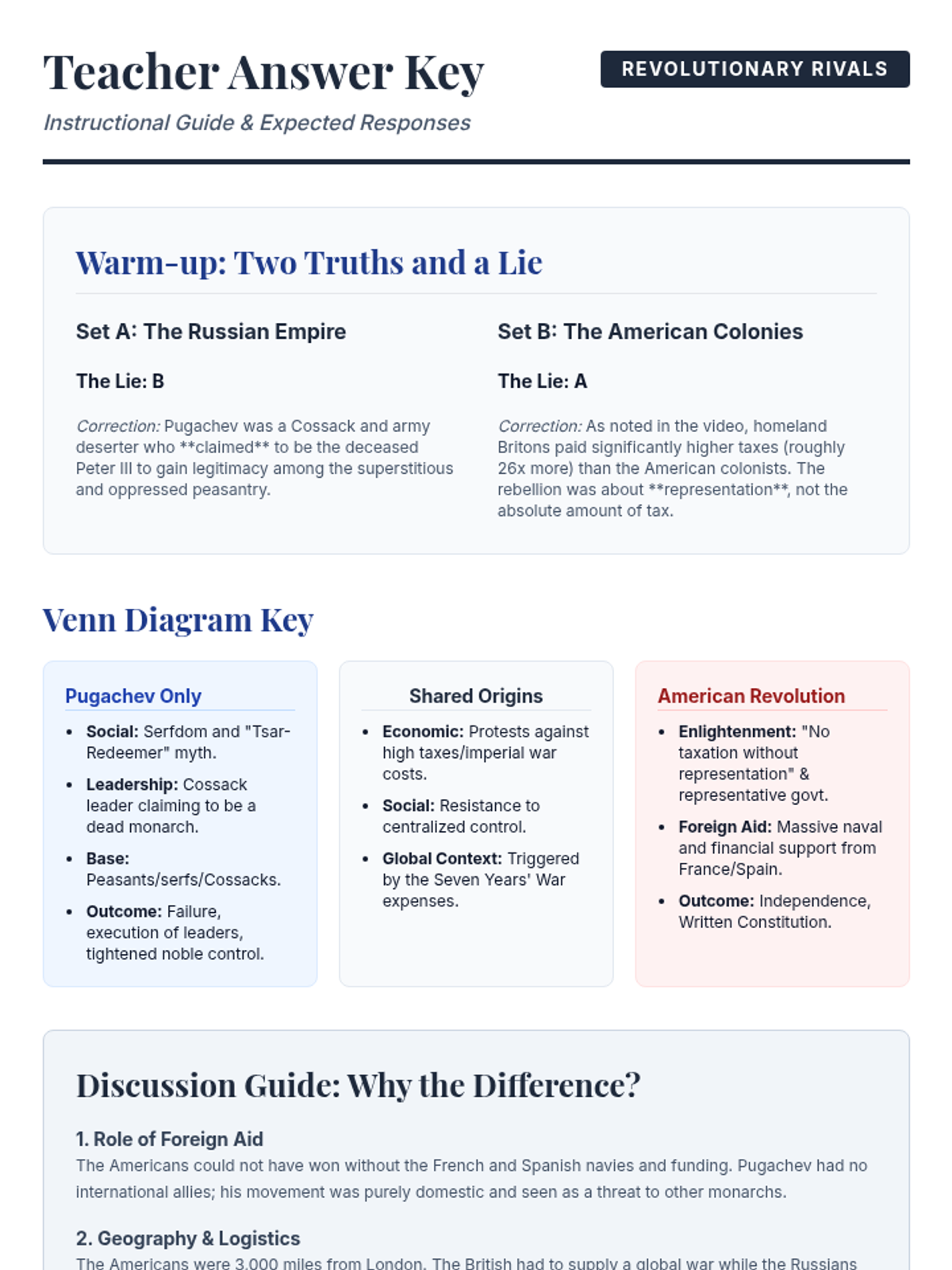 A comparative study of the 18th-century Pugachev Rebellion in Russia and the American Revolution, exploring how imperial taxation and local grievances led to vastly different outcomes.