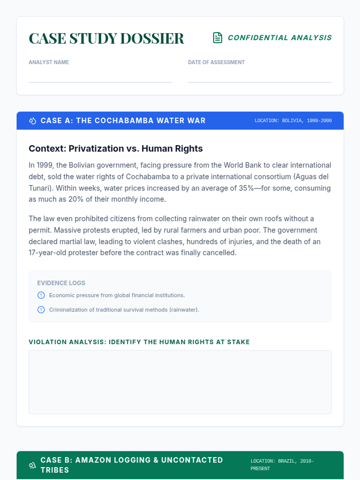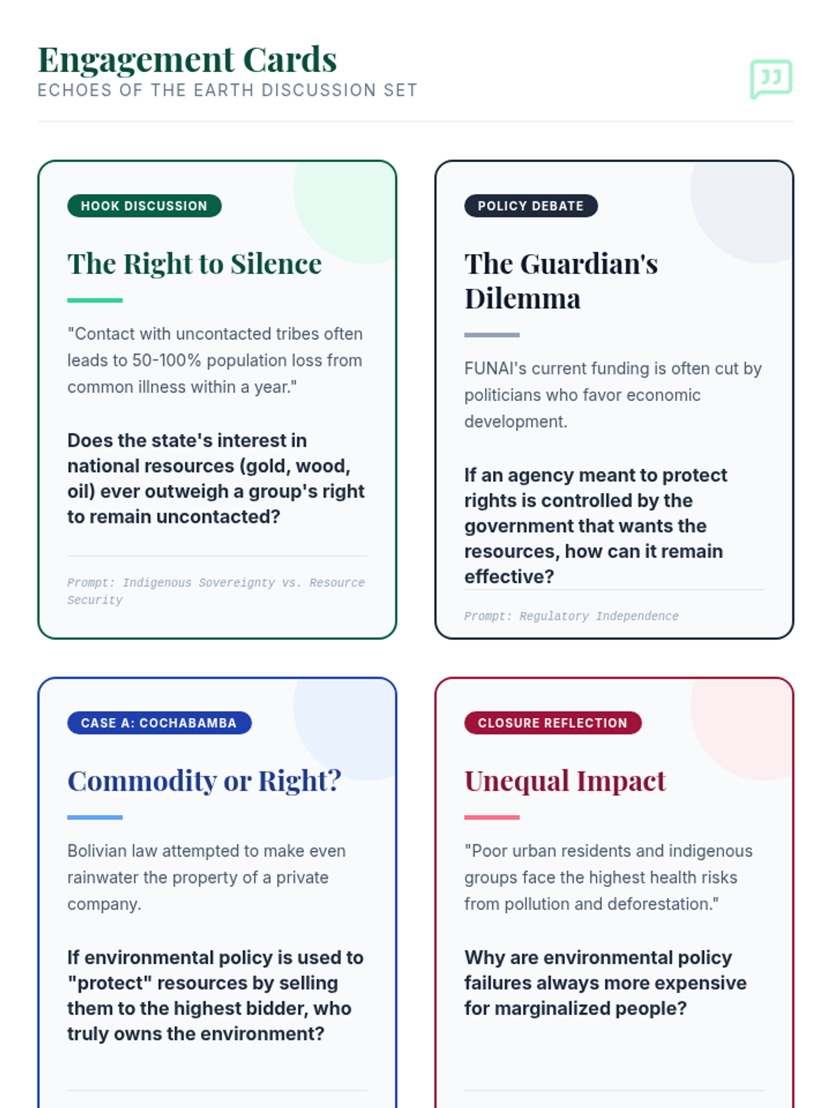 A high school civics/sociology lesson exploring the complex intersection of environmental protection, economic development, and indigenous sovereignty through the lens of Latin American case studies.