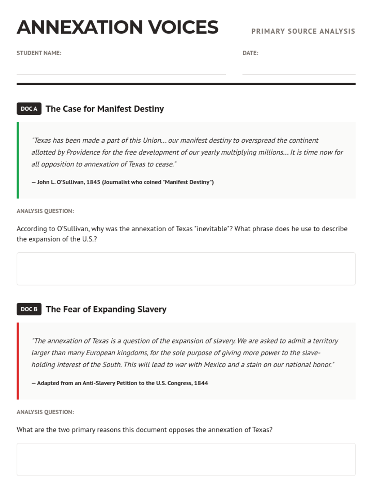 A lesson examining the expansion of the United States in the 1850s and the growing conflict over whether new territories should allow slavery. Students will explore how westward expansion pushed the country toward a breaking point.