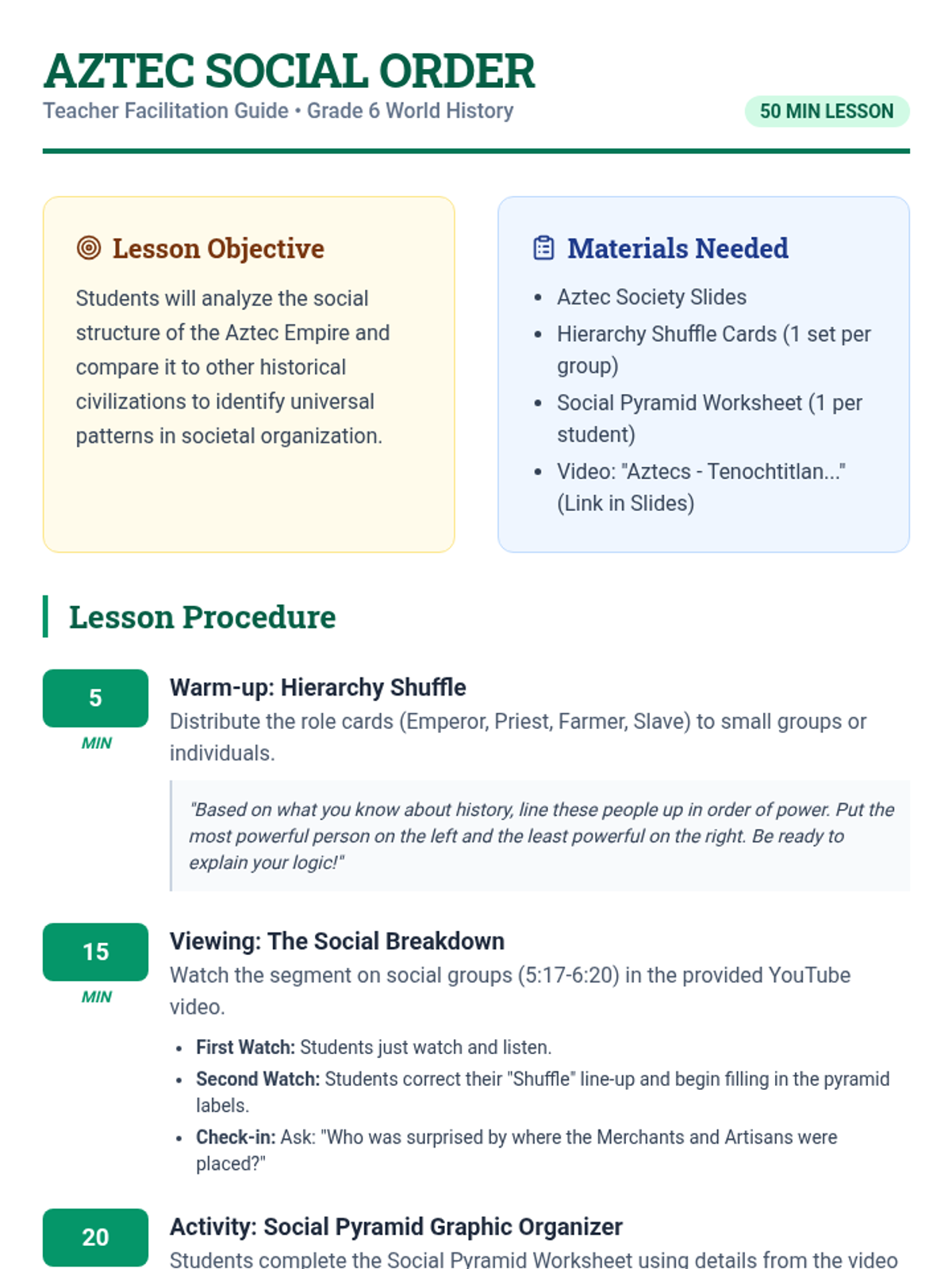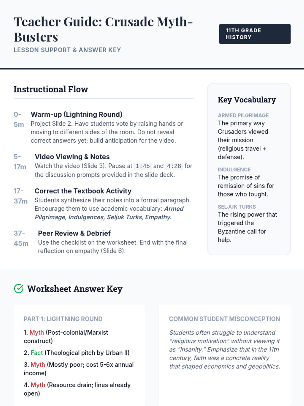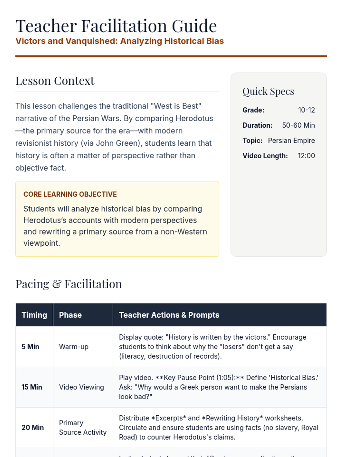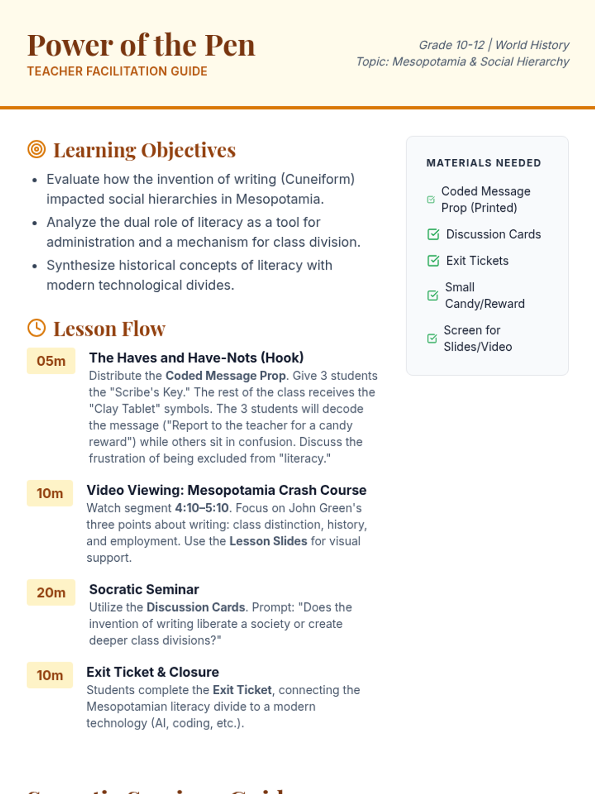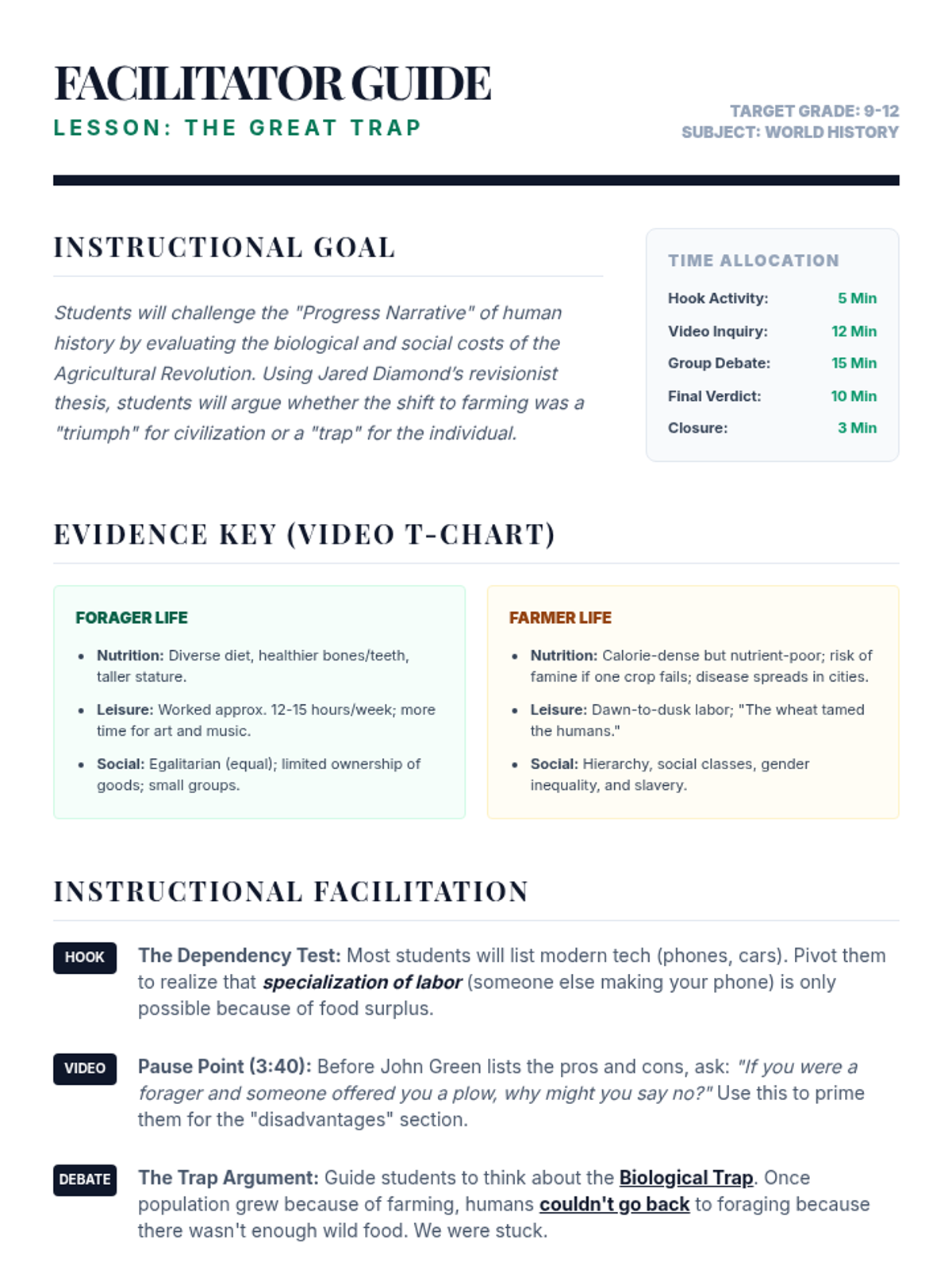 Students will practice historical thinking by identifying and debunking common misconceptions about Ancient Egypt using evidence from John Green's Crash Course World History. The lesson culminates in a creative 'Fact-Check Campaign' where students design posters to correct historical myths.