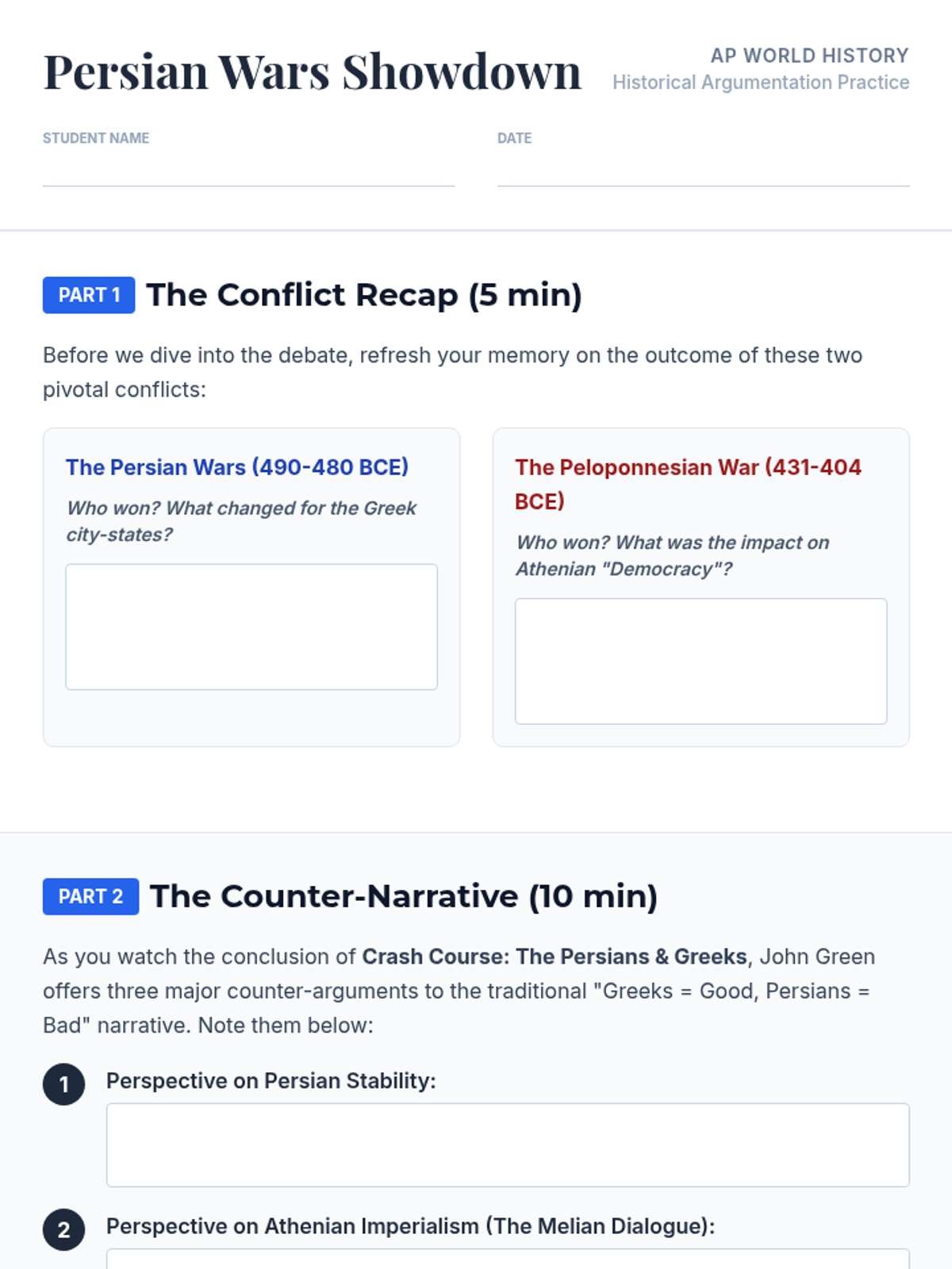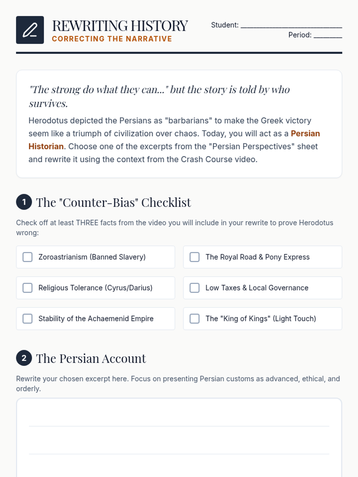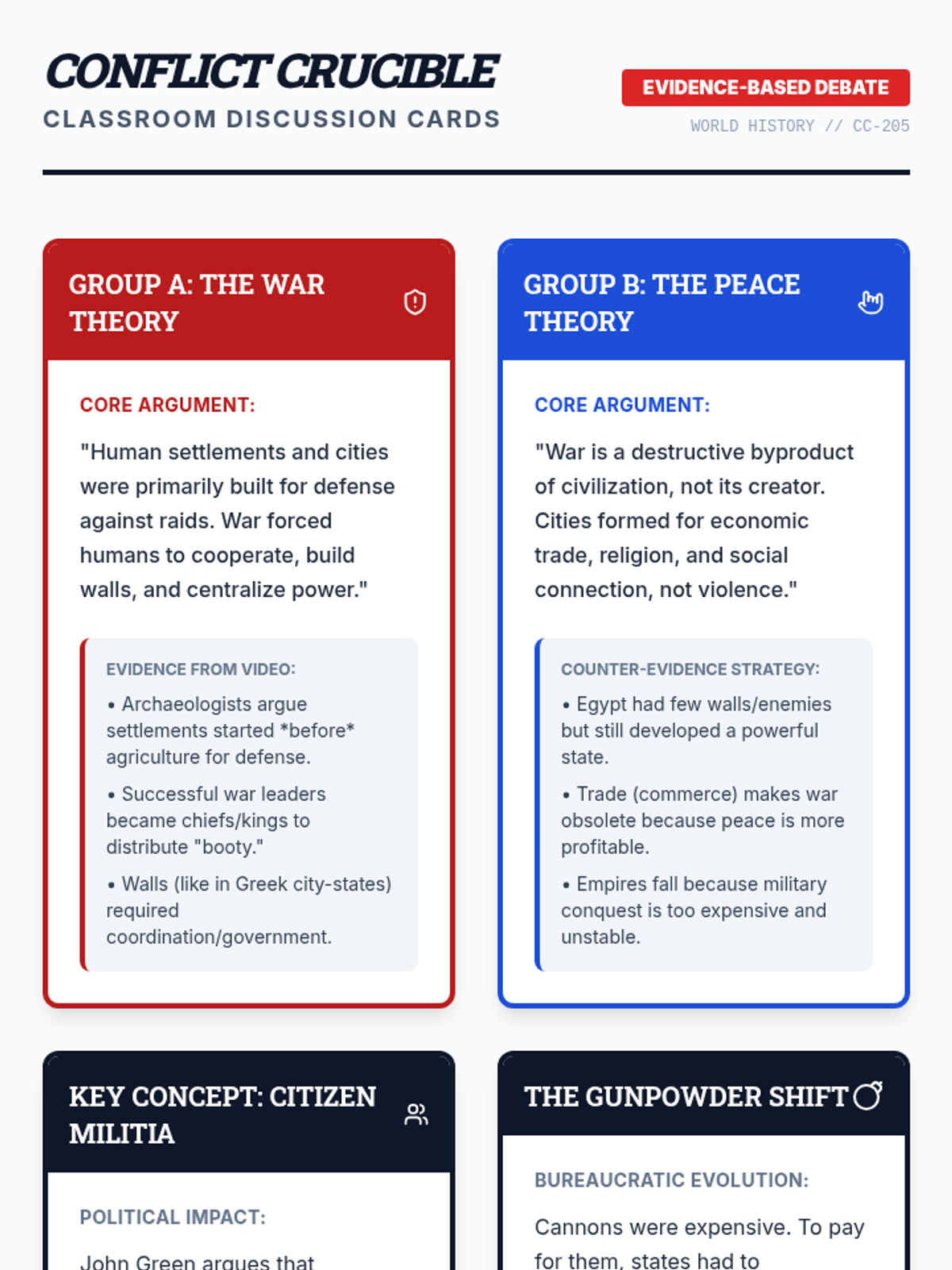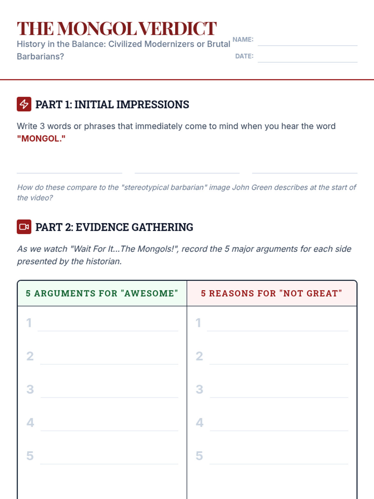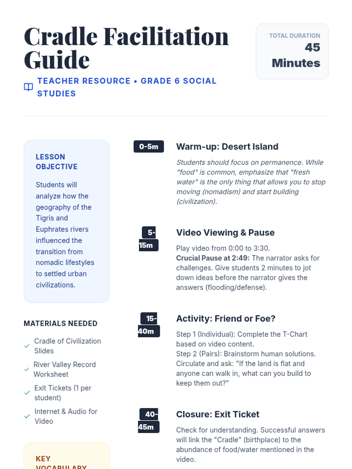 Students will practice historical thinking by identifying and debunking common misconceptions about Ancient Egypt using evidence from John Green's Crash Course World History. The lesson culminates in a creative 'Fact-Check Campaign' where students design posters to correct historical myths.