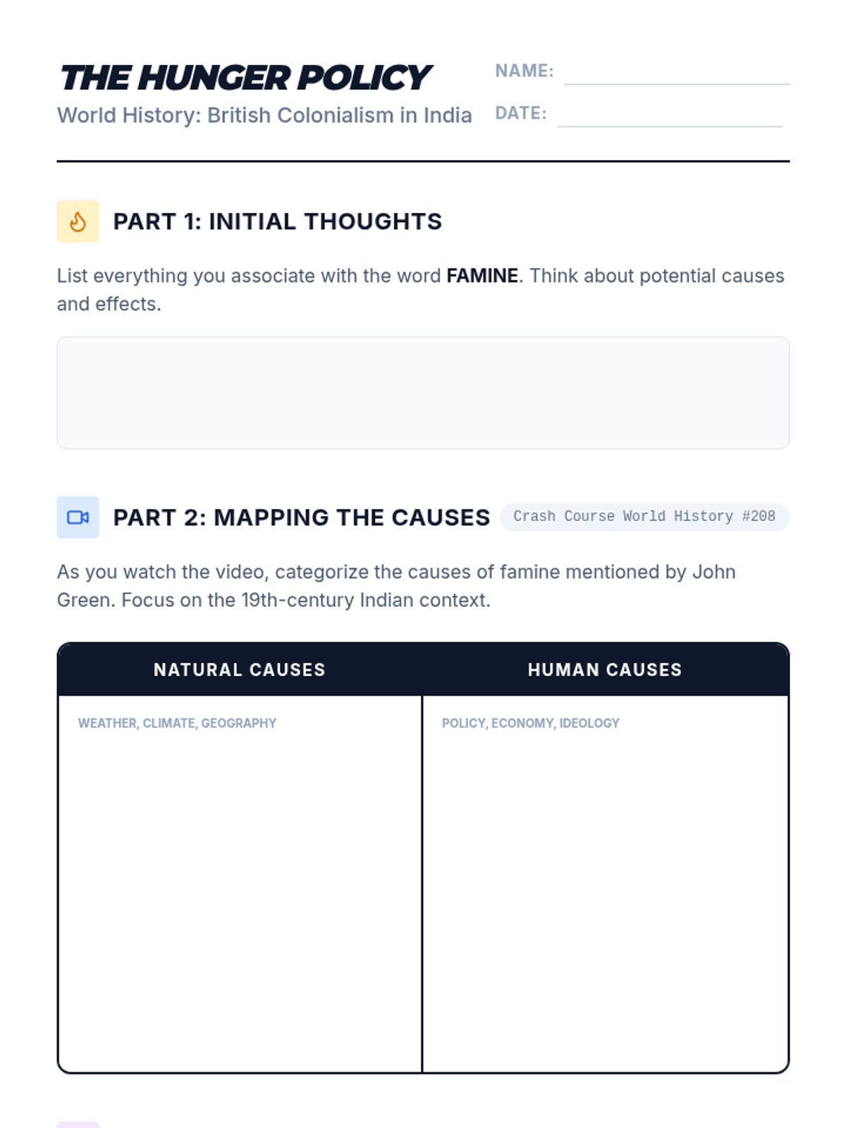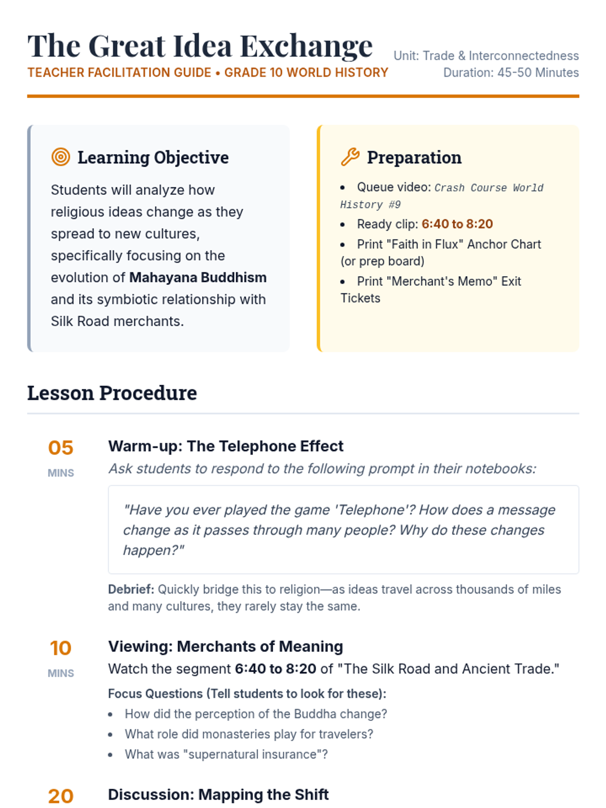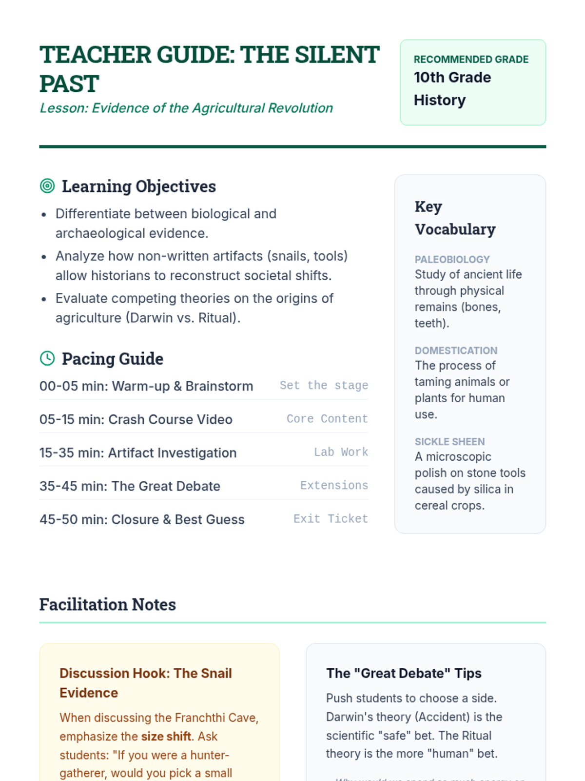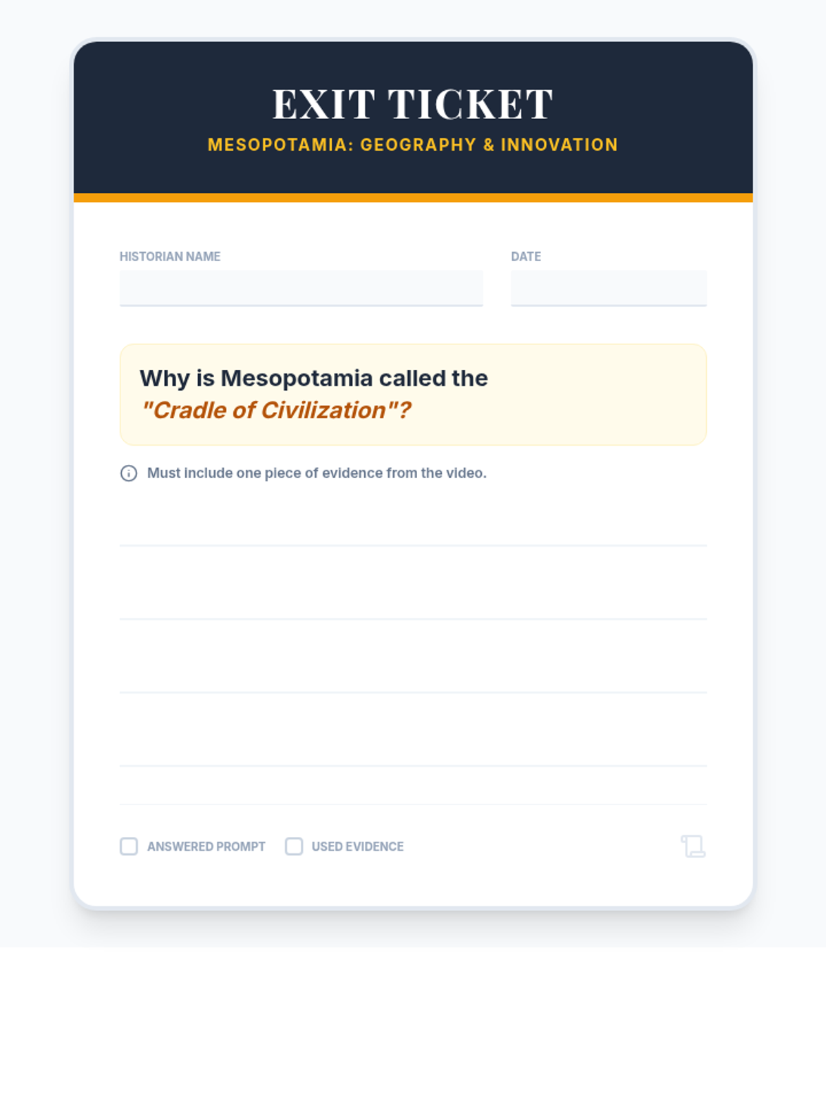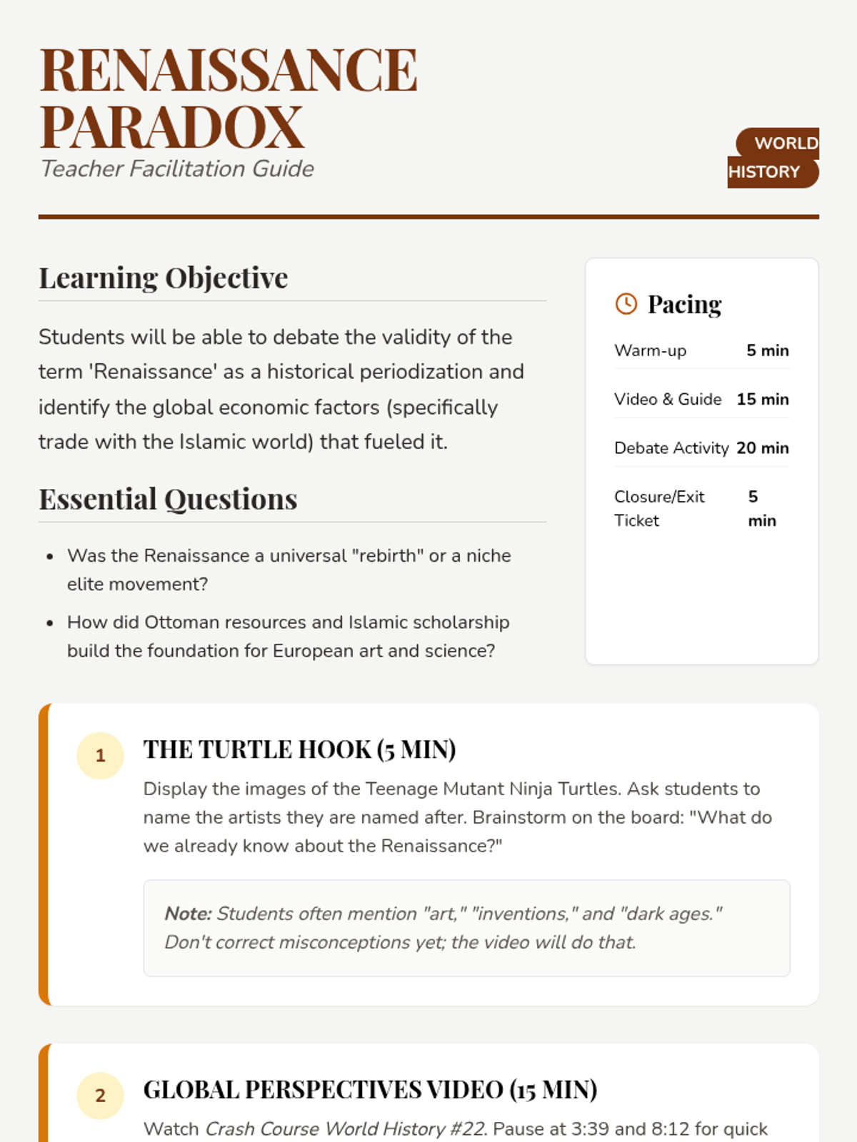 Students will practice historical thinking by identifying and debunking common misconceptions about Ancient Egypt using evidence from John Green's Crash Course World History. The lesson culminates in a creative 'Fact-Check Campaign' where students design posters to correct historical myths.