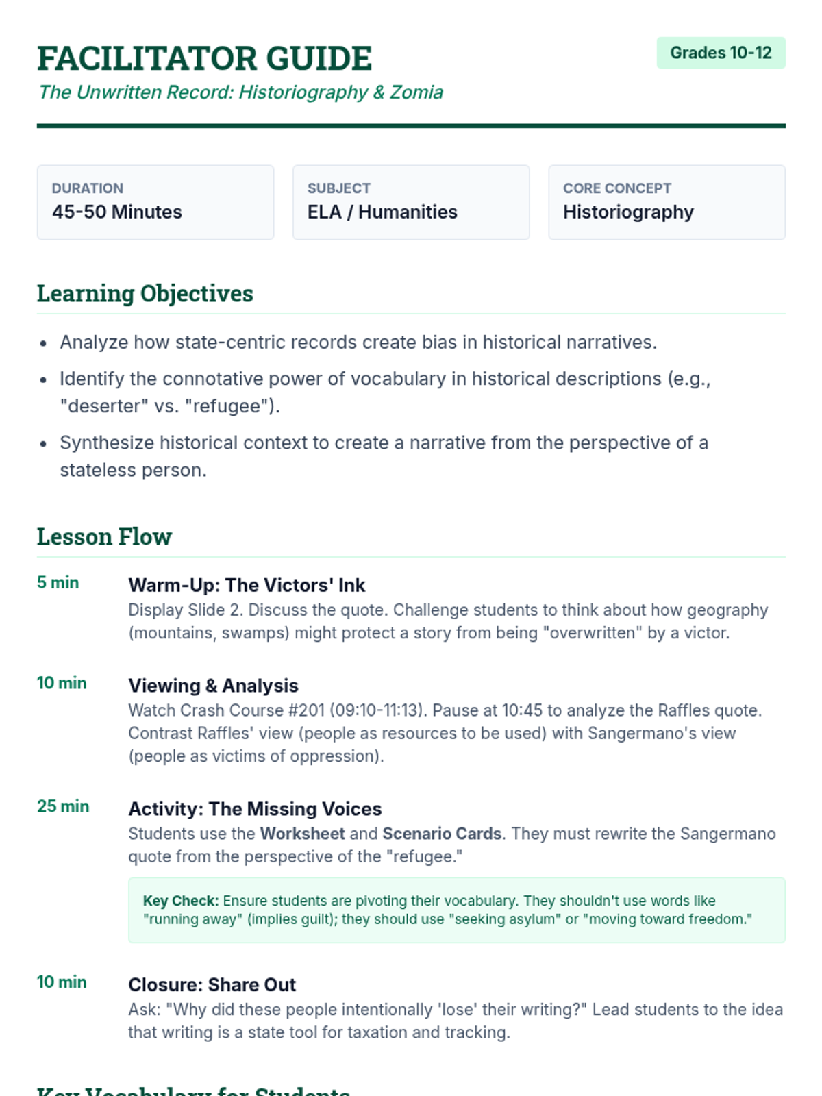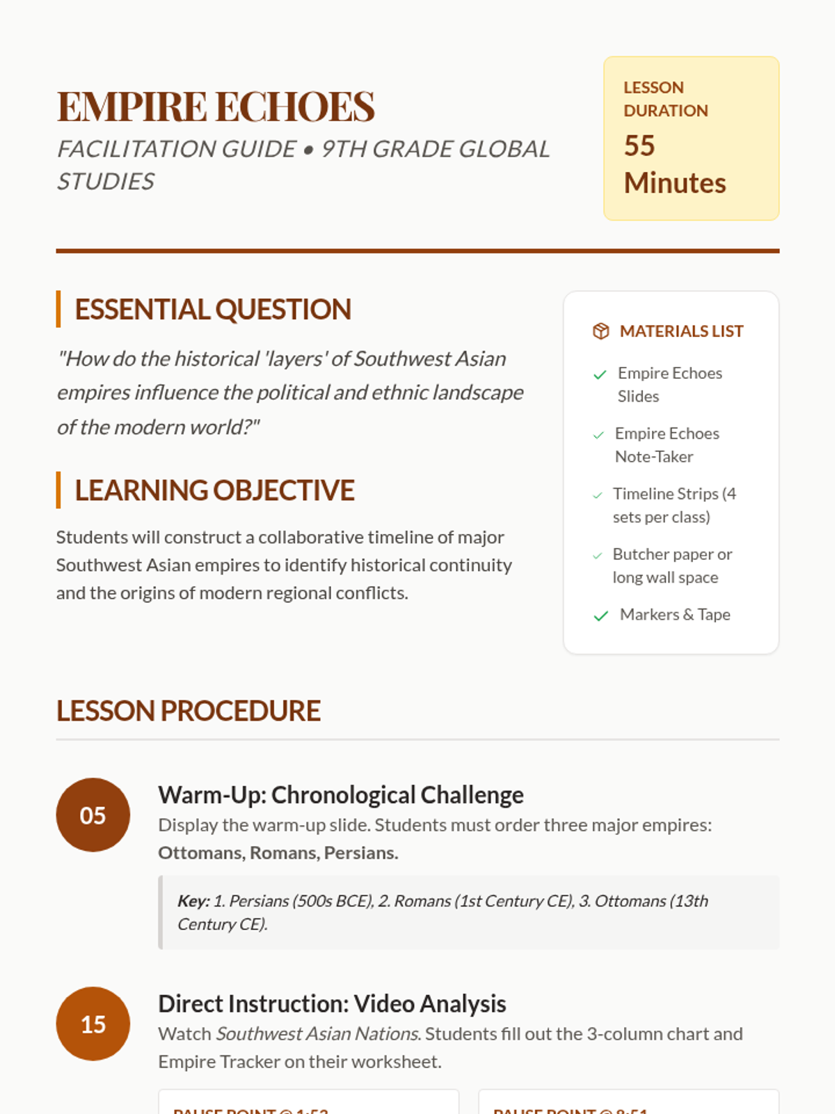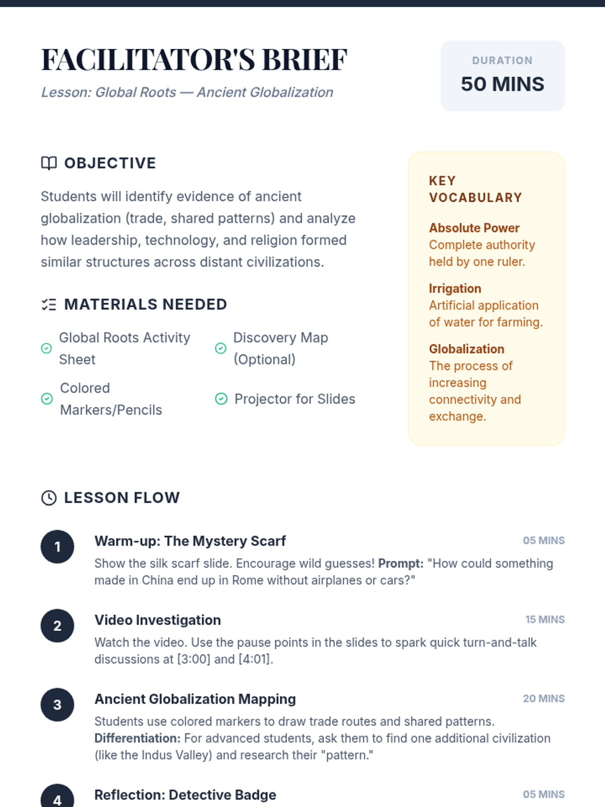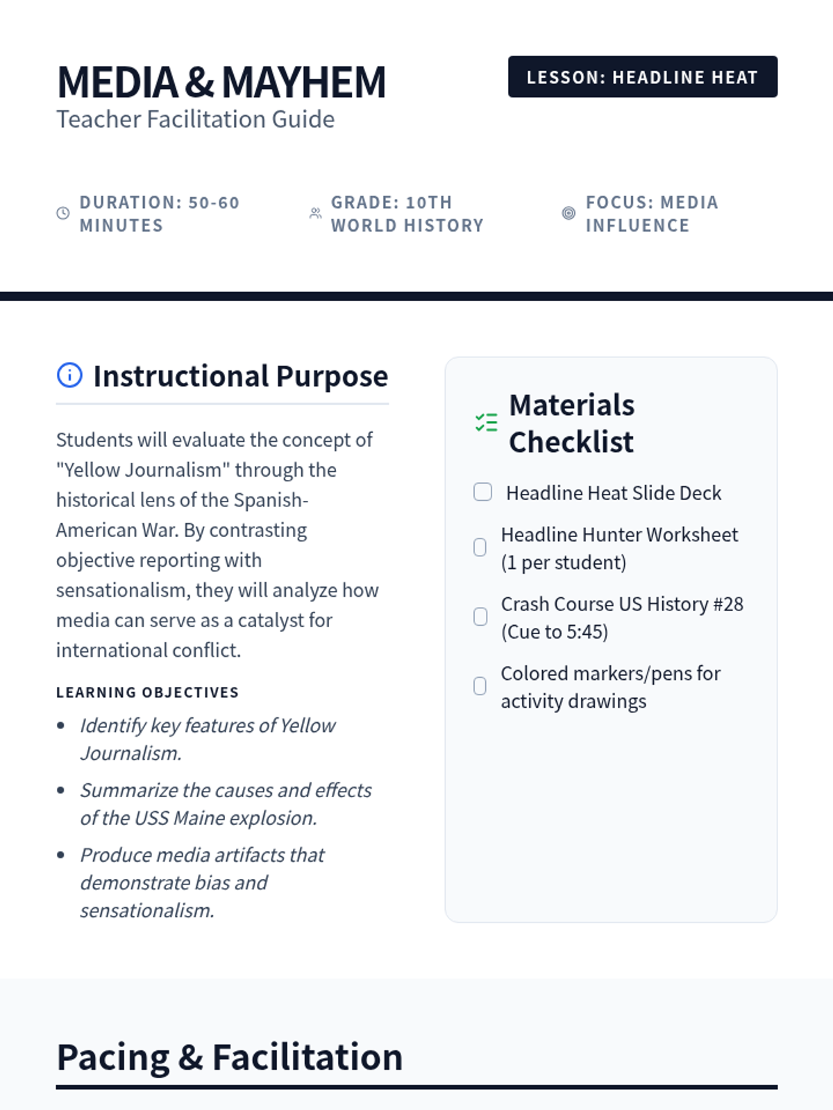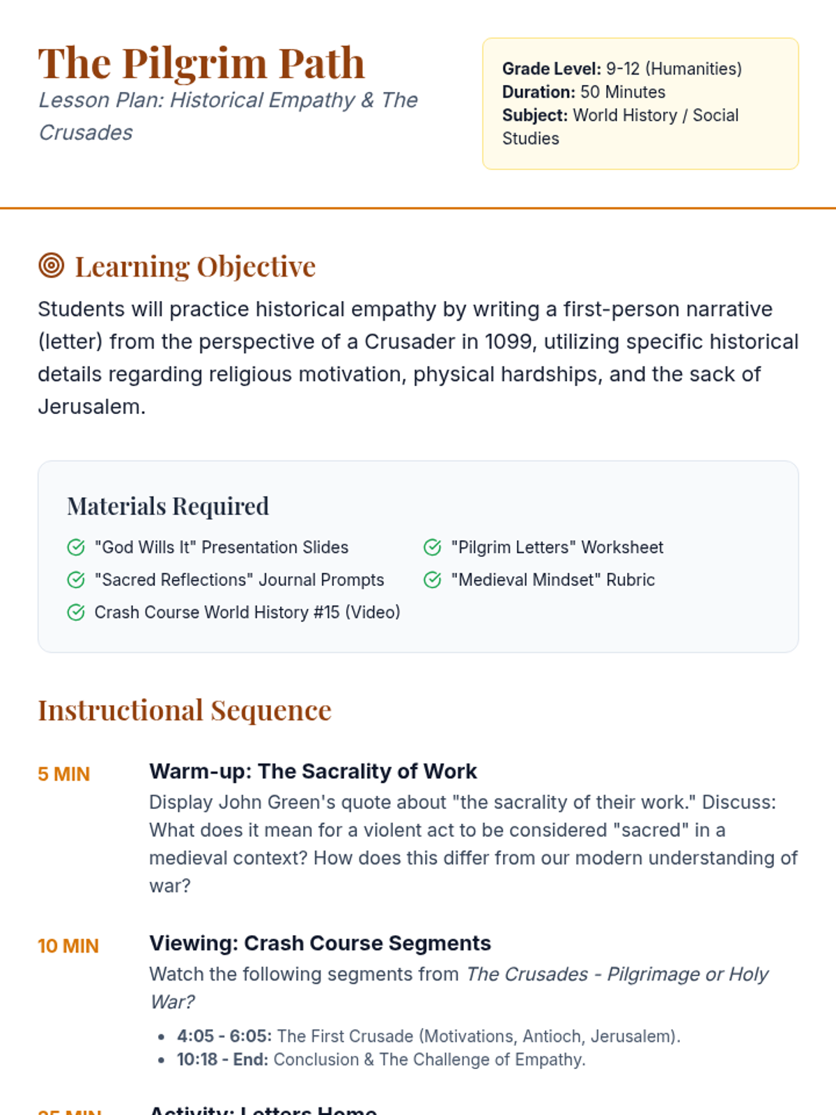 Students will practice historical thinking by identifying and debunking common misconceptions about Ancient Egypt using evidence from John Green's Crash Course World History. The lesson culminates in a creative 'Fact-Check Campaign' where students design posters to correct historical myths.