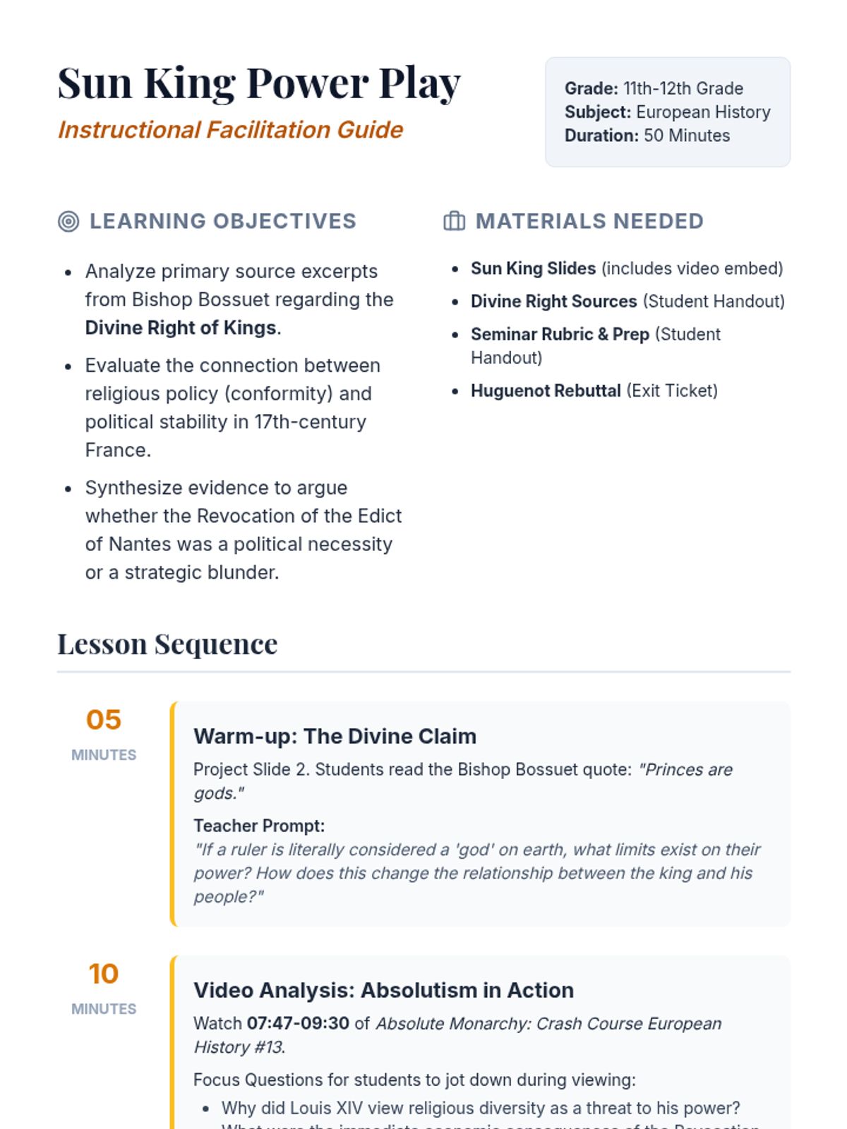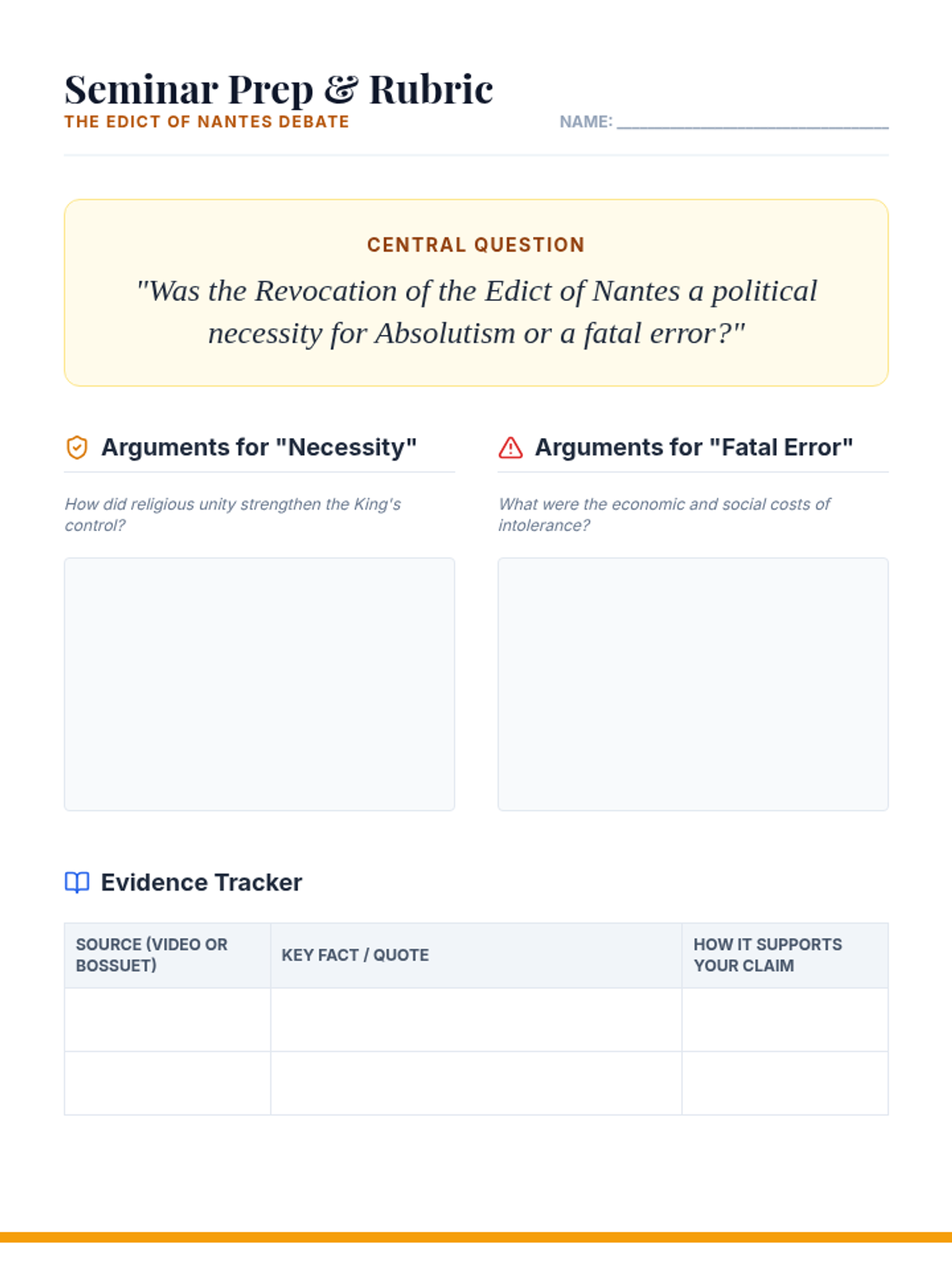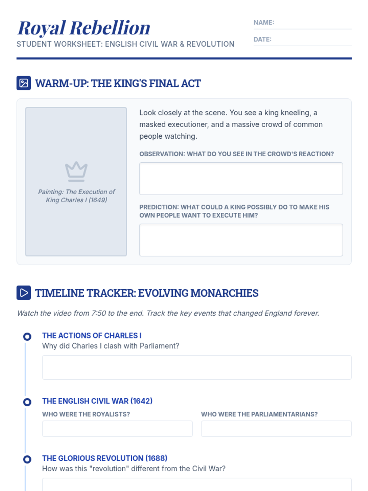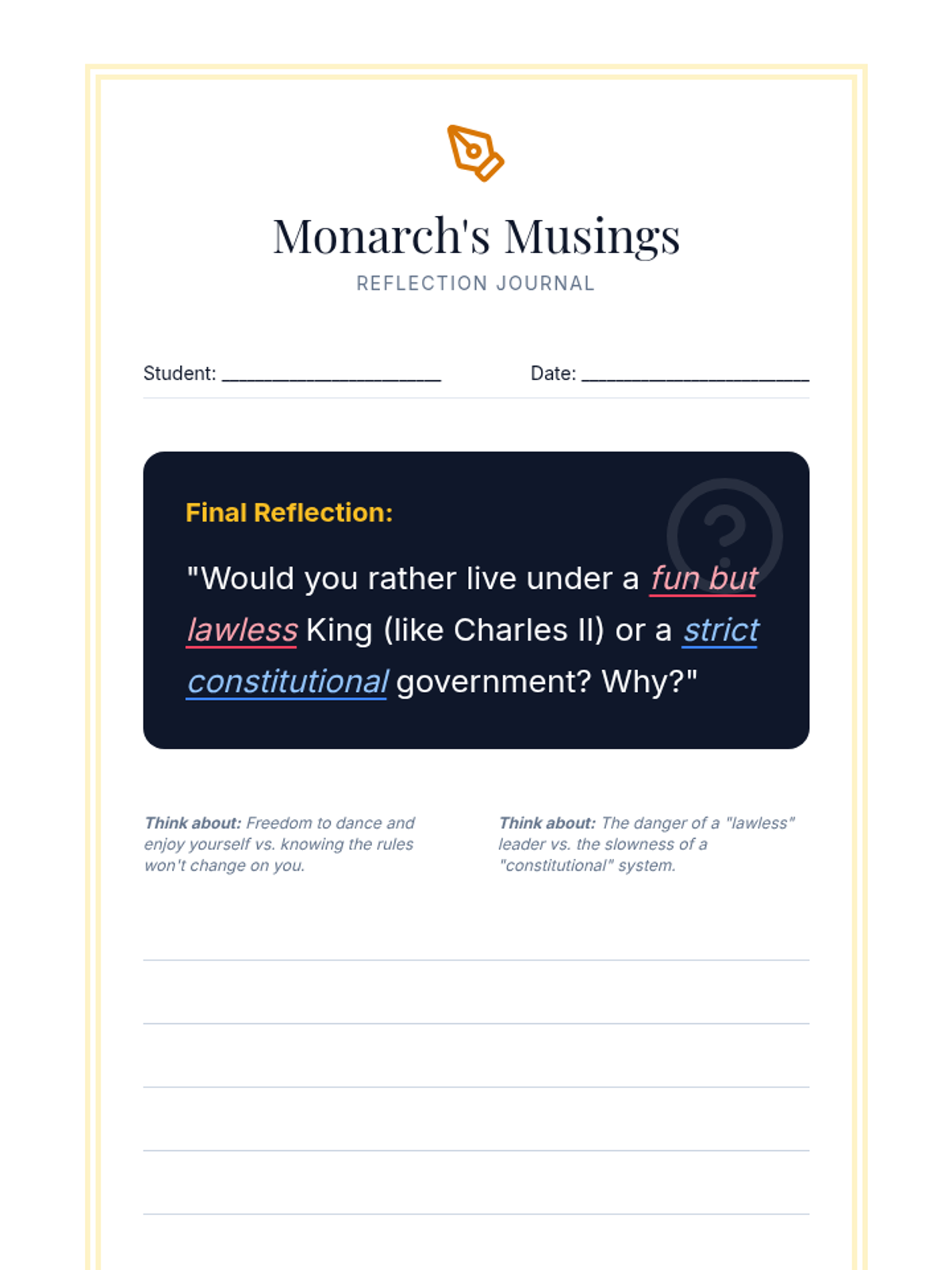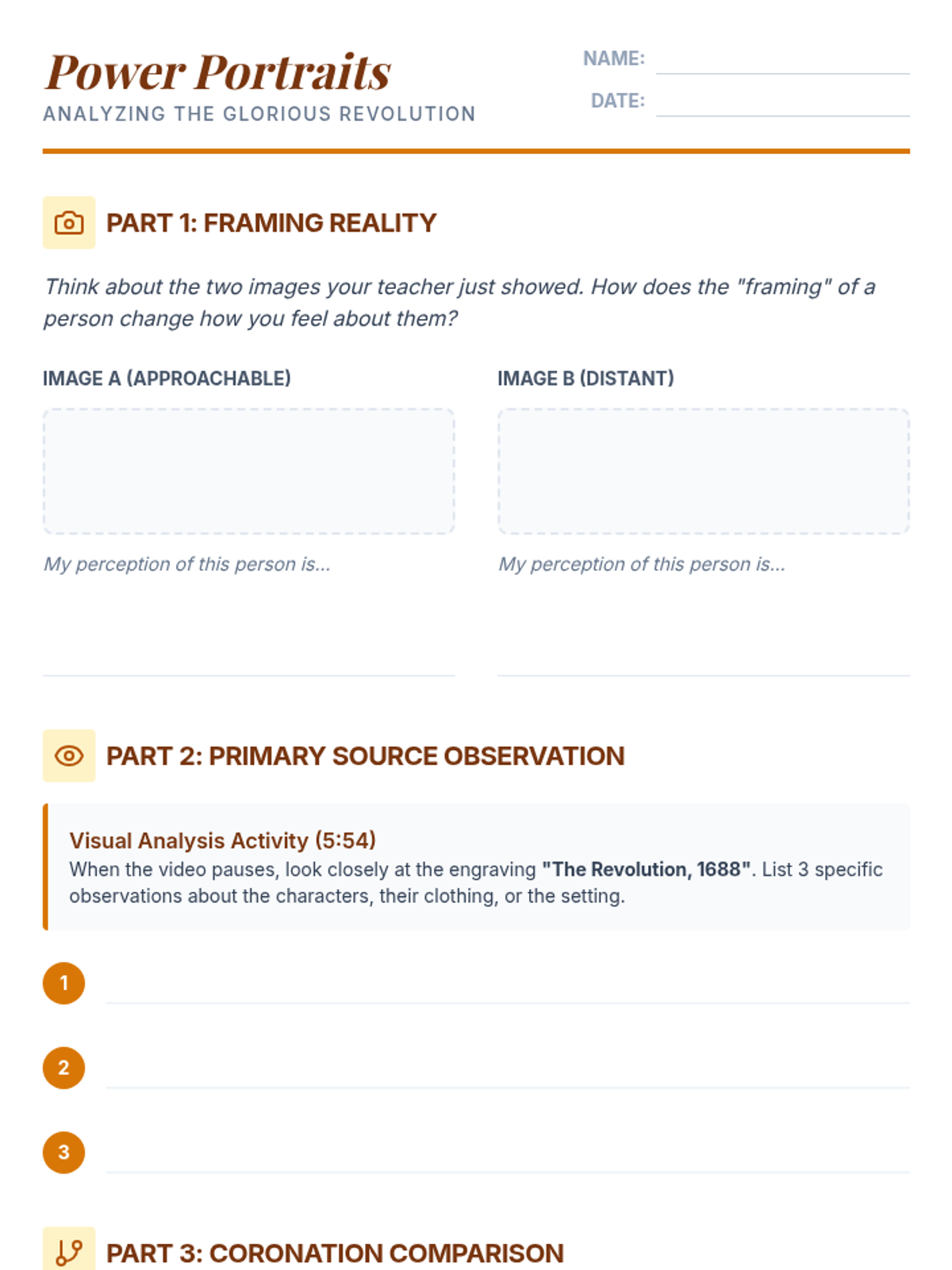 Students investigate the intersection of religion and politics during the Glorious Revolution. They analyze the reign of James II through a risk-assessment simulation, deciding whether his Catholic faith constituted a personal choice or a threat to English national security.