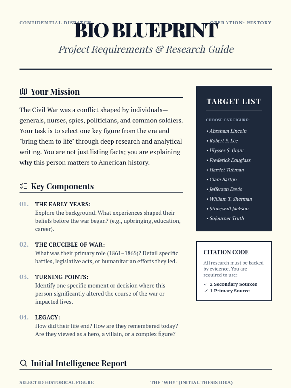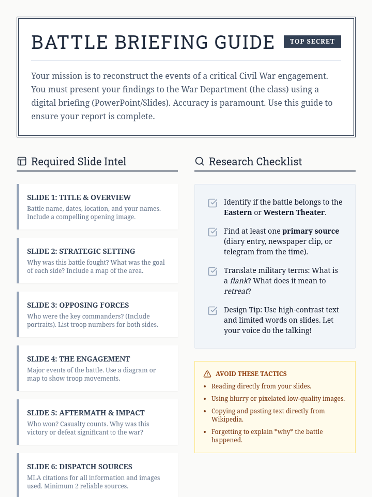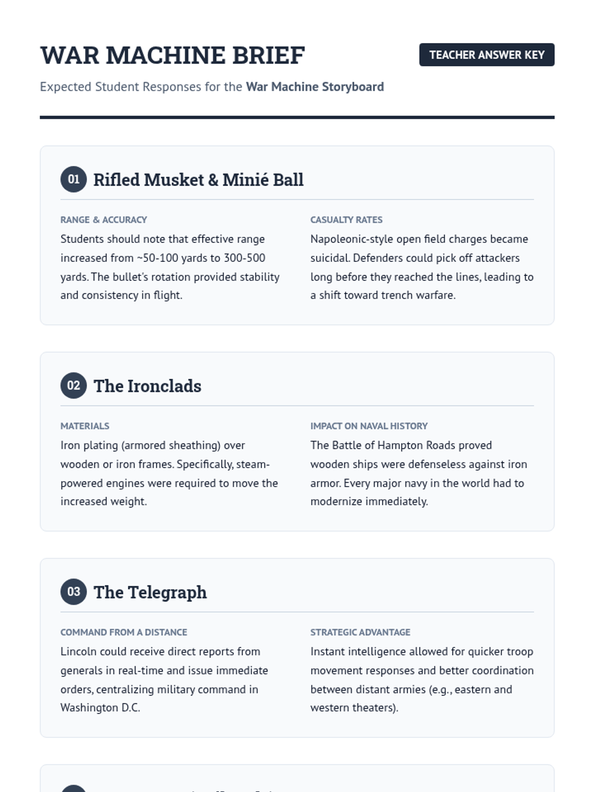 US Civil WarExamines secession origins, major military campaigns, and political leadership of the Union and Confederacy. Addresses the impact of the Emancipation Proclamation and early Reconstruction efforts.