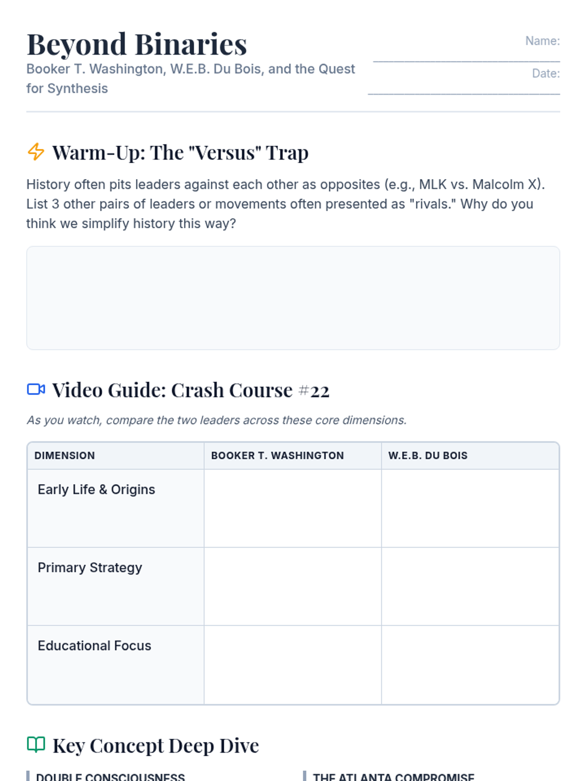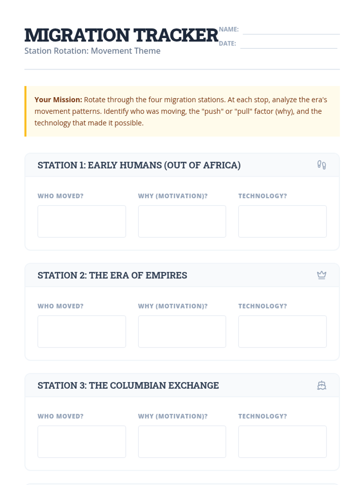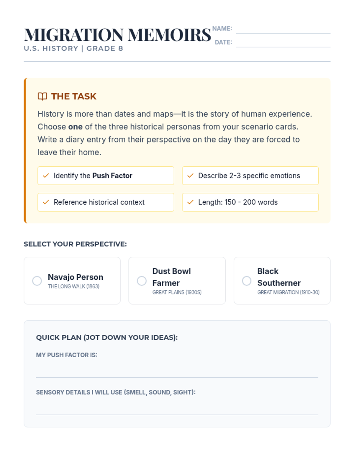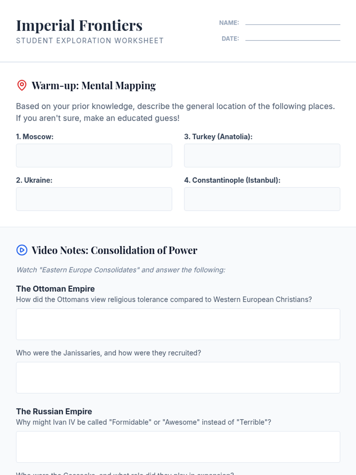 A comprehensive lesson on U.S. territorial expansion from 1783 to 1853, covering the methods of acquisition (purchase, war, treaty) and the human impact of migration. Includes a video-guided mapping activity and a timeline construction challenge.