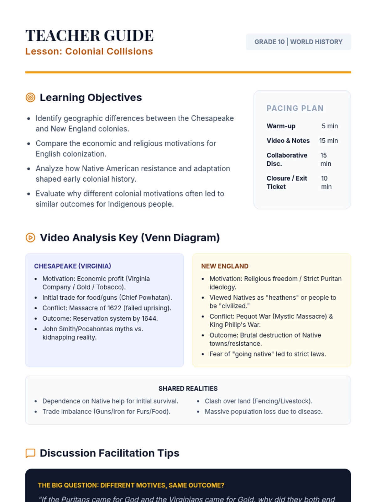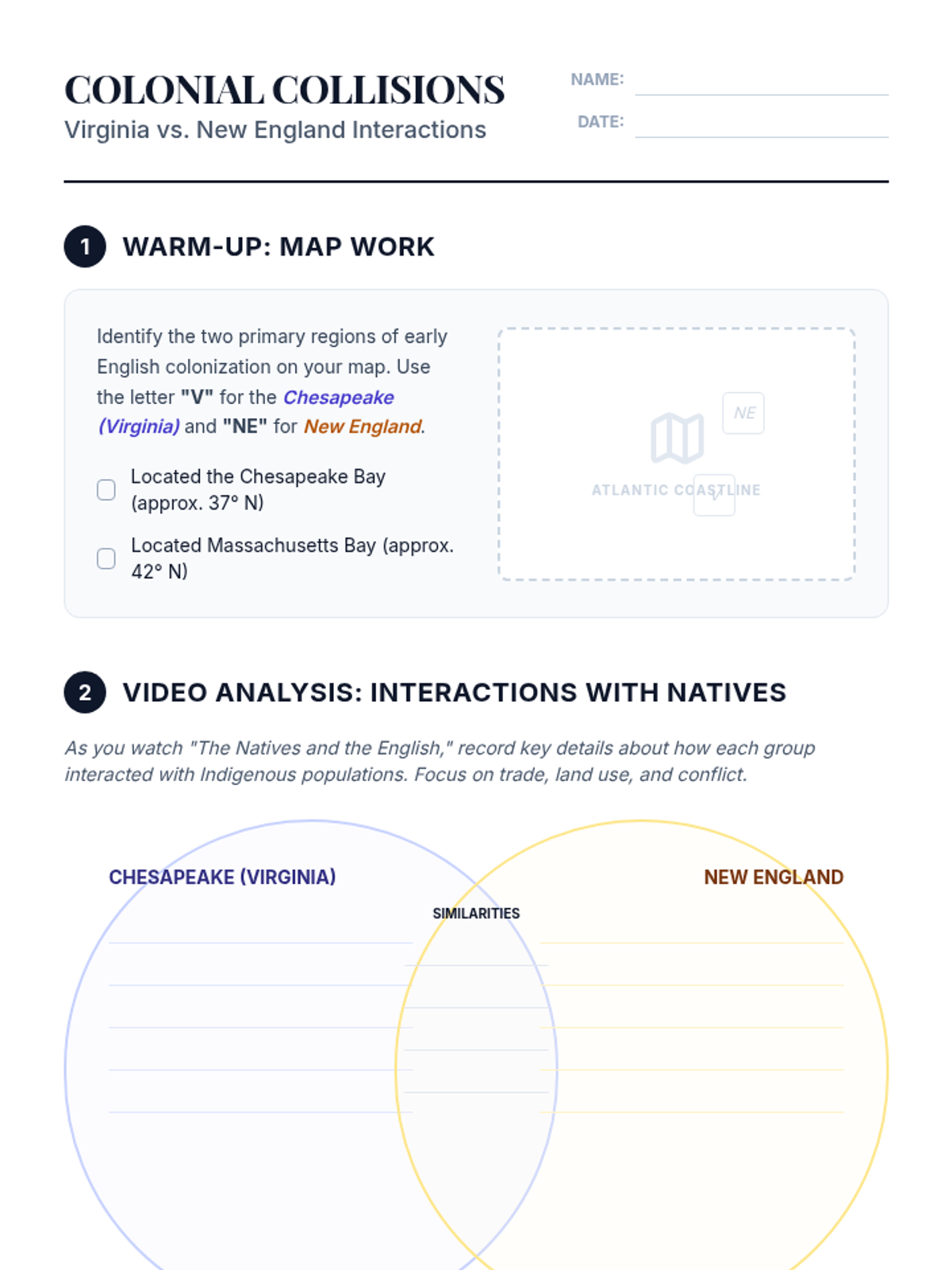 The Thirteen ColoniesRegional development of New England, Middle, and Southern settlements through economic, social, and political lenses. Examines colonial governance, trade patterns, and escalating tensions with the British Crown.